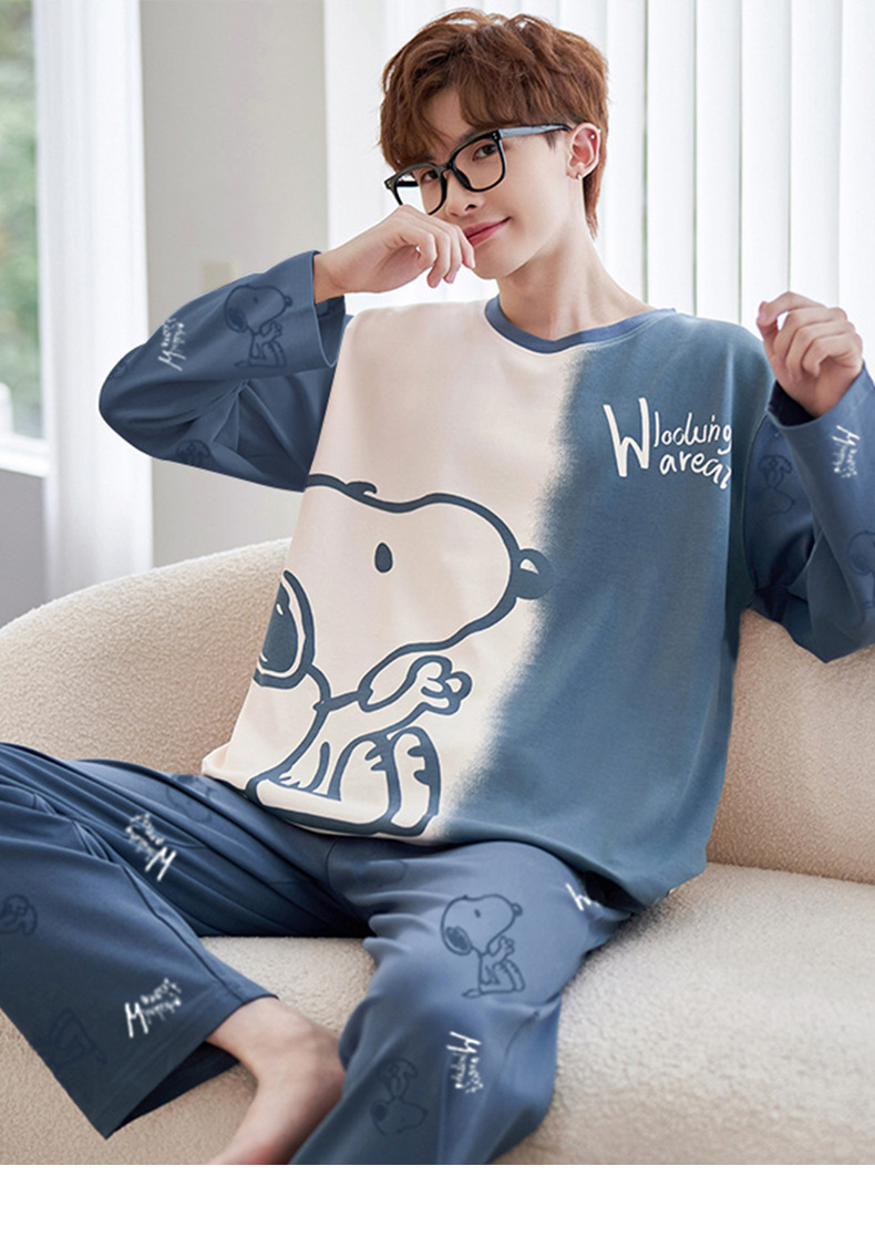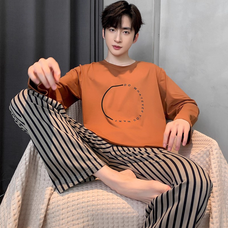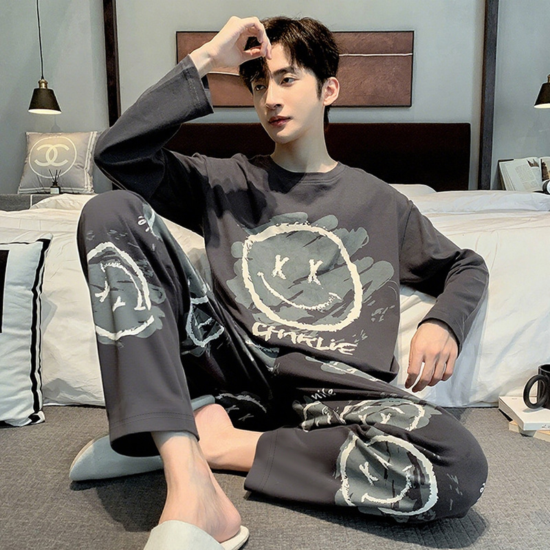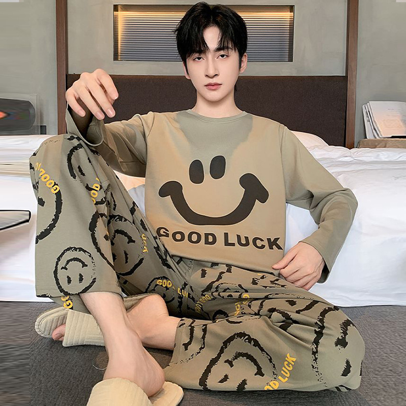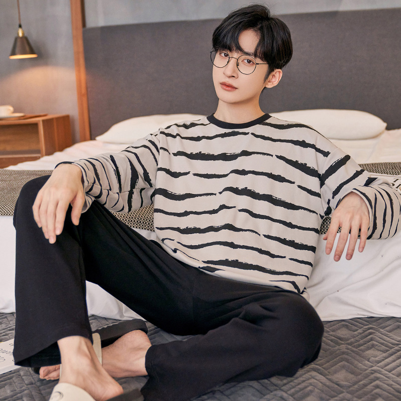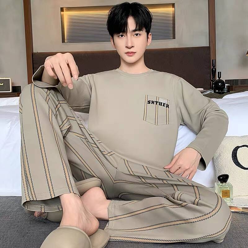 2025 봄 가을 남성용 잠옷 청소년 스포츠 긴팔 루즈핏 캐주얼 대형 사이즈 세트 남성용 외출복 가능