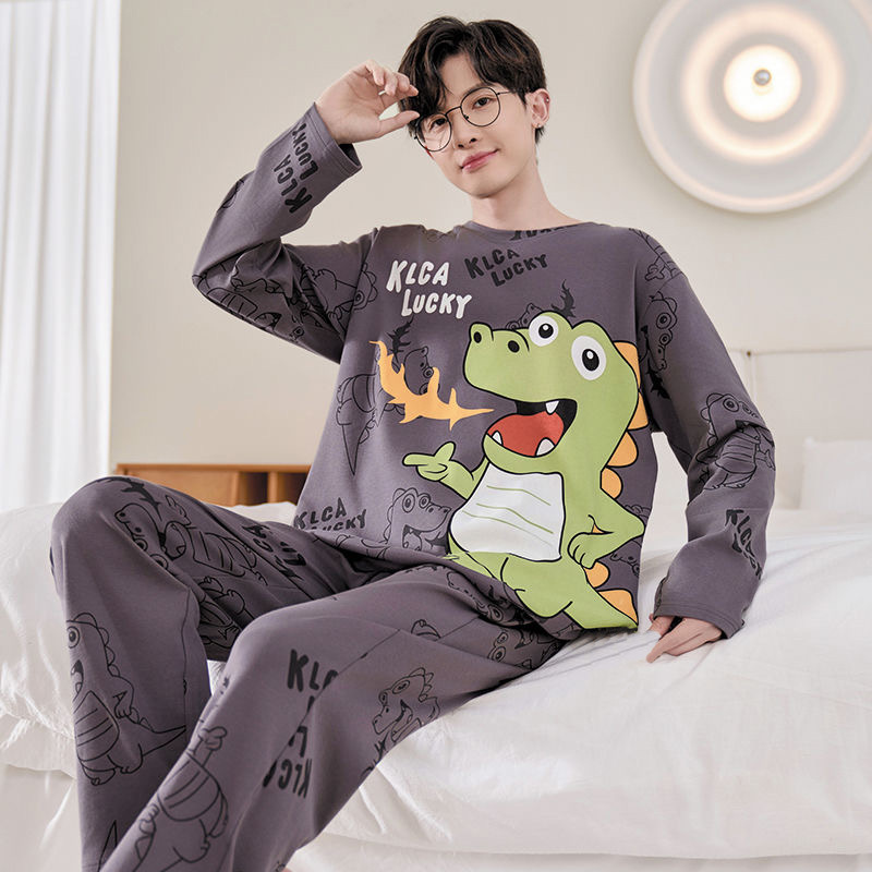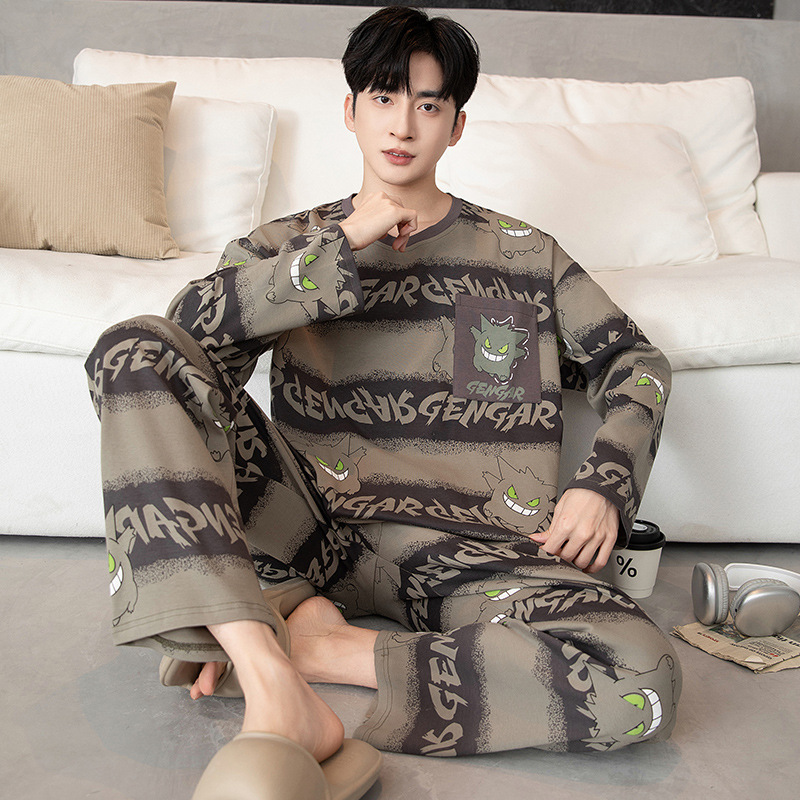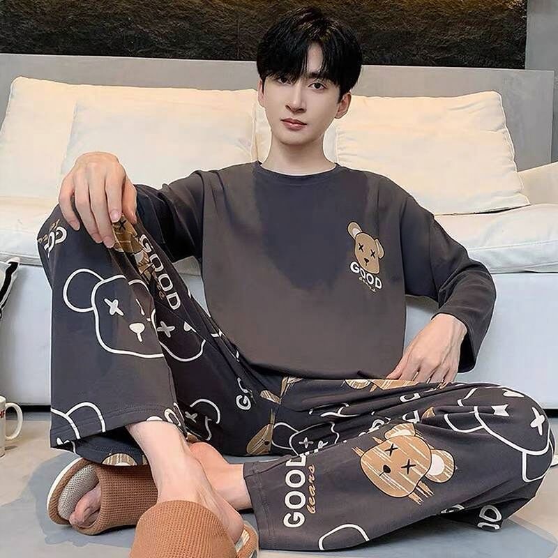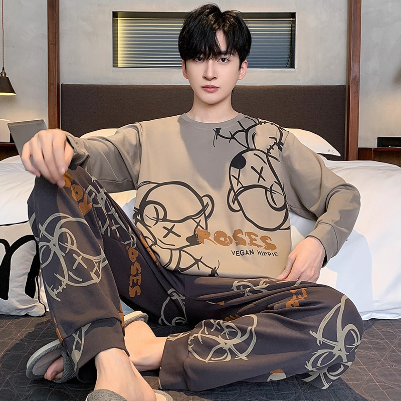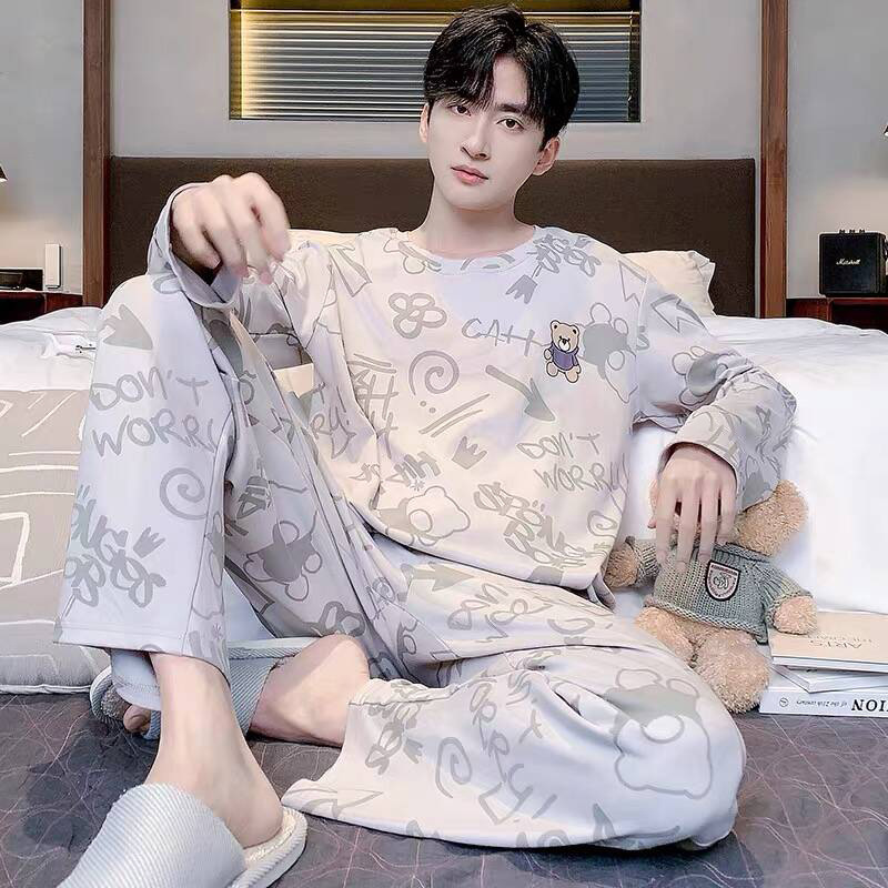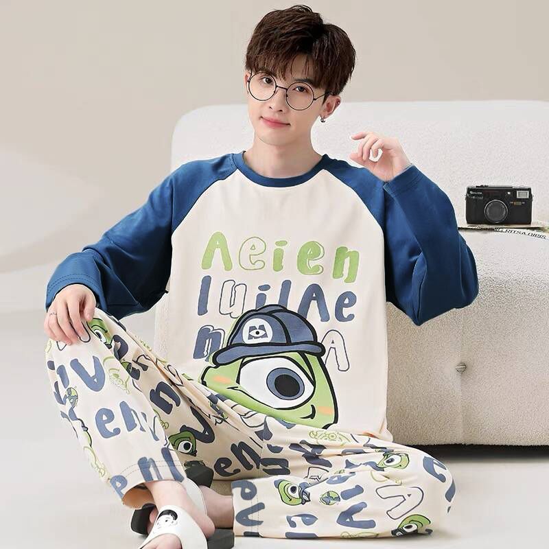 2025 봄 가을 남성용 잠옷 청소년 스포츠 긴팔 루즈핏 캐주얼 대형 사이즈 세트 남성용 외출복 가능스토어 가기