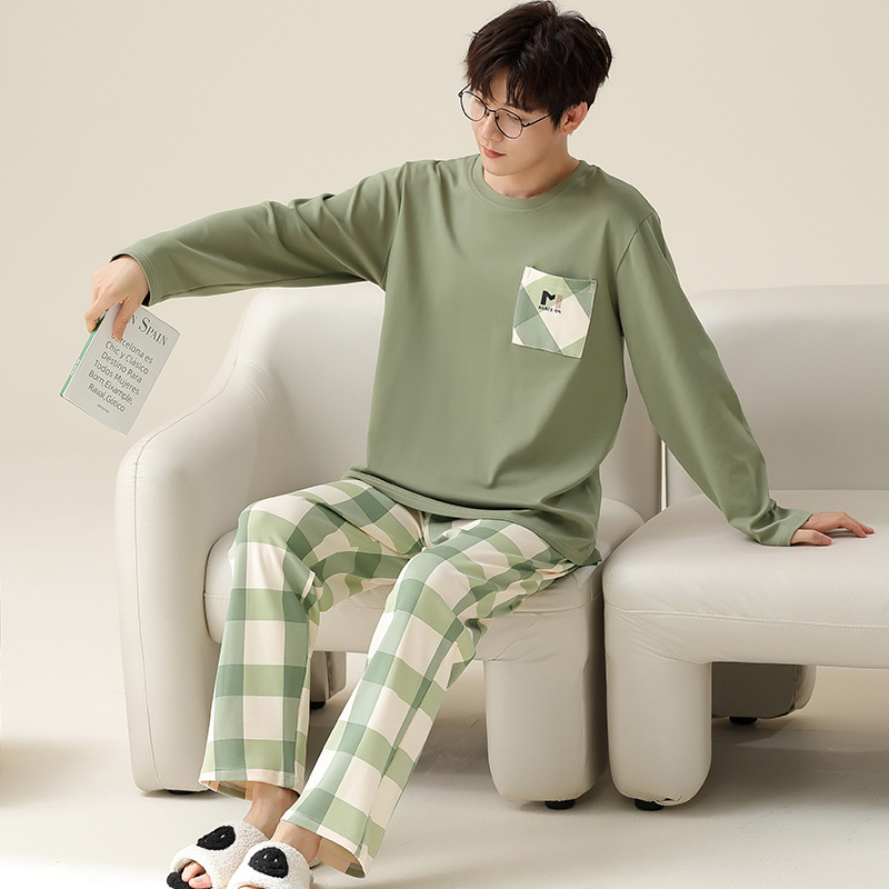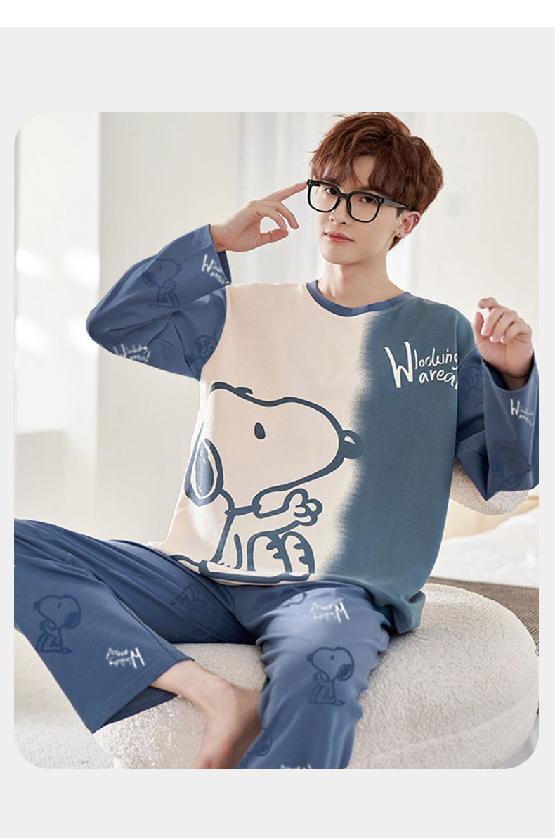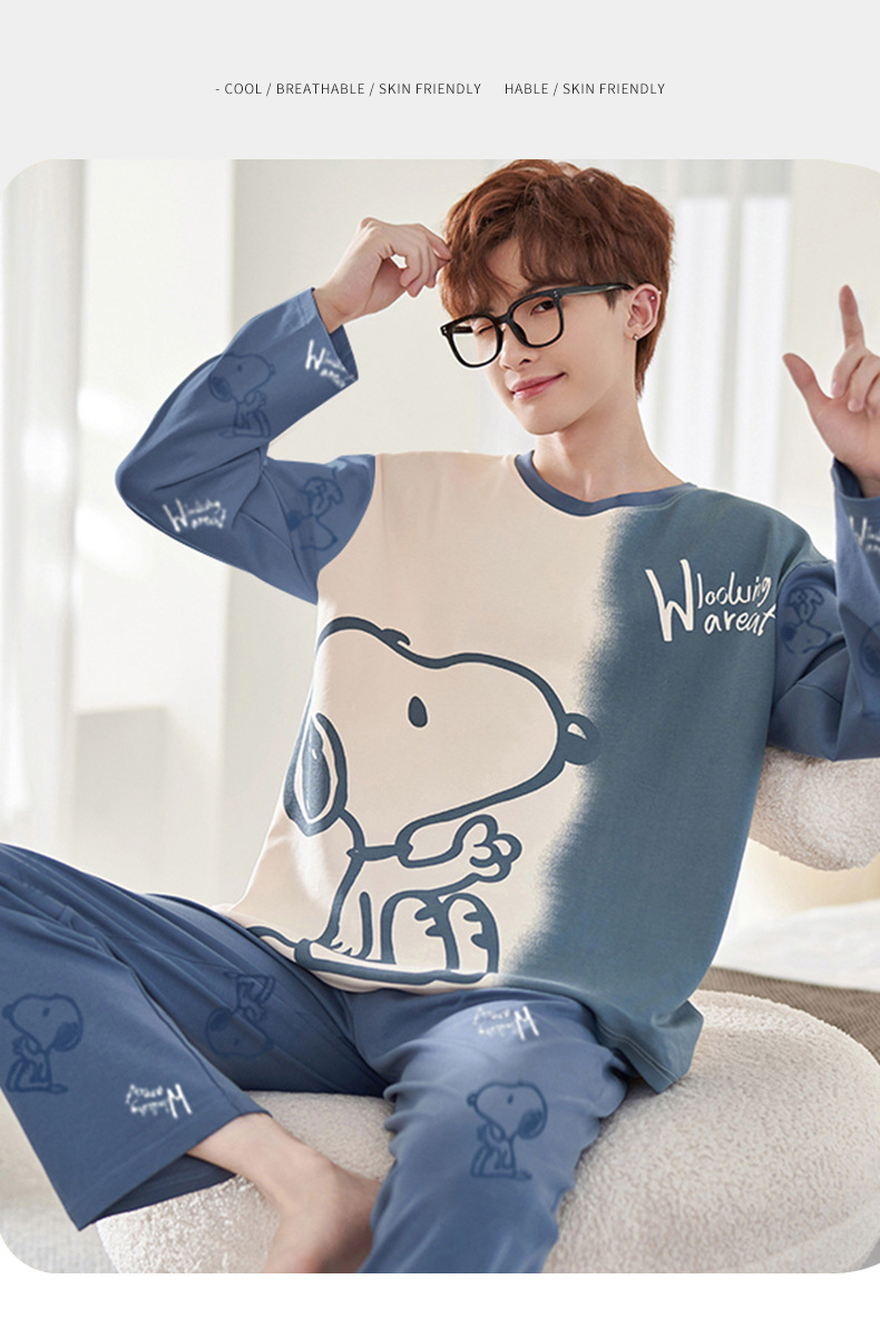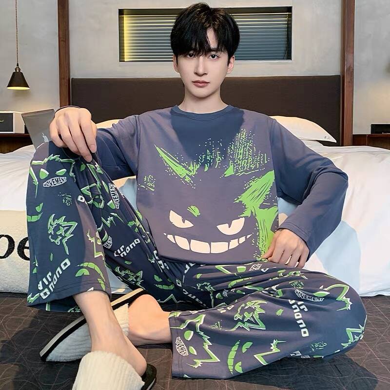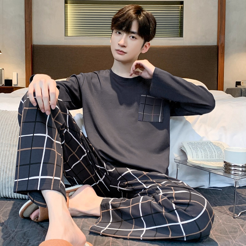2025 봄 가을 남성용 잠옷 청소년 스포츠 긴팔 루즈핏 캐주얼 대형 사이즈 세트 남성용 외출복 가능스토어 가기