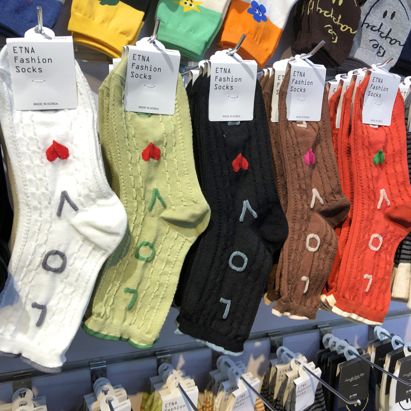 [재고] 한국 ETNA 새로운 양말 나무 귀 트위스트 실 소녀 양말 편지 LOVE 면 양말스토어 가기