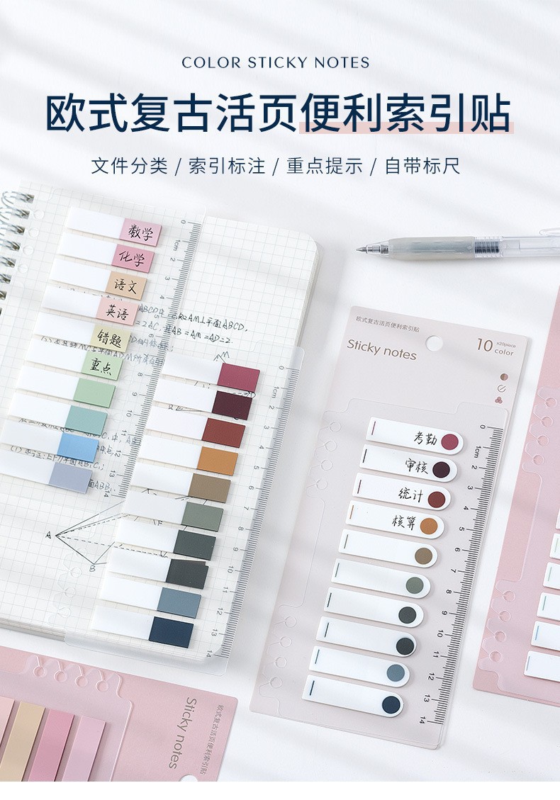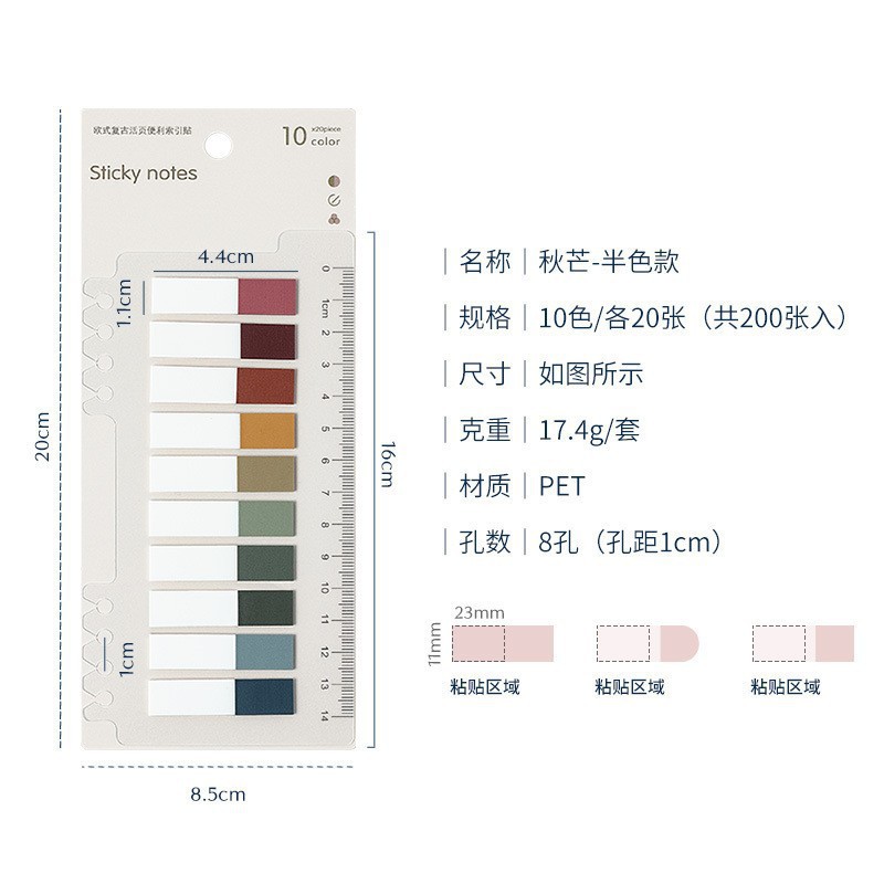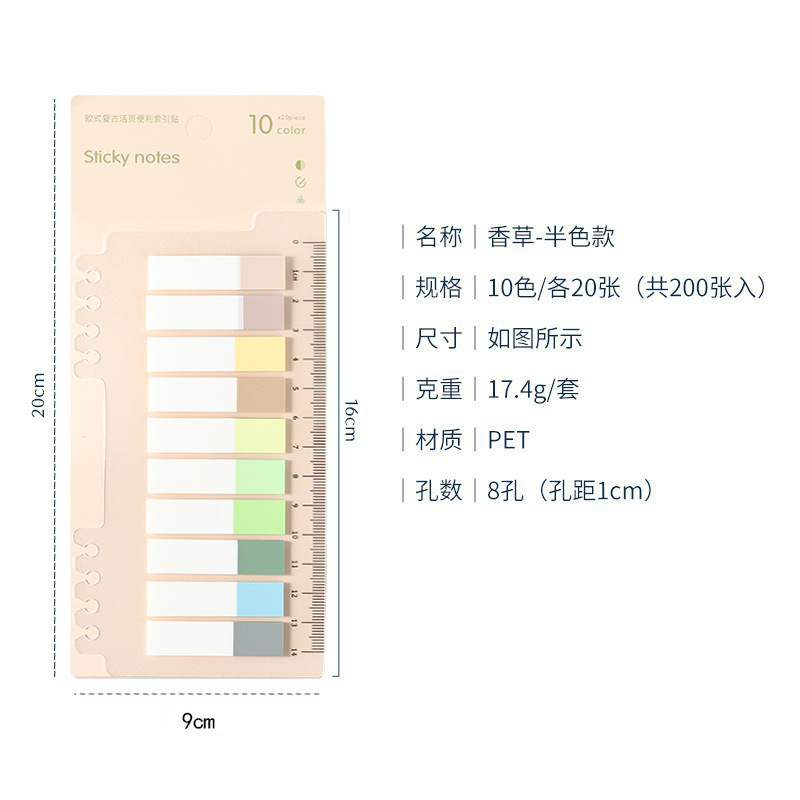 눈금자 색인 스티커가있는 Morandi는 분류 라벨 스티커를 쓸 수 있습니다 컬러 투명 테이프 끈적 끈적한 메모 도매스토어 가기