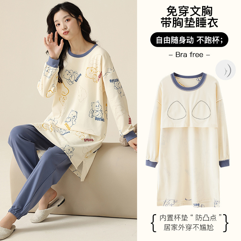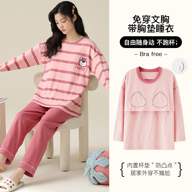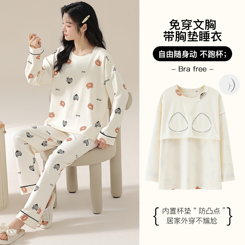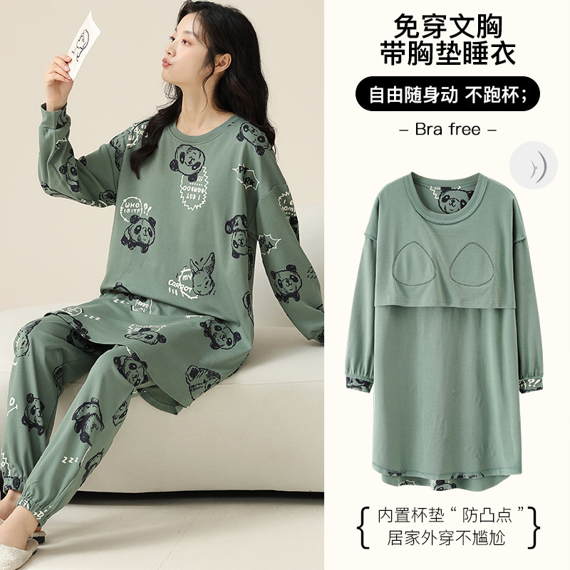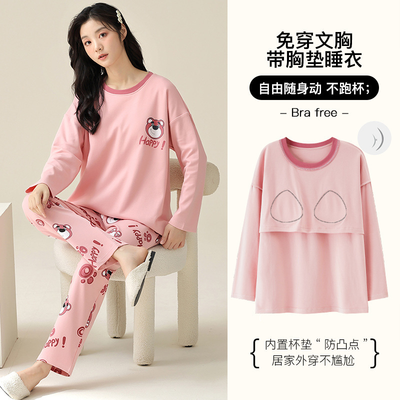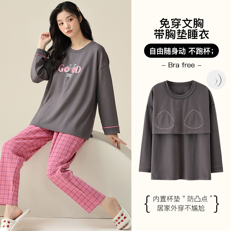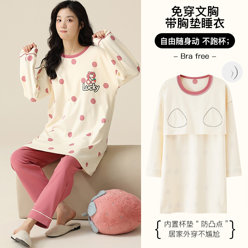 새로운 잠옷 여자의 5XL 봄과 가을 가슴 패드 긴 소매 세트 느슨한 달콤한 귀여운 가정 옷 Tiktok 라이브스토어 가기