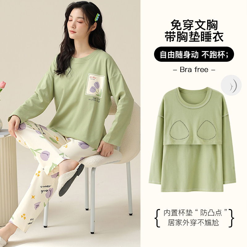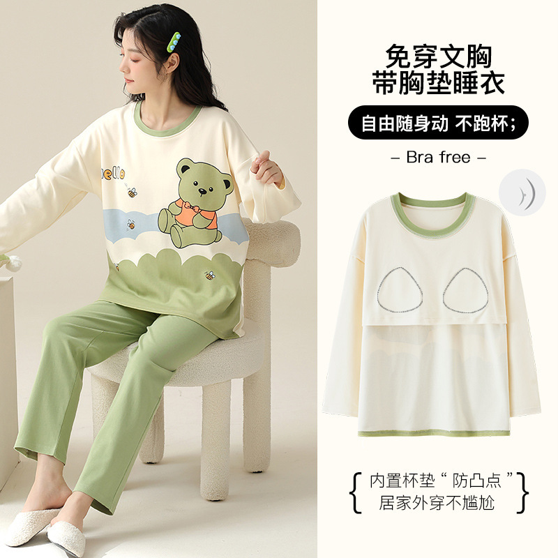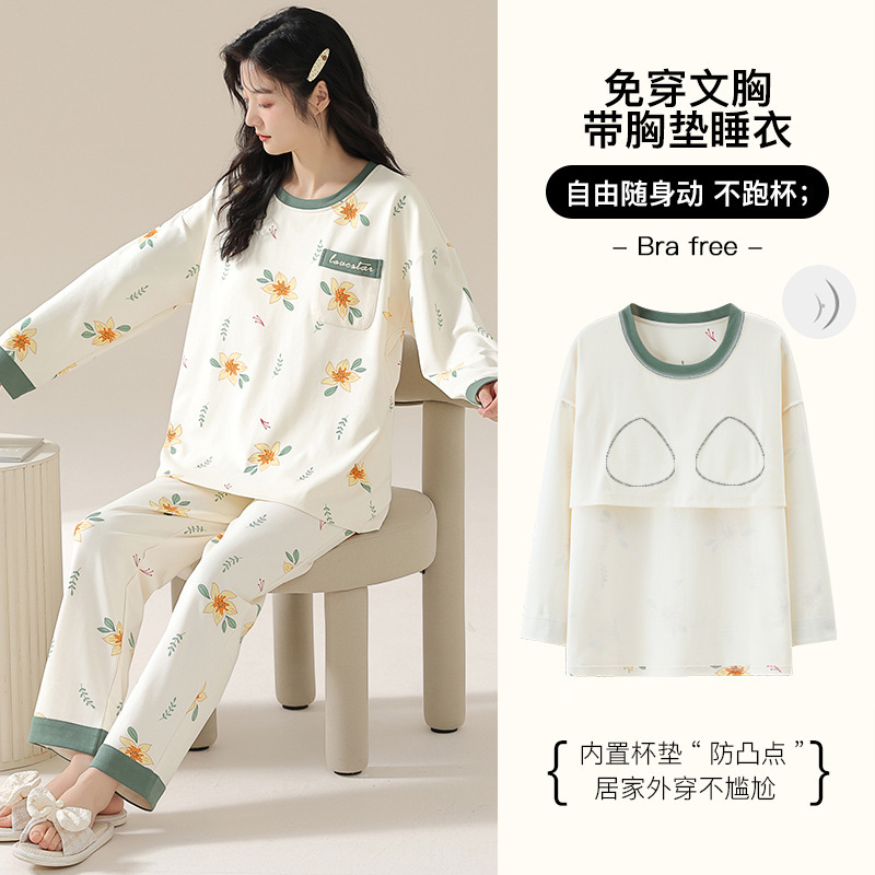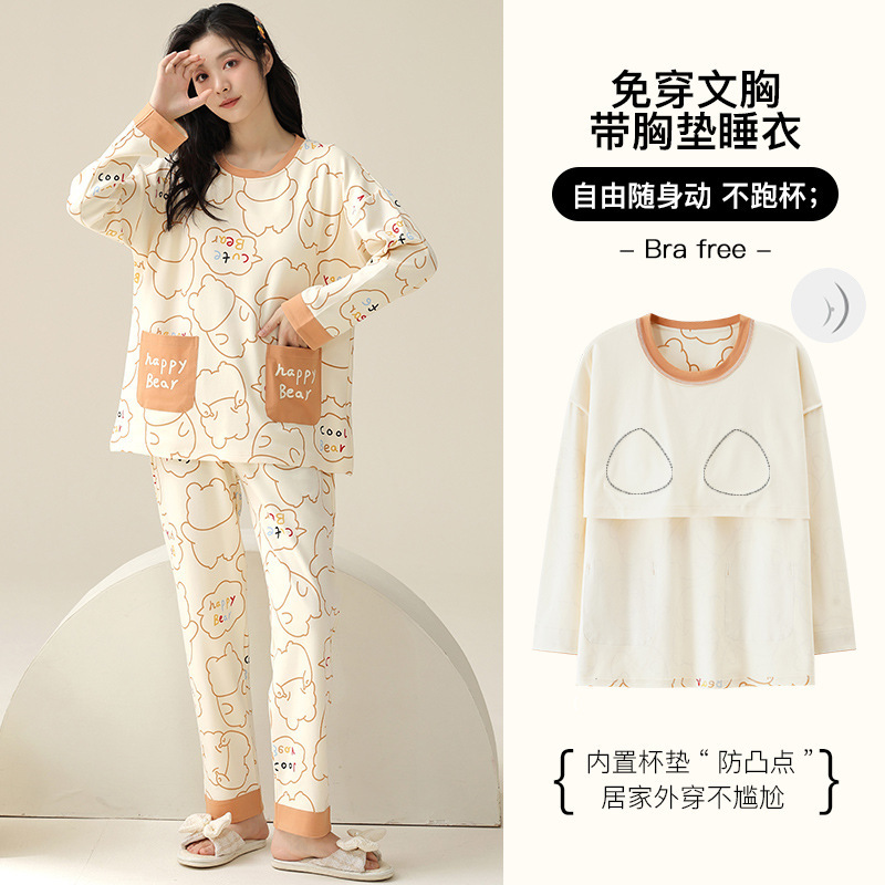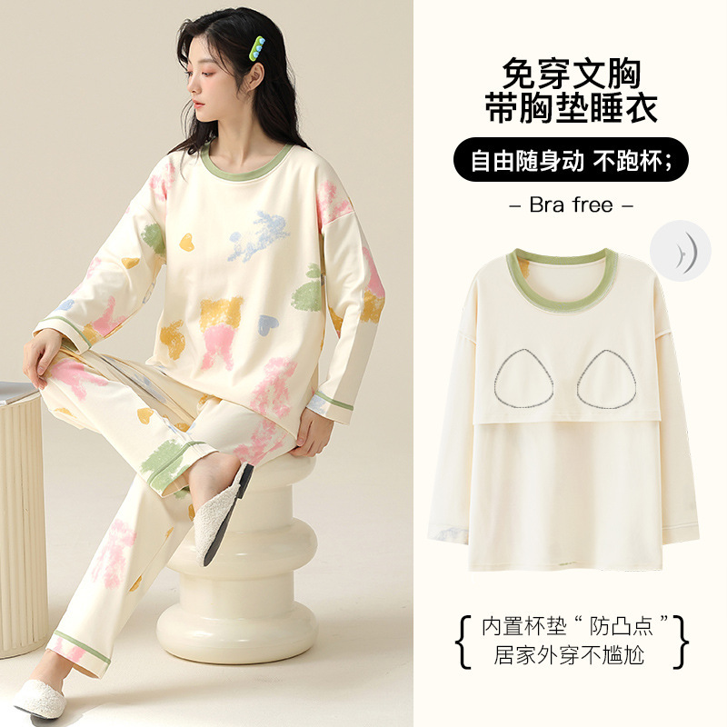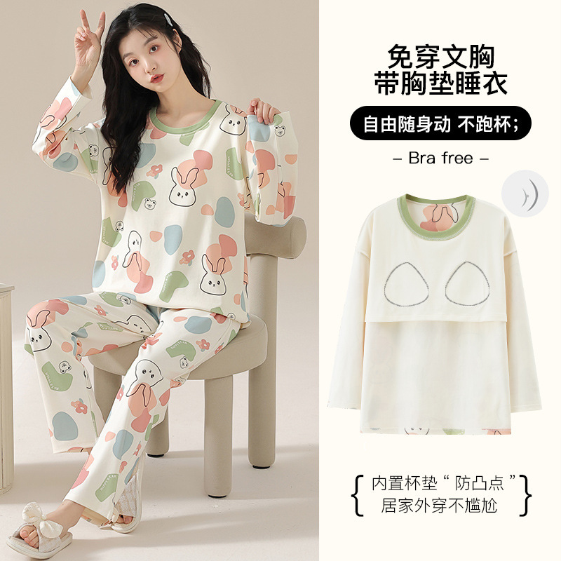 새로운 잠옷 여자의 5XL 봄과 가을 가슴 패드 긴 소매 세트 느슨한 달콤한 귀여운 가정 옷 Tiktok 라이브스토어 가기