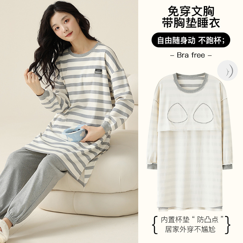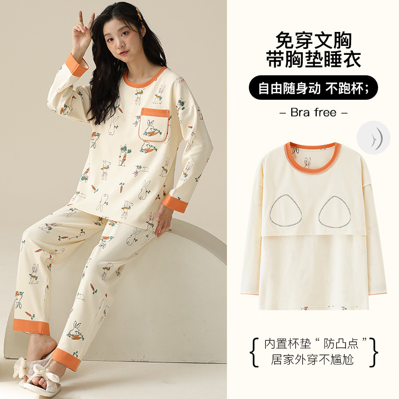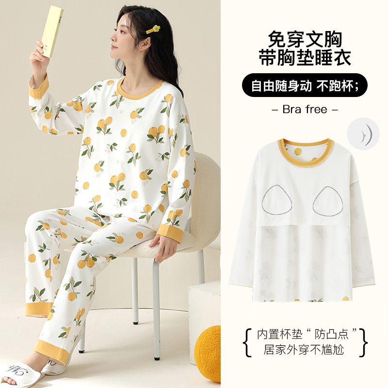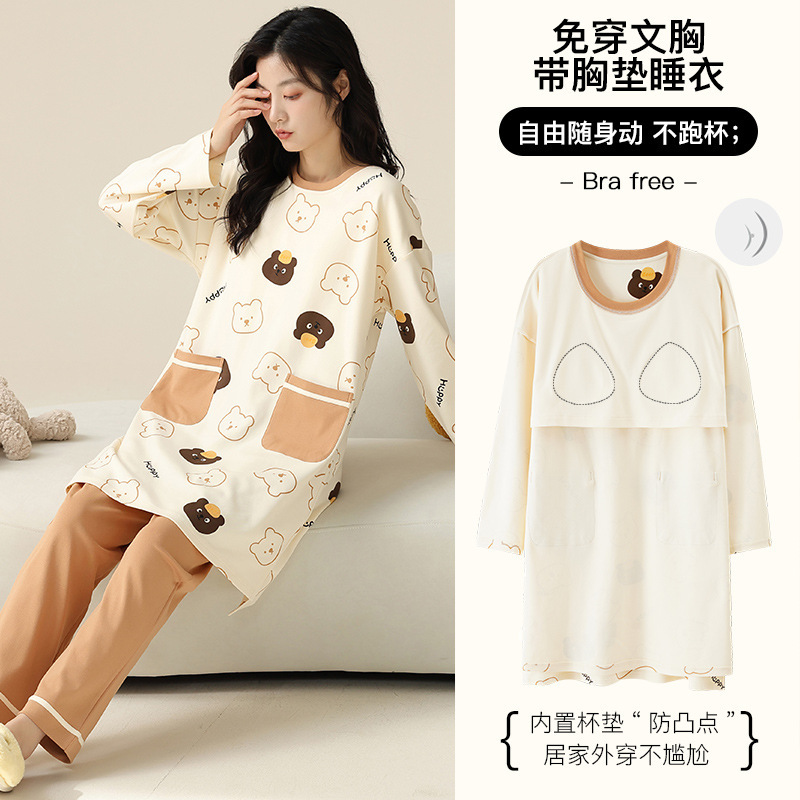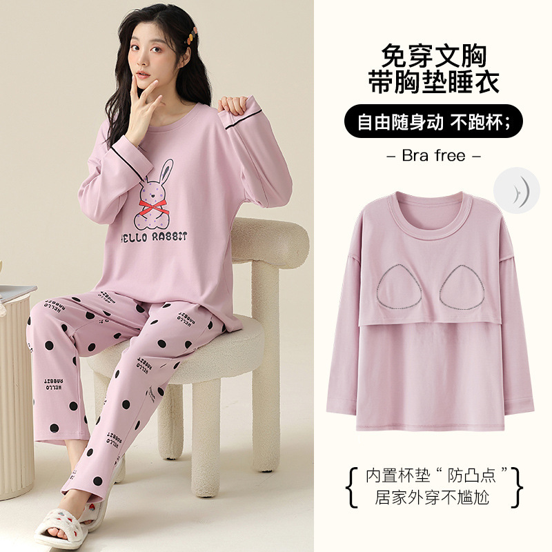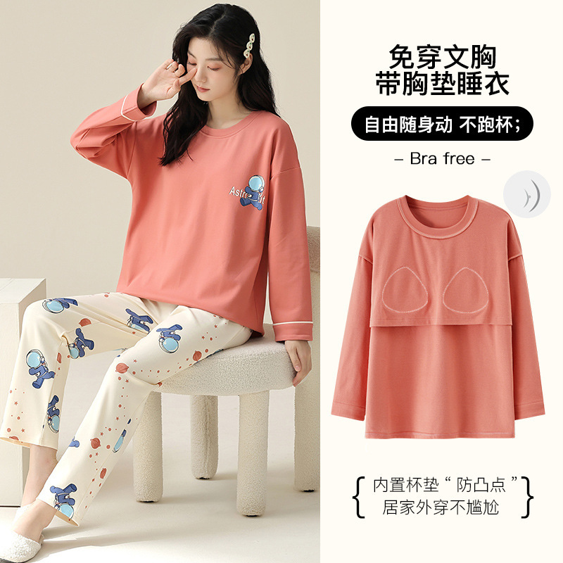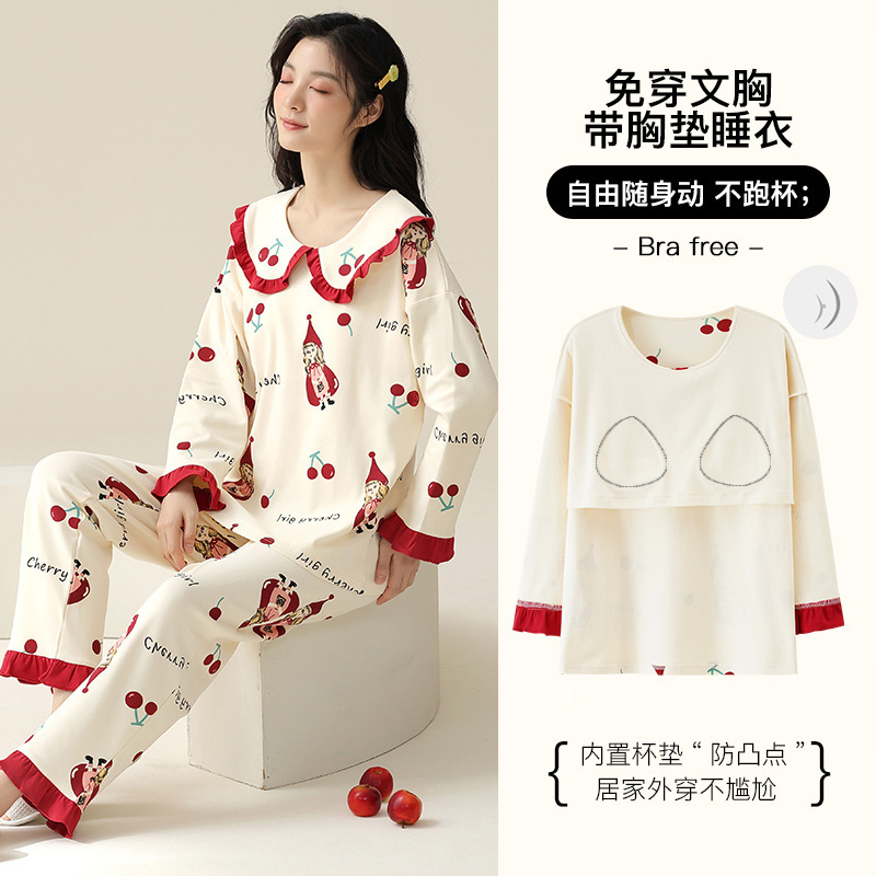 새로운 잠옷 여자의 5XL 봄과 가을 가슴 패드 긴 소매 세트 느슨한 달콤한 귀여운 가정 옷 Tiktok 라이브스토어 가기