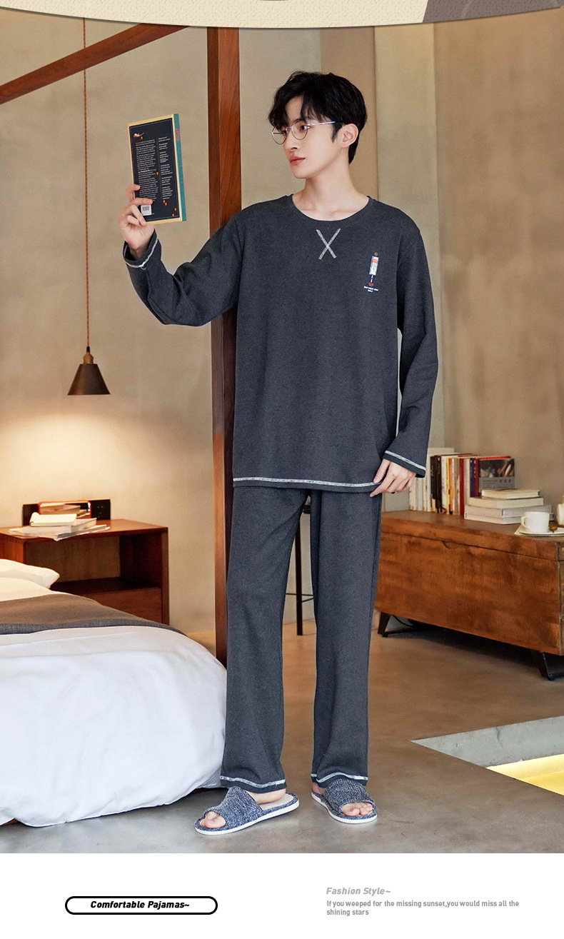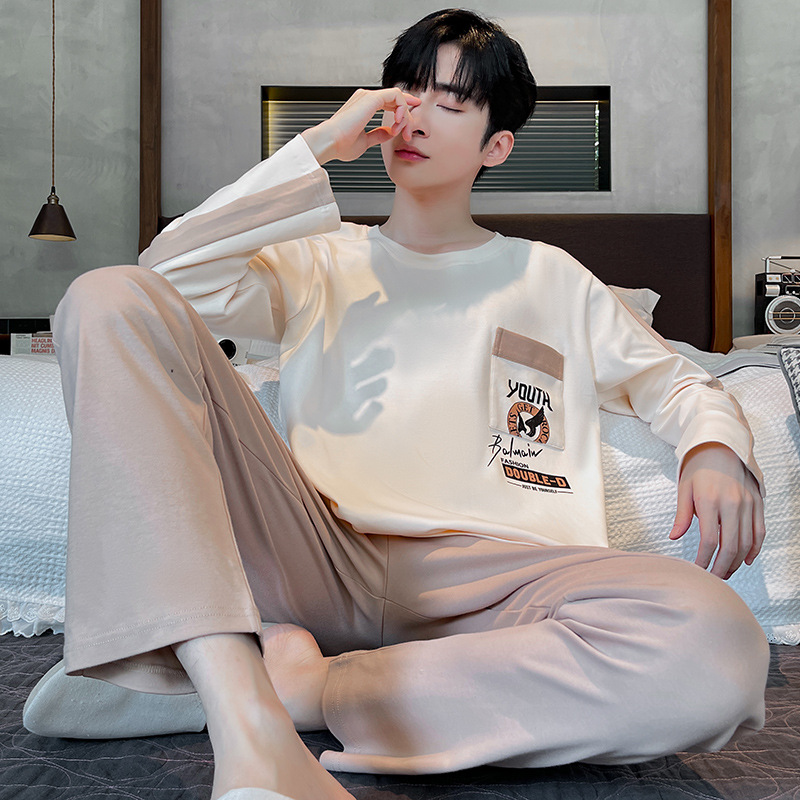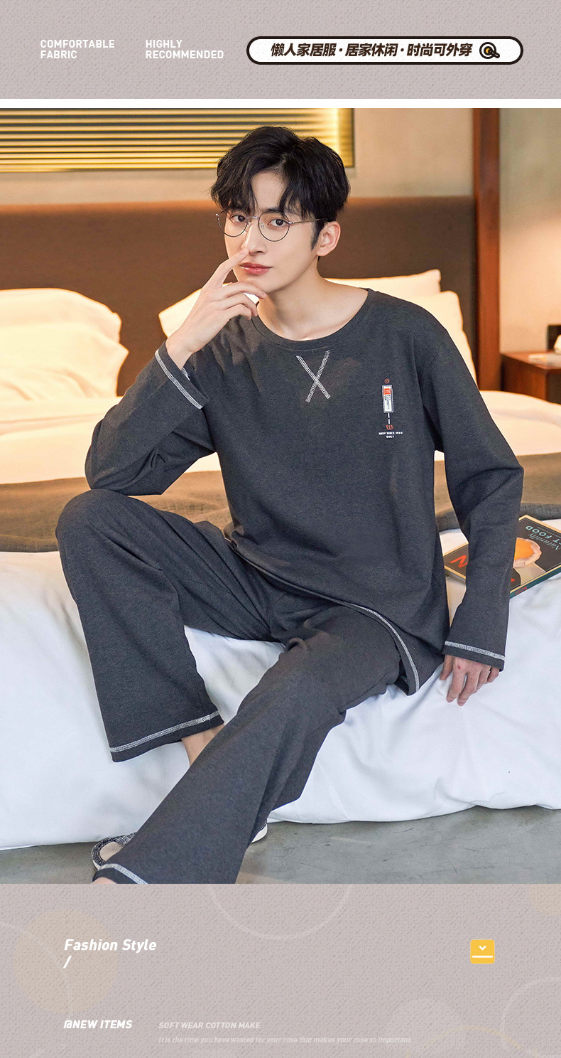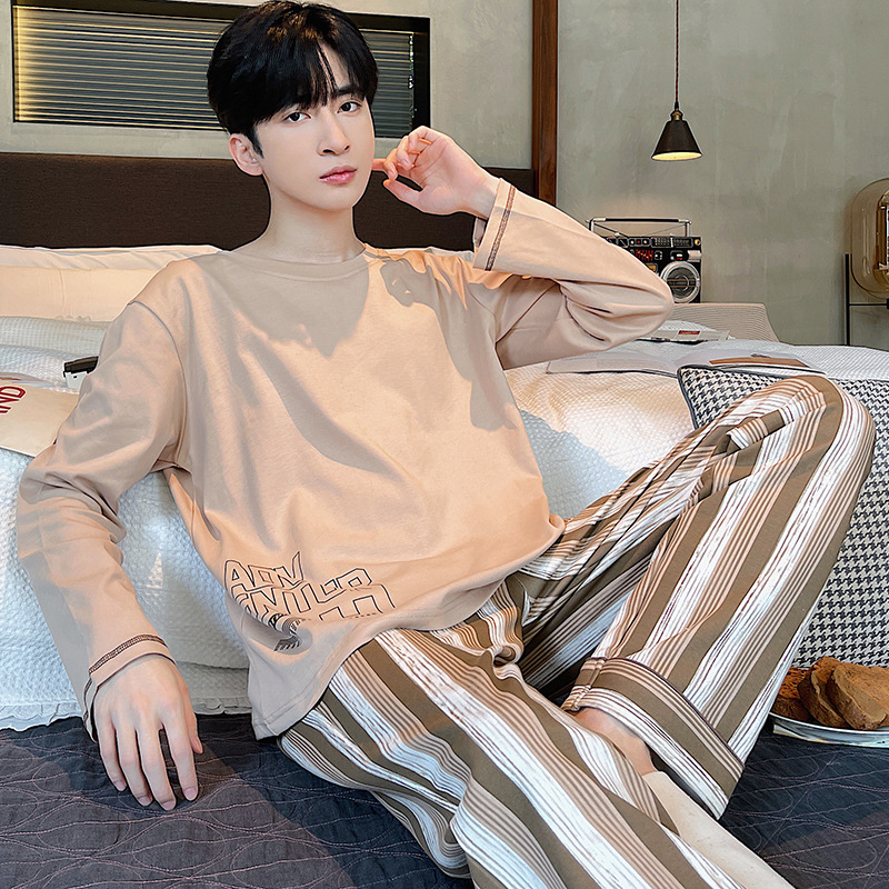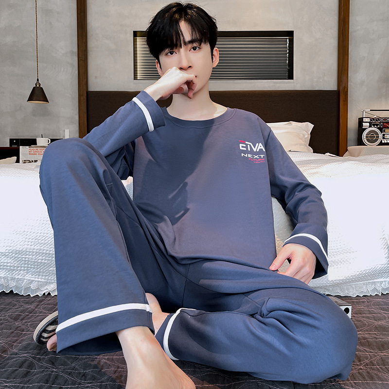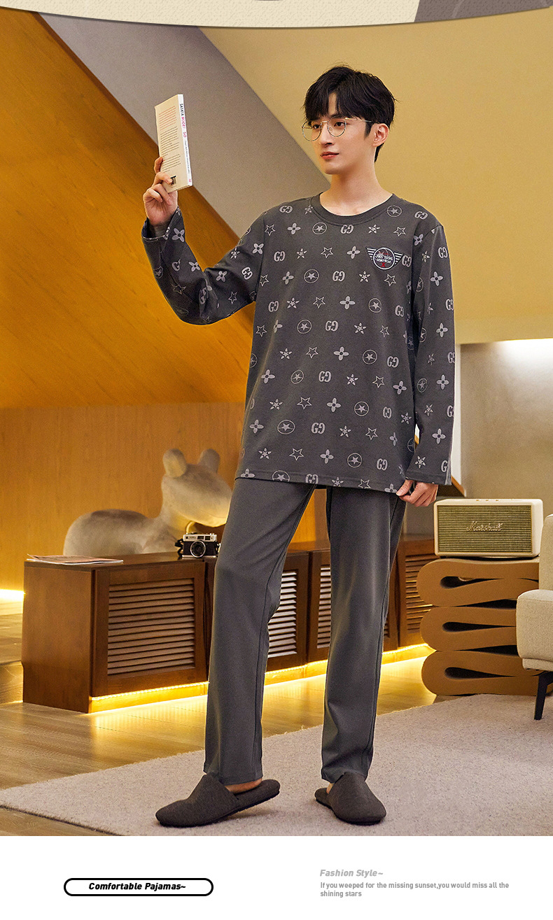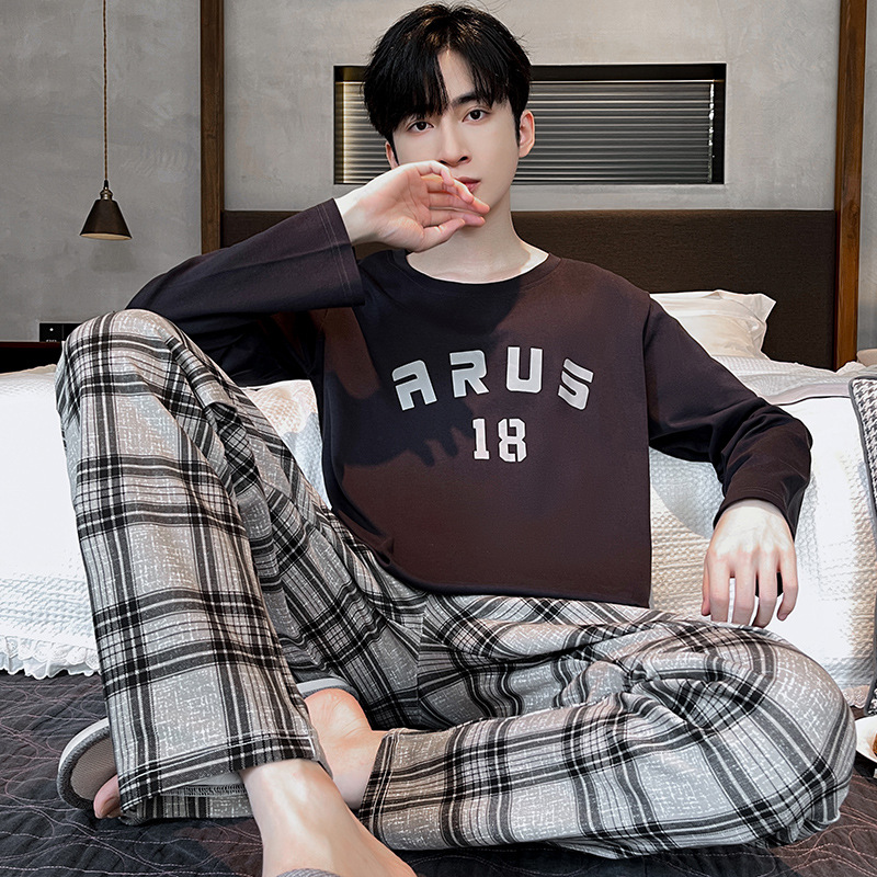 Lu Shi 2024 새로운 남성 잠옷 봄, 가을 남성 긴팔 소년 청소년 여름 가정 의류 정장스토어 가기