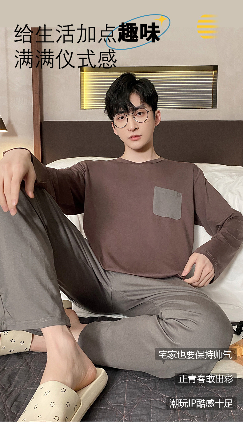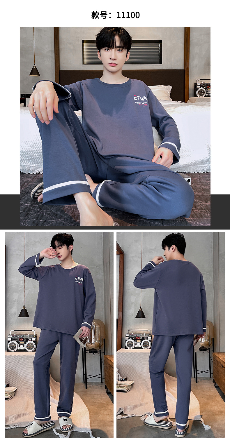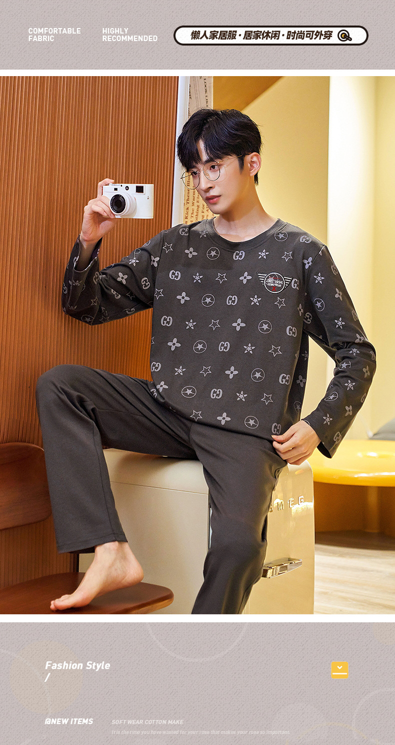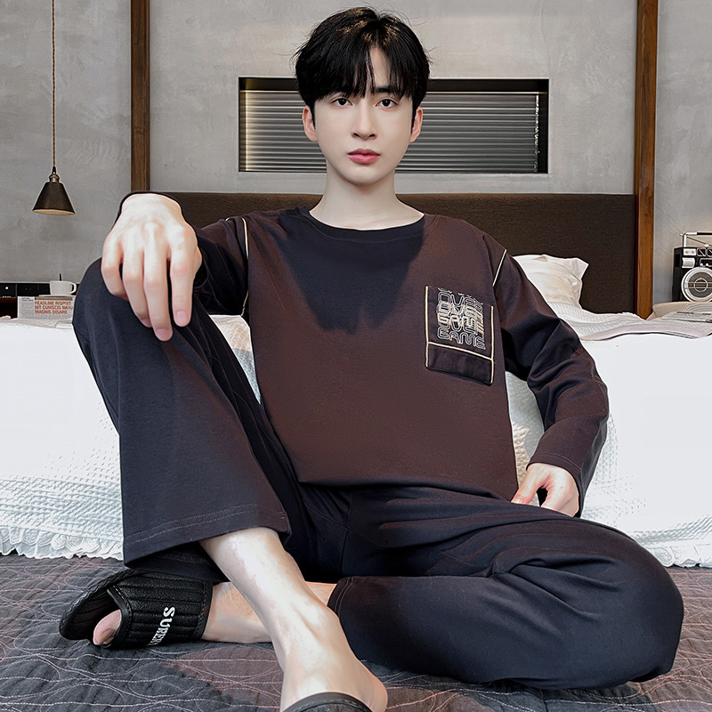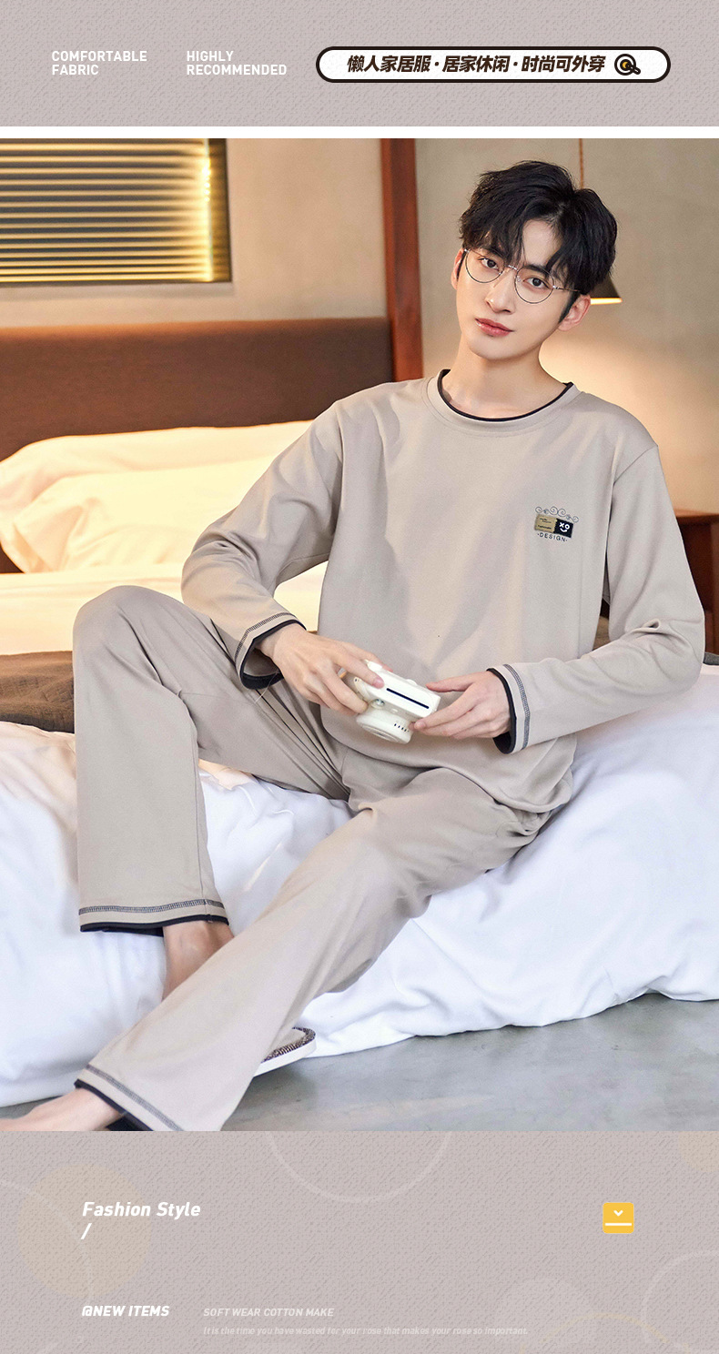Lu Shi 2024 새로운 남성 잠옷 봄, 가을 남성 긴팔 소년 청소년 여름 가정 의류 정장스토어 가기