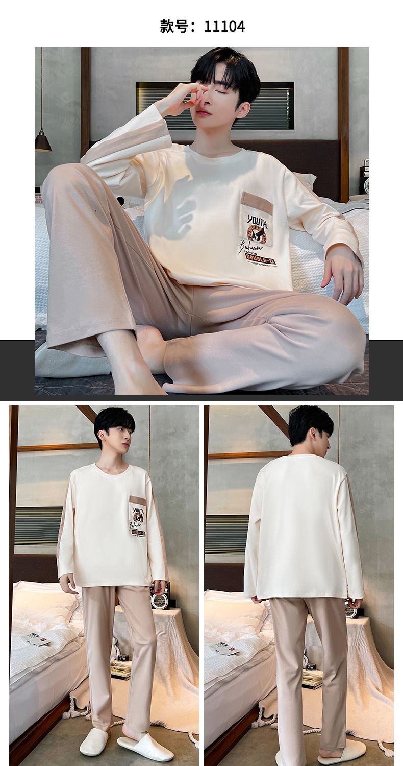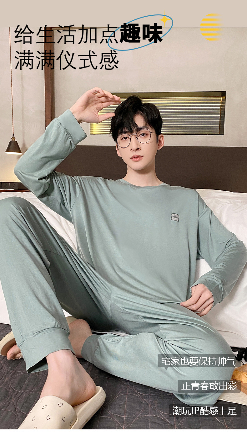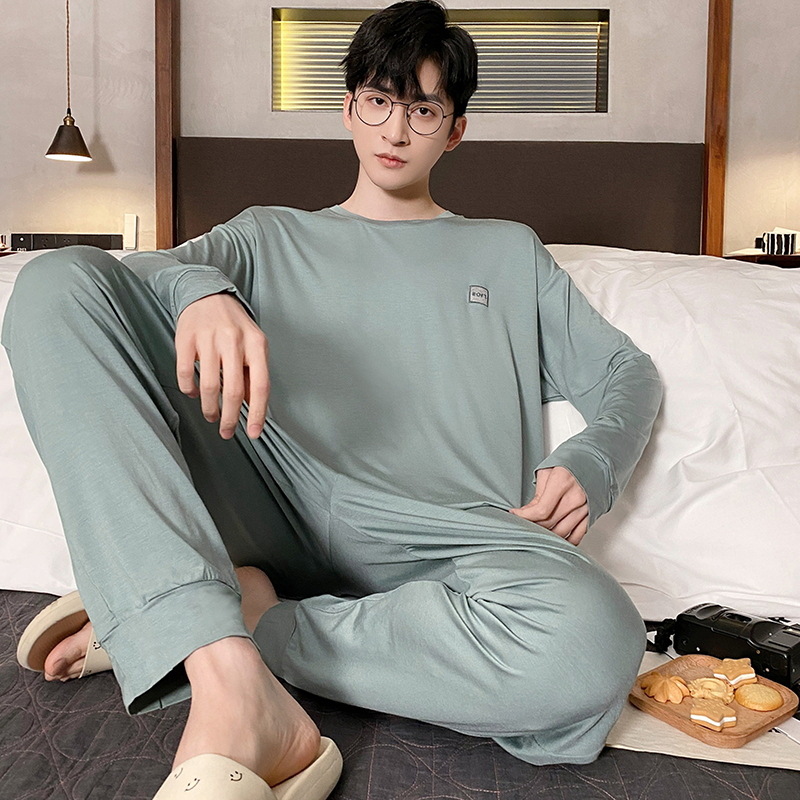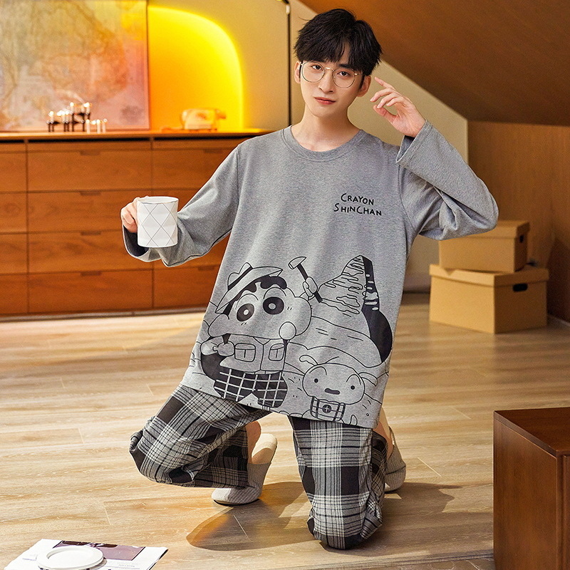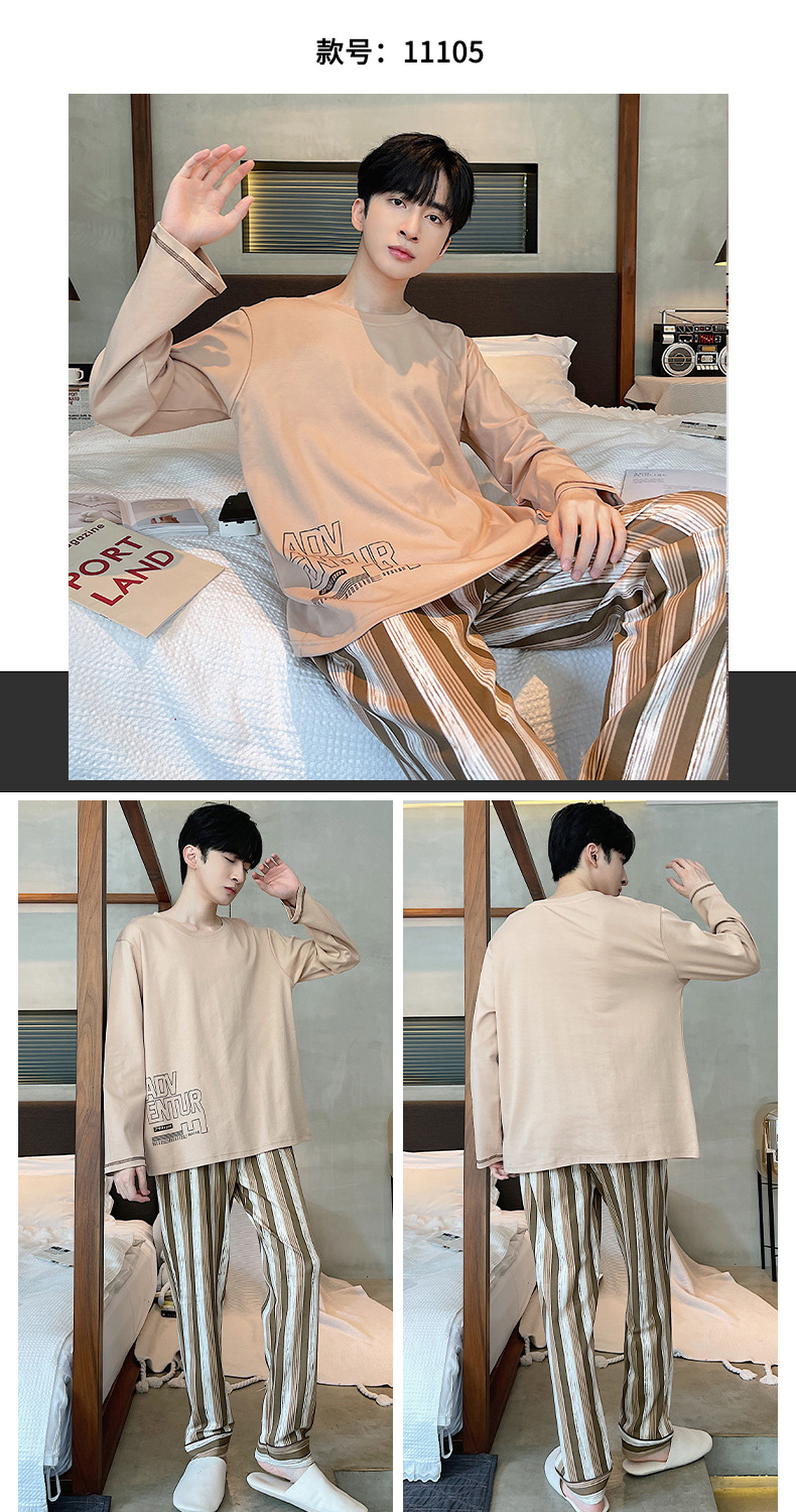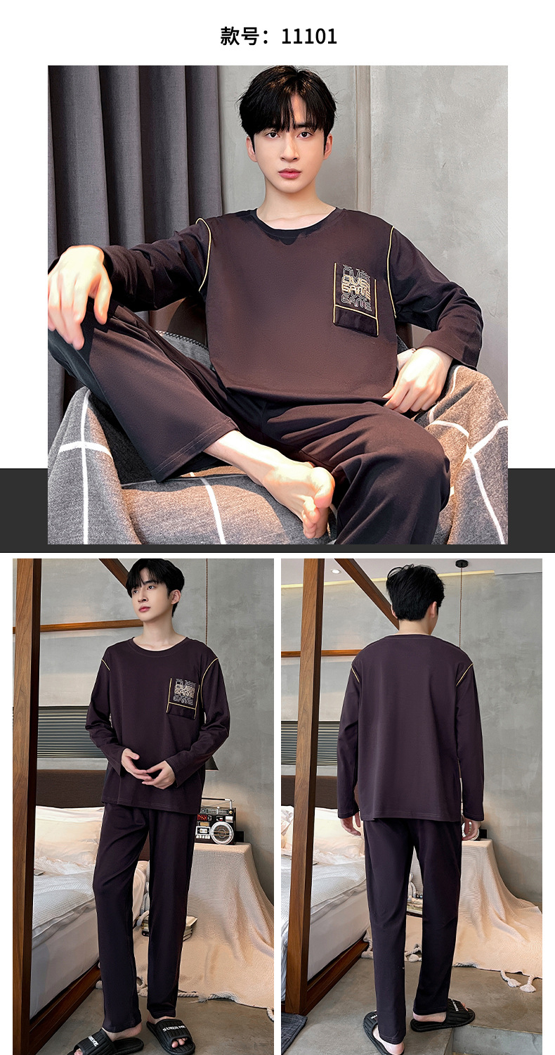 Lu Shi 2024 새로운 남성 잠옷 봄, 가을 남성 긴팔 소년 청소년 여름 가정 의류 정장스토어 가기
