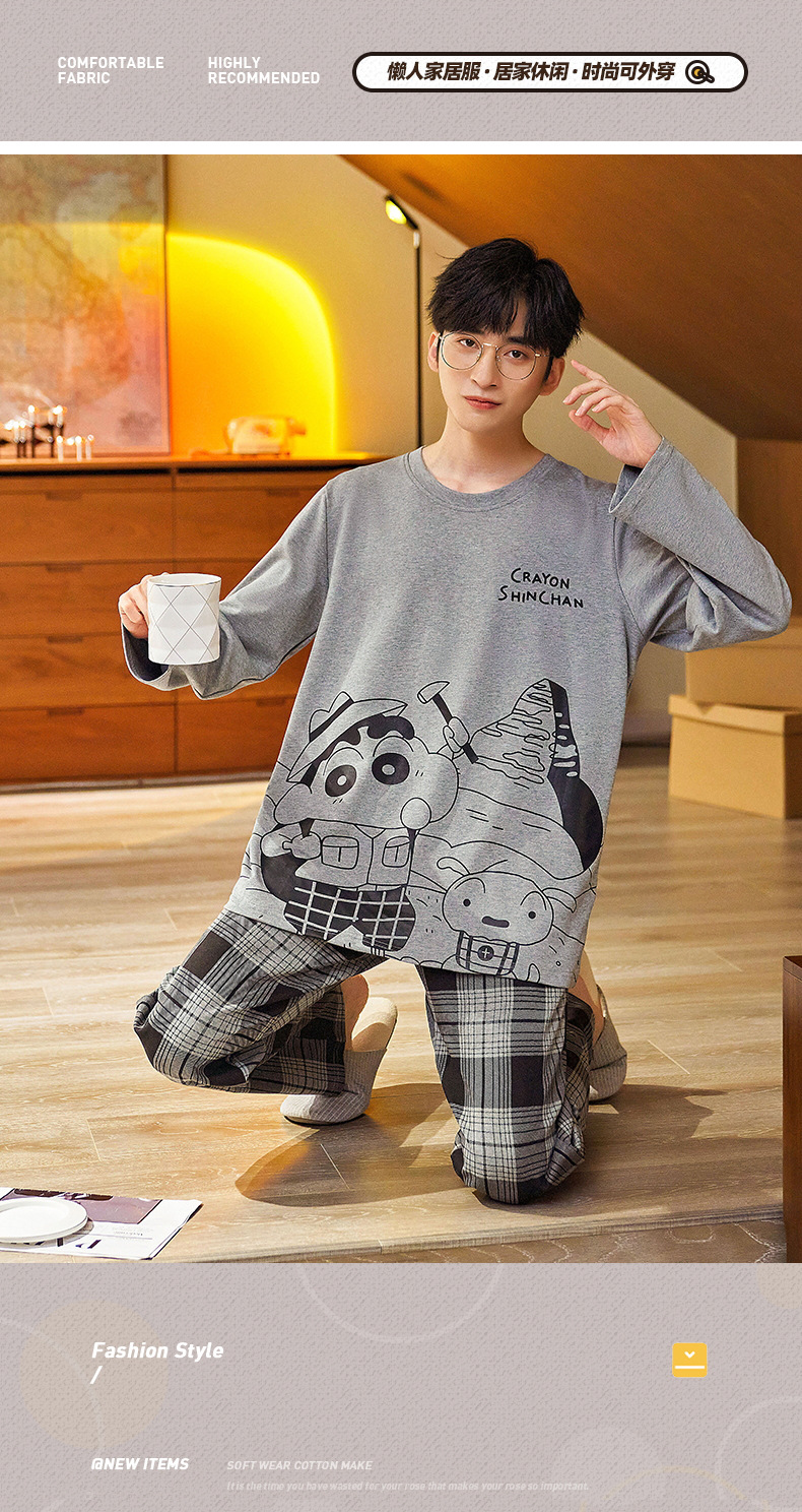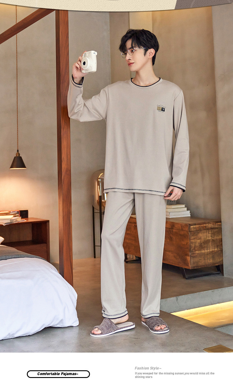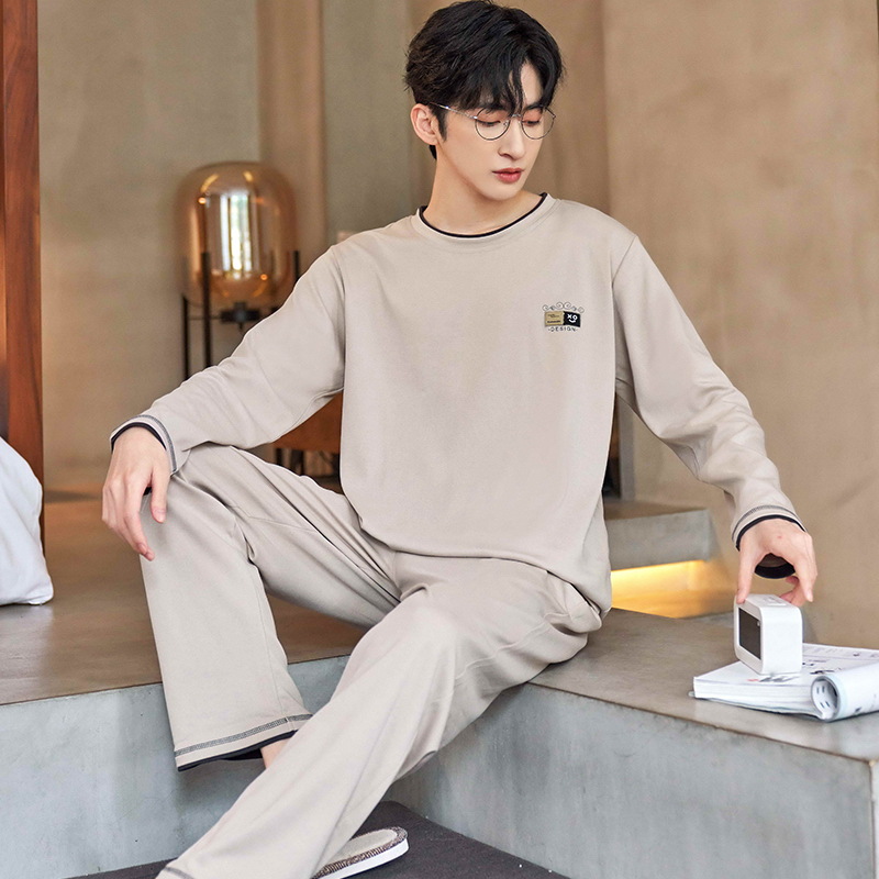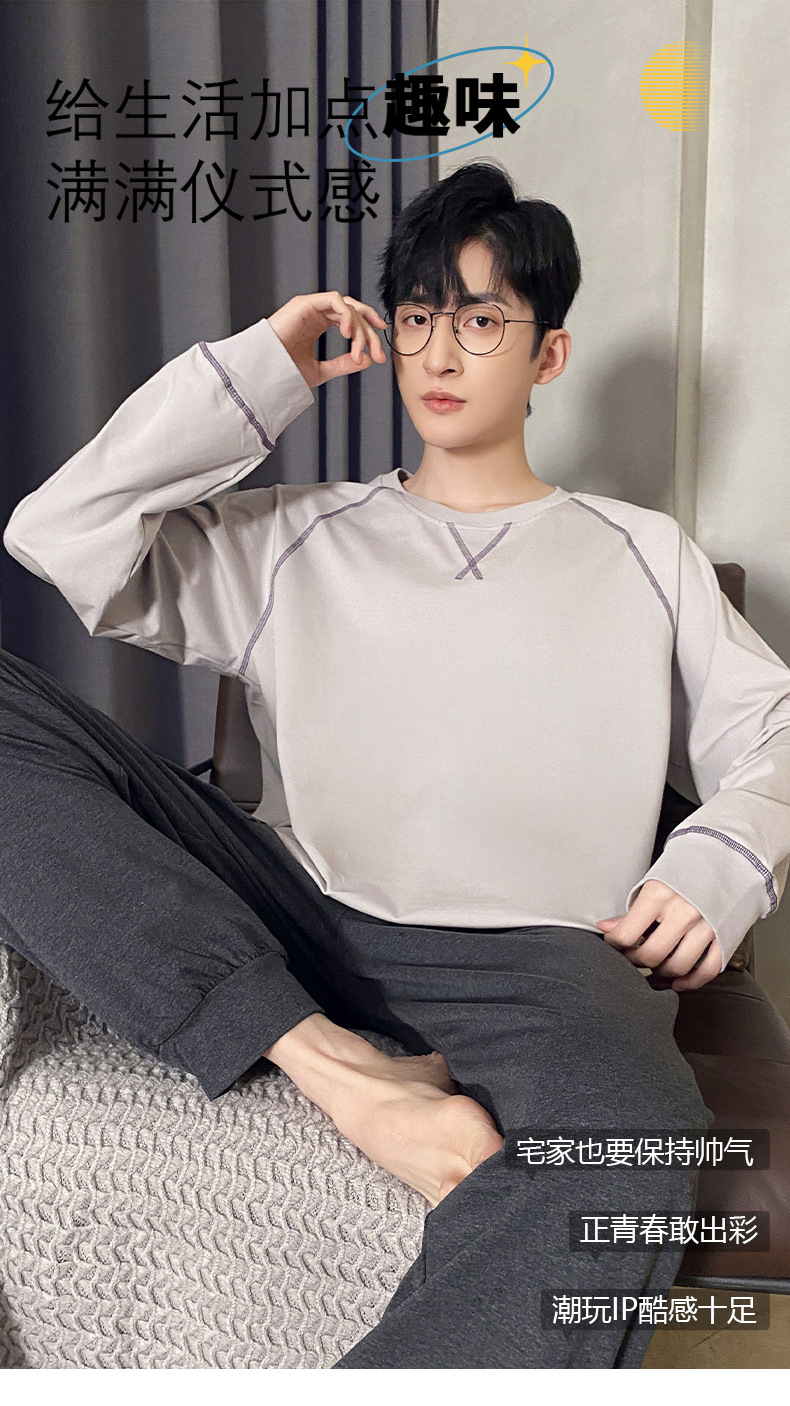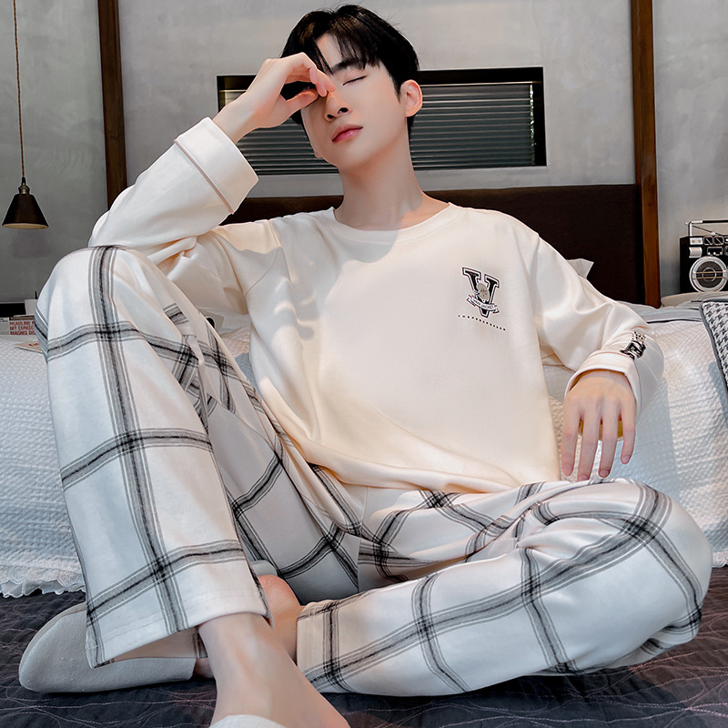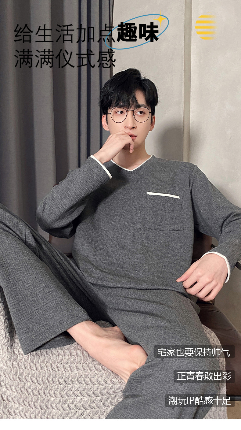 Lu Shi 2024 새로운 남성 잠옷 봄, 가을 남성 긴팔 소년 청소년 여름 가정 의류 정장스토어 가기