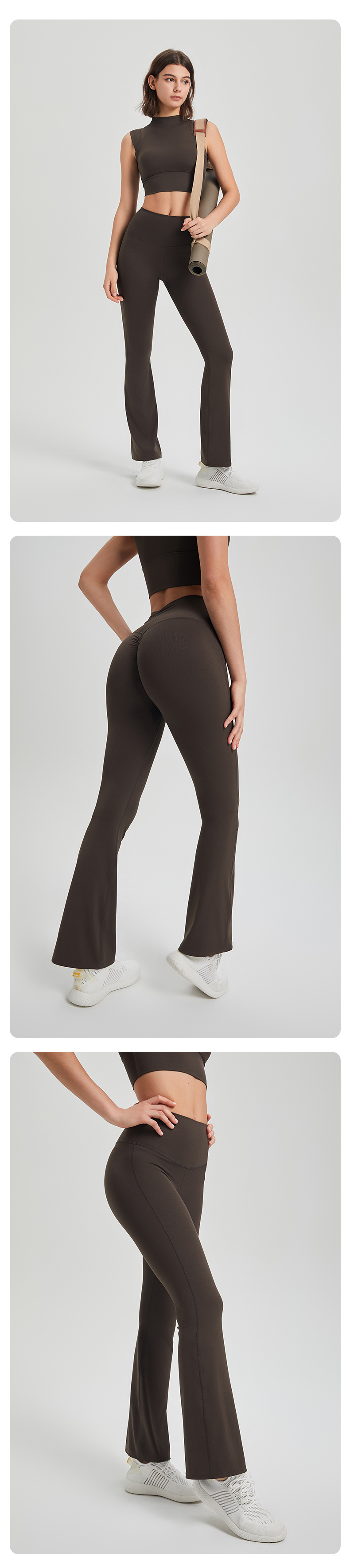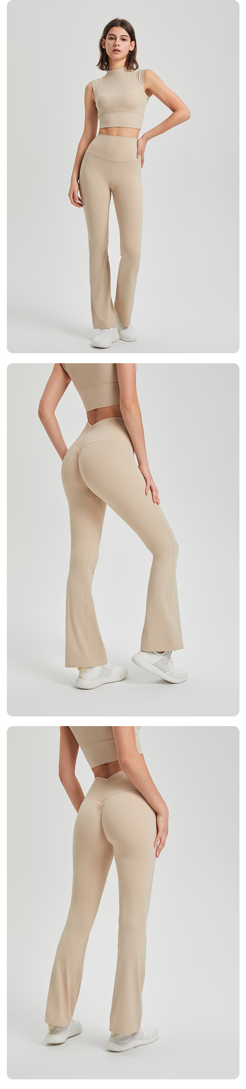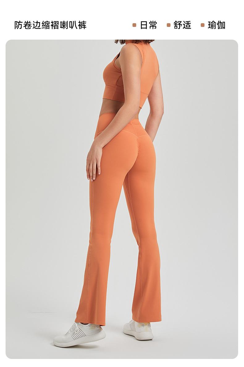 라이크라 하이 웨이스트 주름 엉덩이 안티 컬링 알몸 요가 바지 겉옷 러닝 팬츠 통기성 피트니스 플레어 팬츠