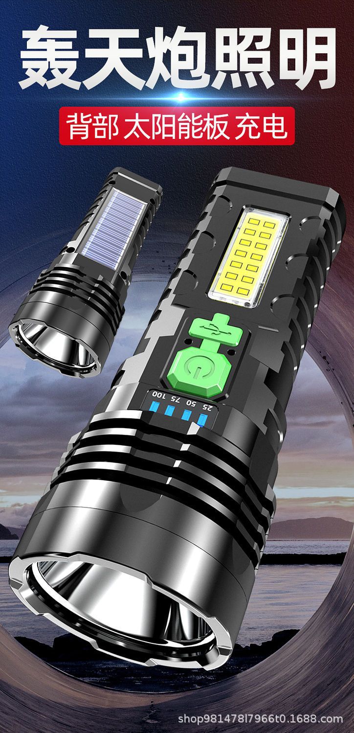태양광 충전식 휴대용 랜턴, 야외용 고출력 장거리 가정용 순찰용 휴대용 탐조등, 충전식스토어 가기
