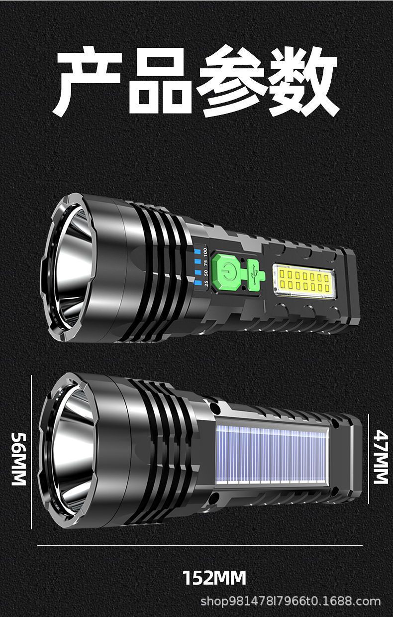 태양광 충전식 휴대용 랜턴, 야외용 고출력 장거리 가정용 순찰용 휴대용 탐조등, 충전식