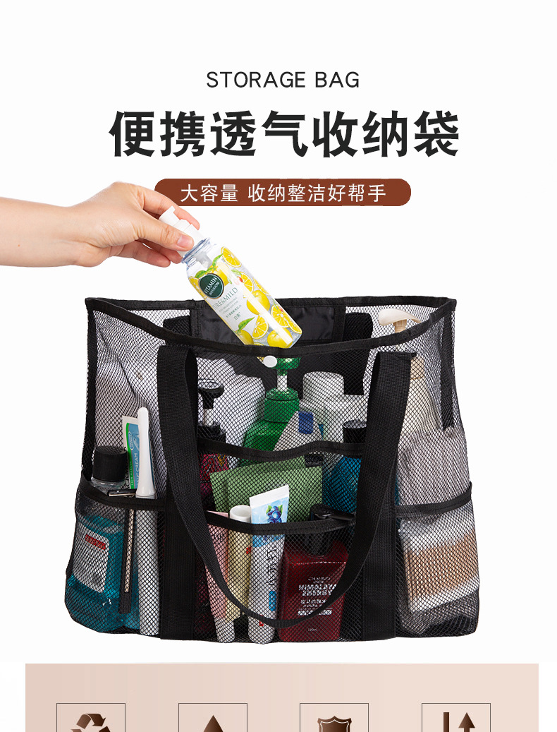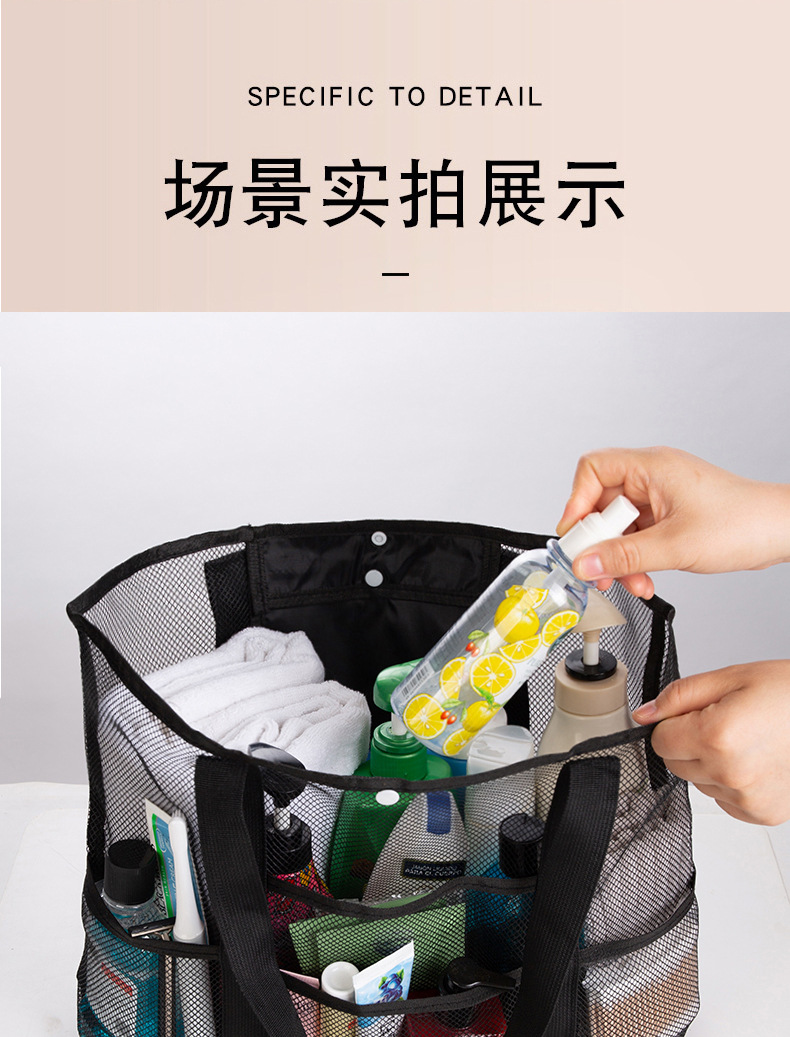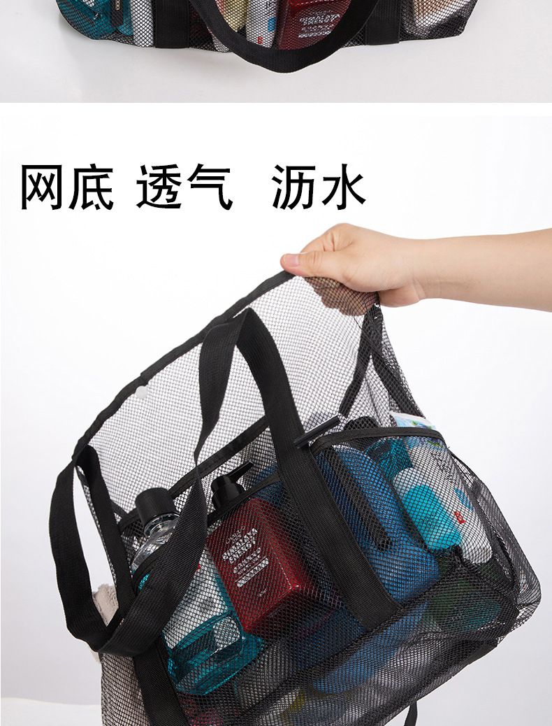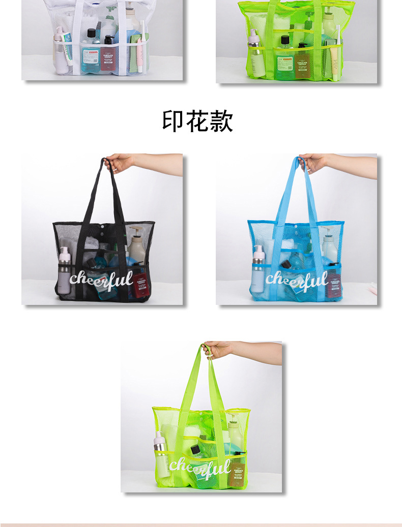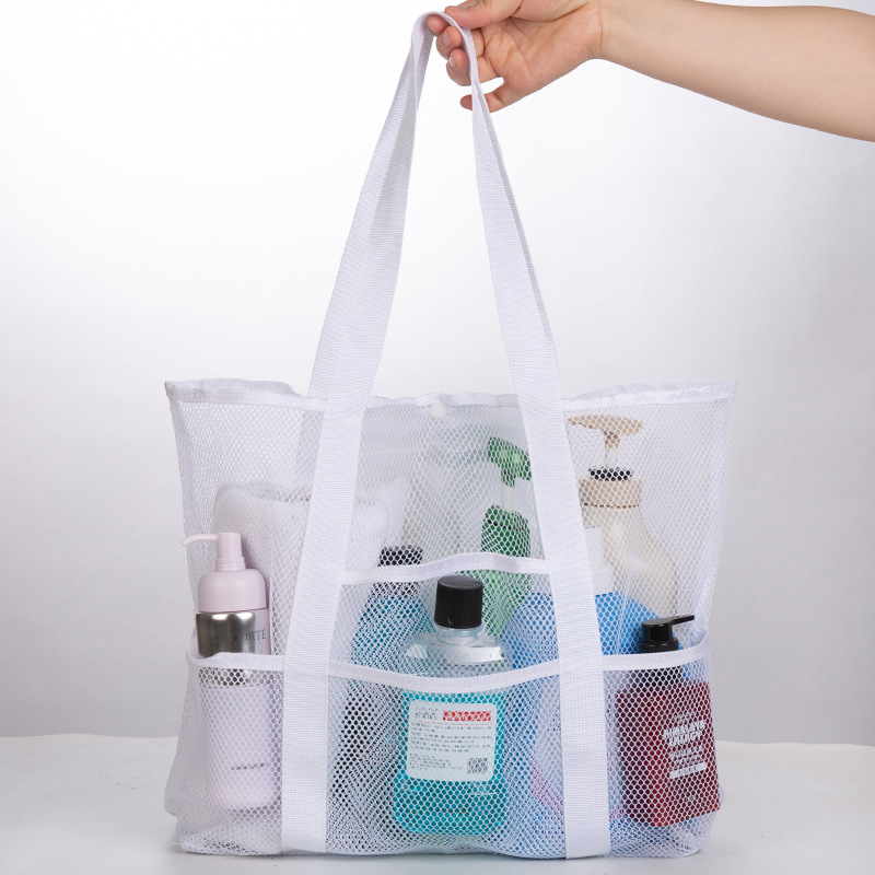 아마존 크로스 보더 그리드 휴대용 비치 가방 휴대용 보관 가방 여행 수영 해변 메쉬 가방 세척 보관 가방스토어 가기