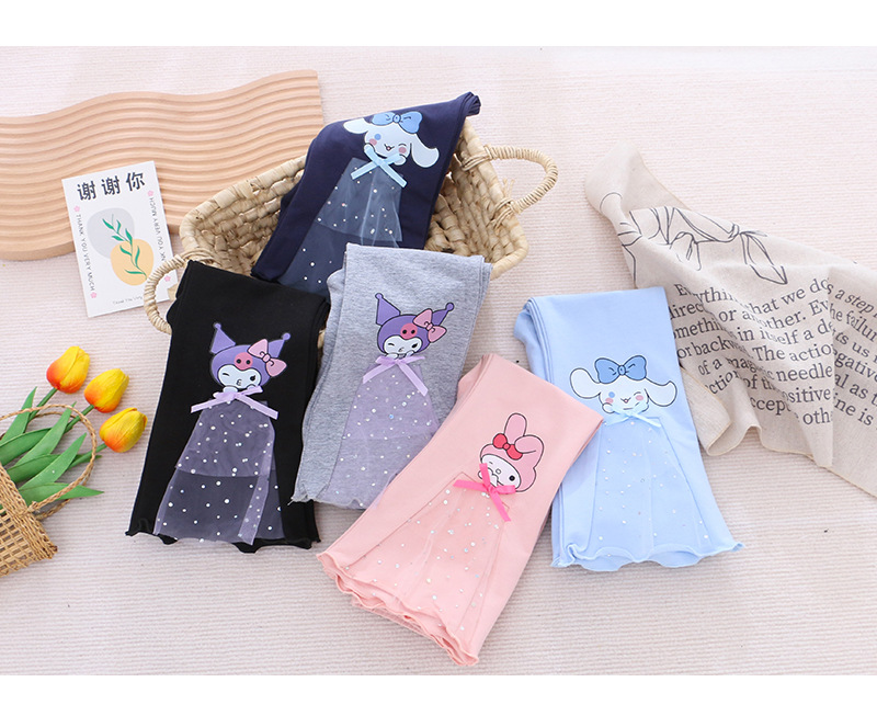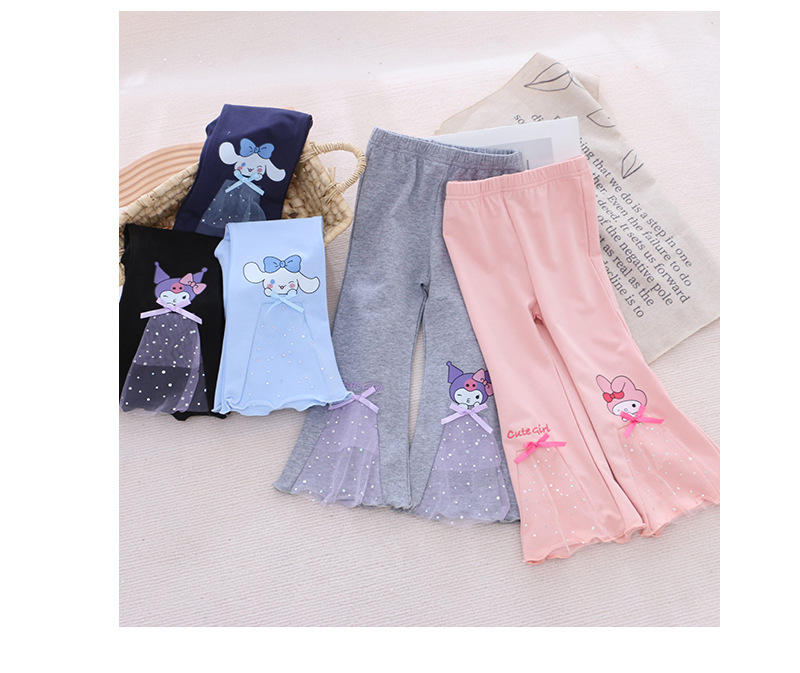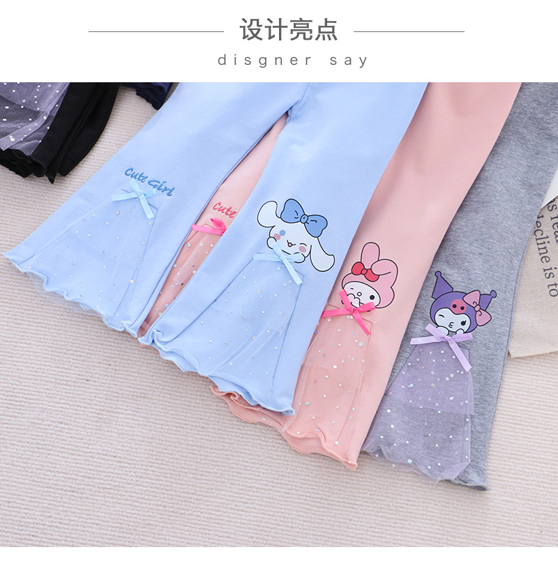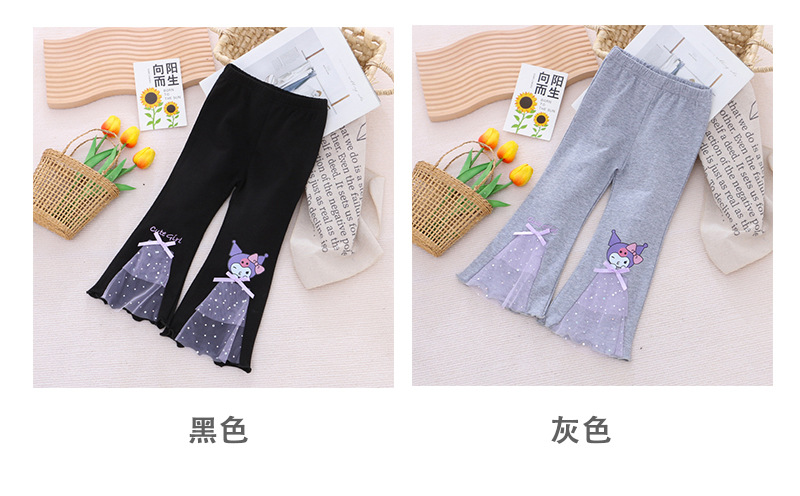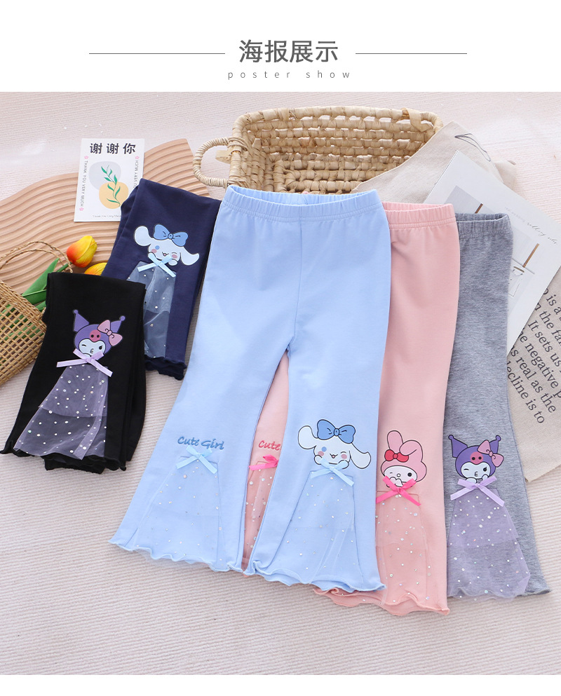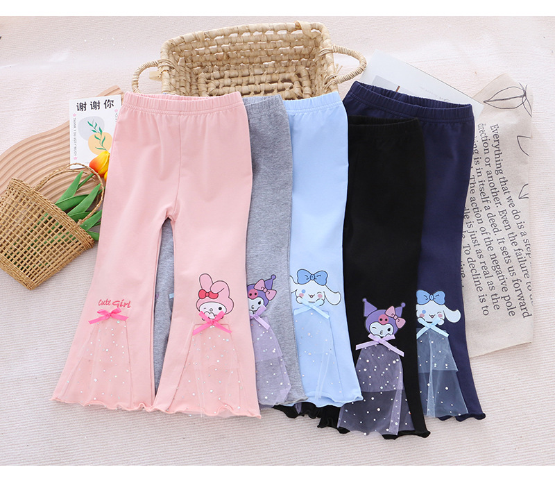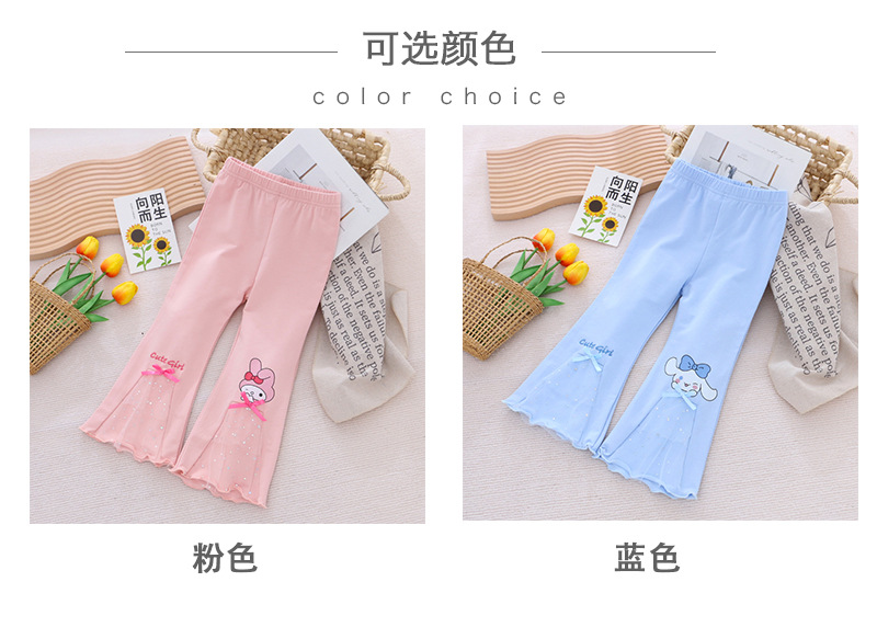 2024 여자 플레어 바지 가을 새로운 아동복 바지 스트레칭 만화 귀여운 레깅스 외부 헤어 스타일