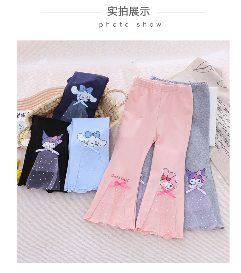 2024 여자 플레어 바지 가을 새로운 아동복 바지 스트레칭 만화 귀여운 레깅스 외부 헤어 스타일스토어 가기