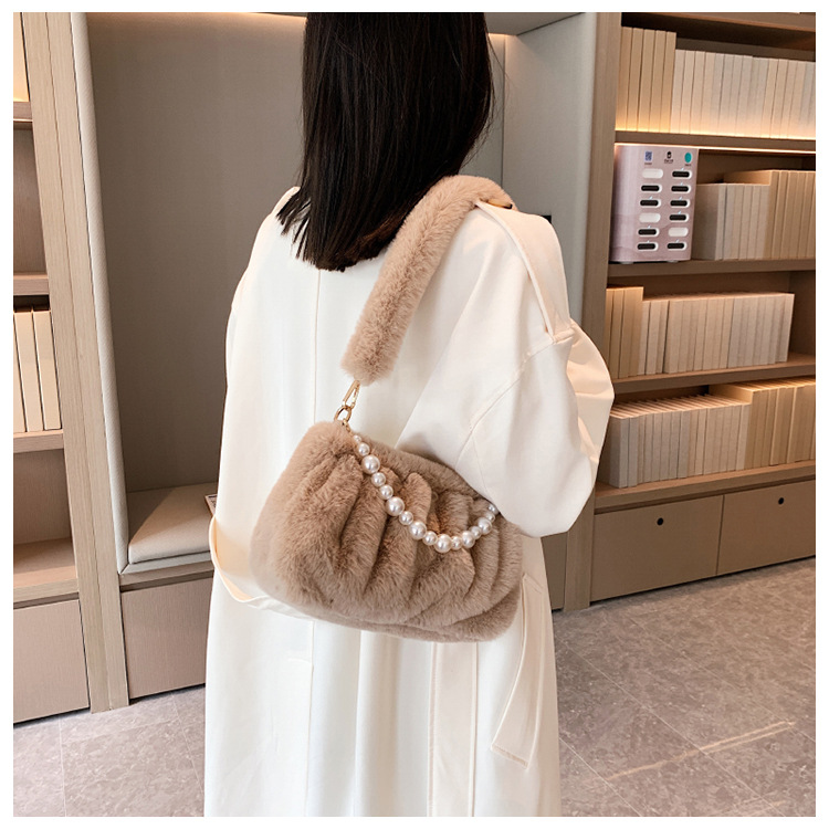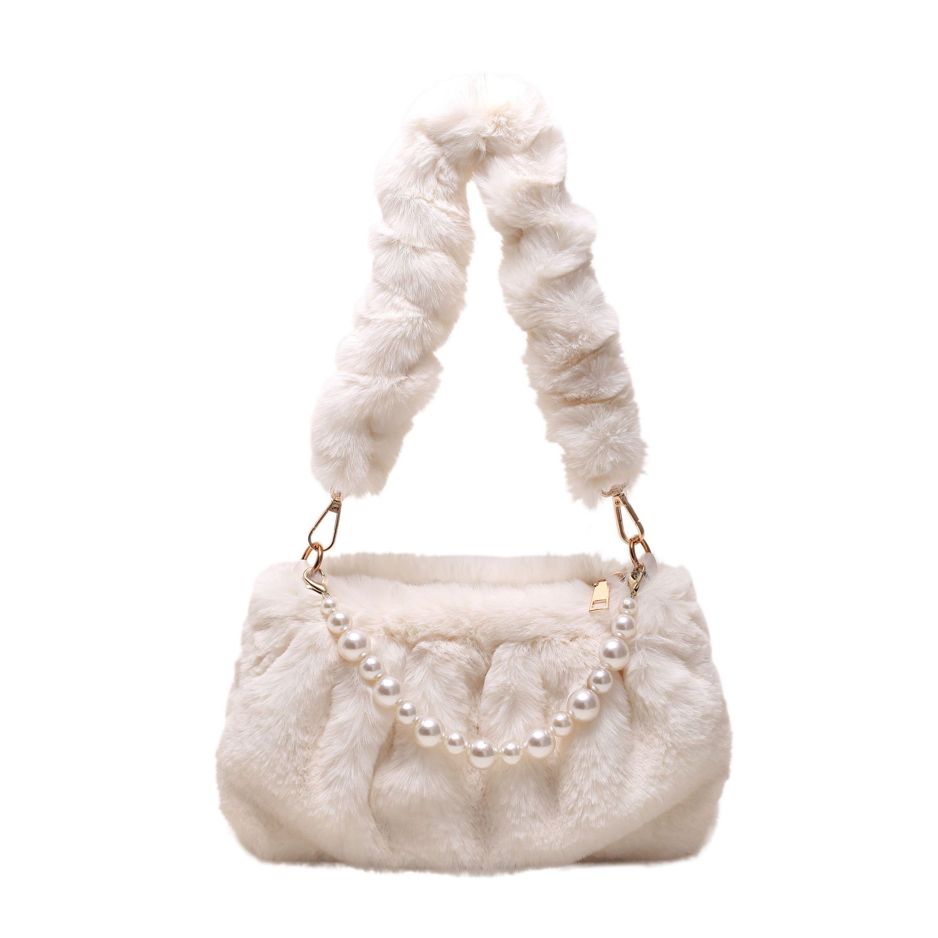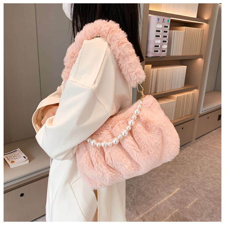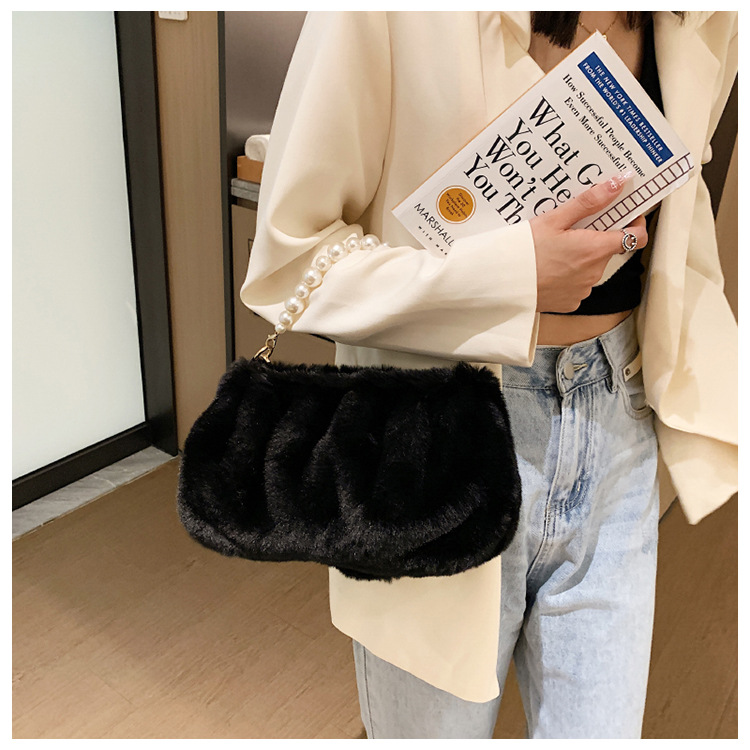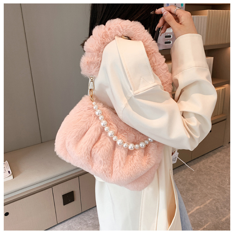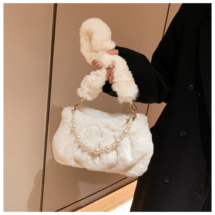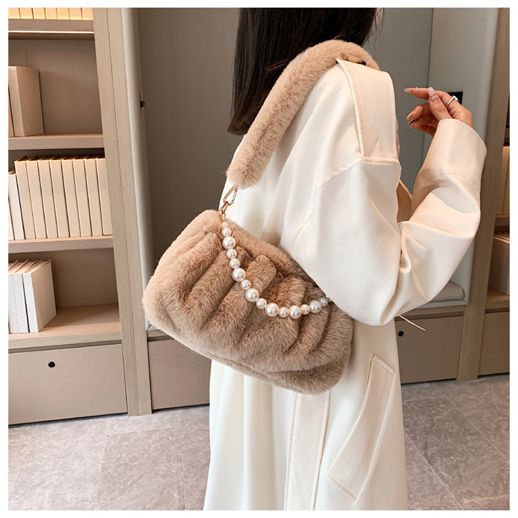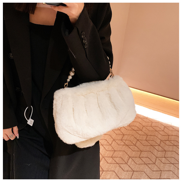 플러시 백 여성용 2023 새로운 주름 모든 매치 진주 체인 숄더백 유행 질감 겨드랑이 가방스토어 가기