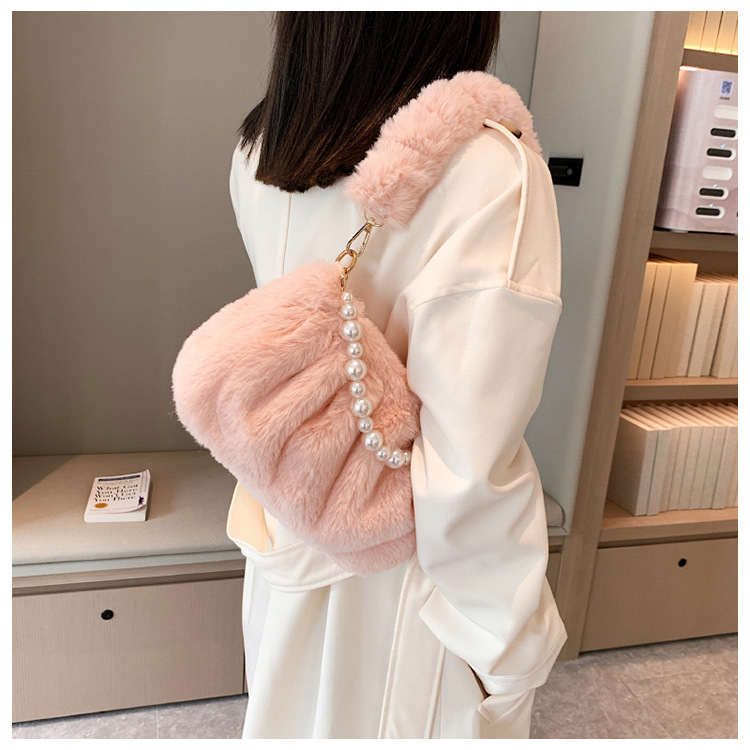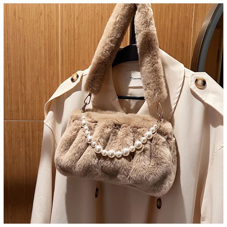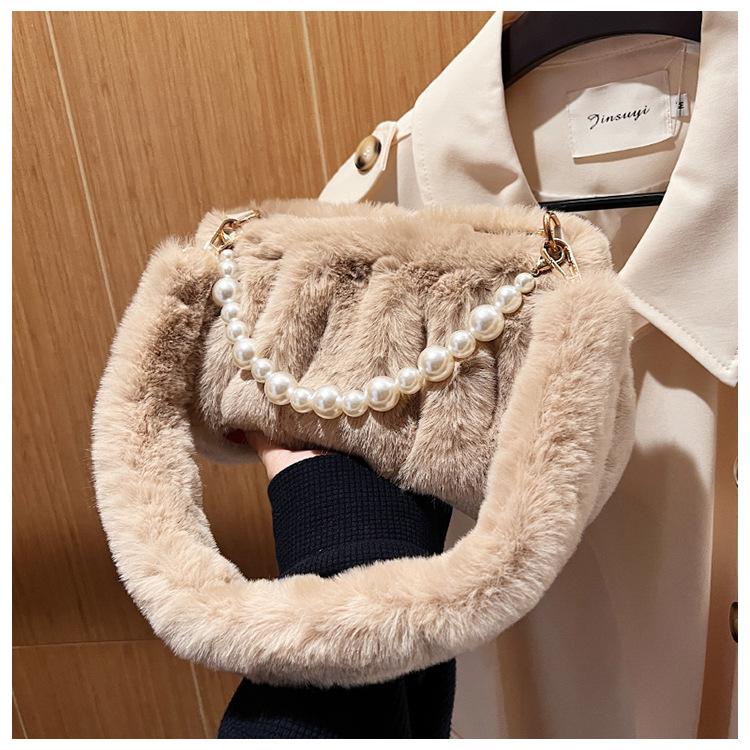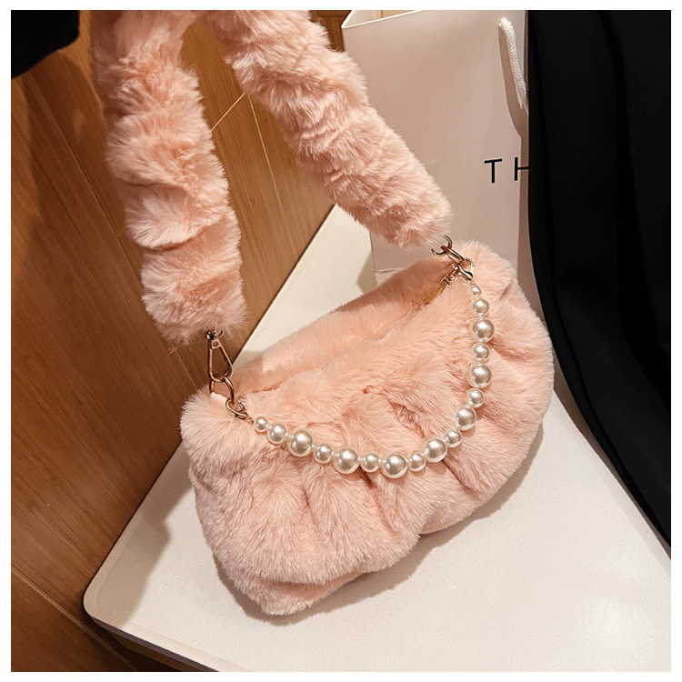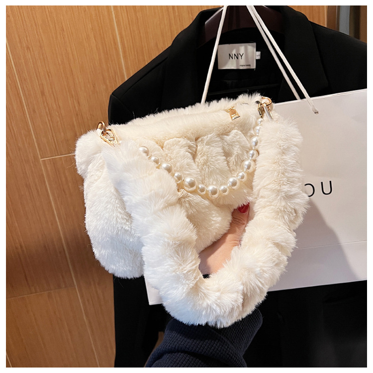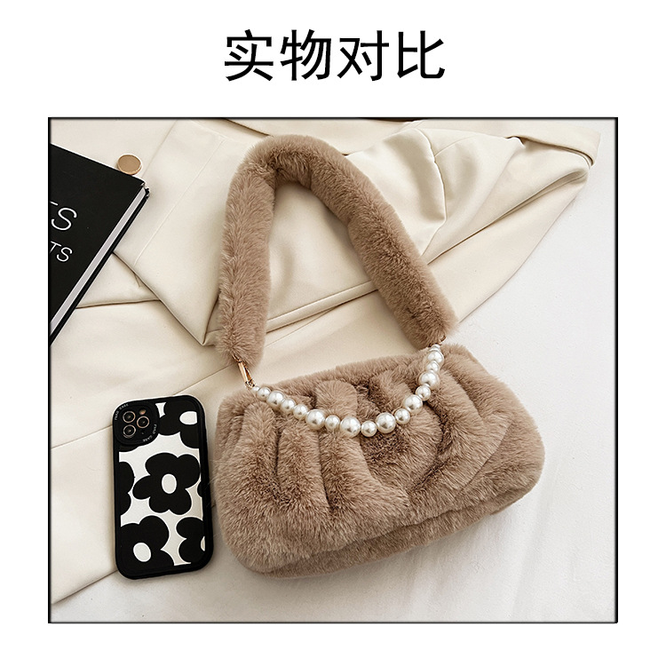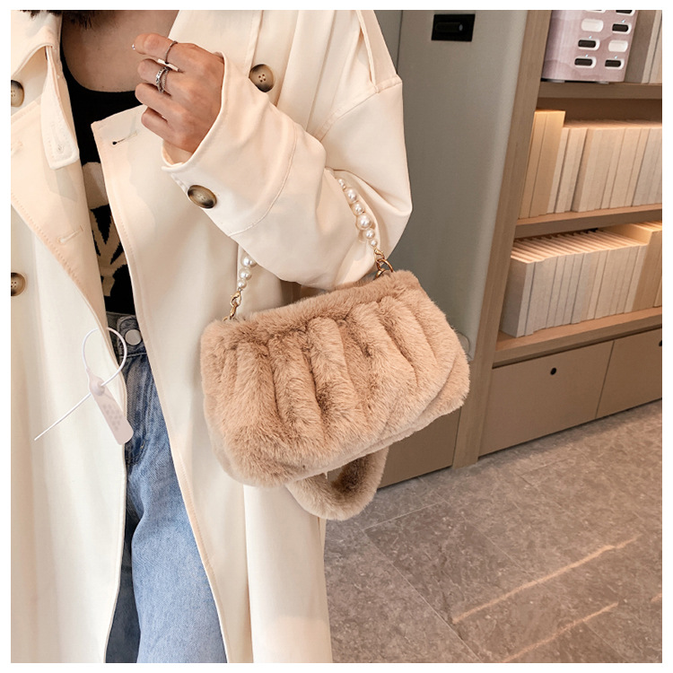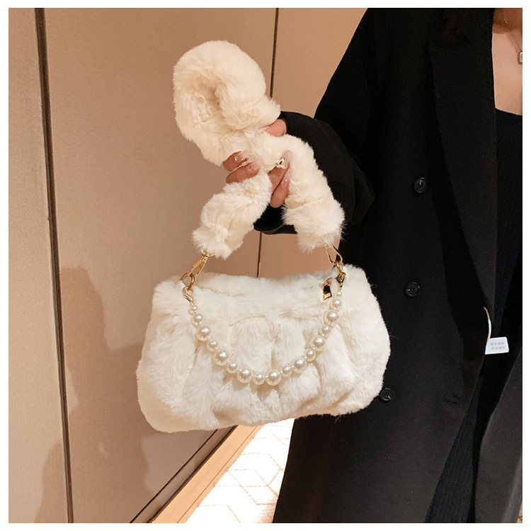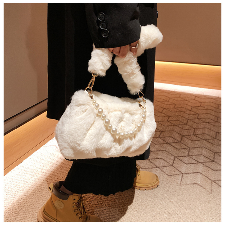 플러시 백 여성용 2023 새로운 주름 모든 매치 진주 체인 숄더백 유행 질감 겨드랑이 가방스토어 가기