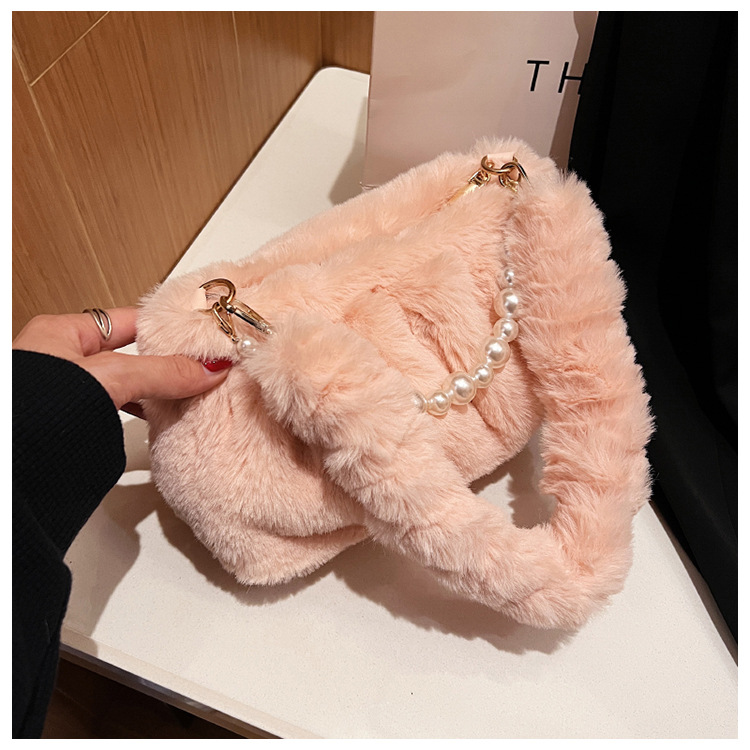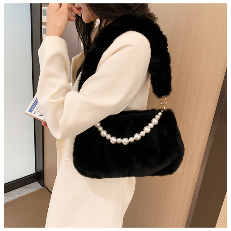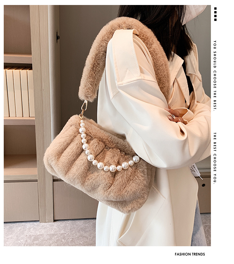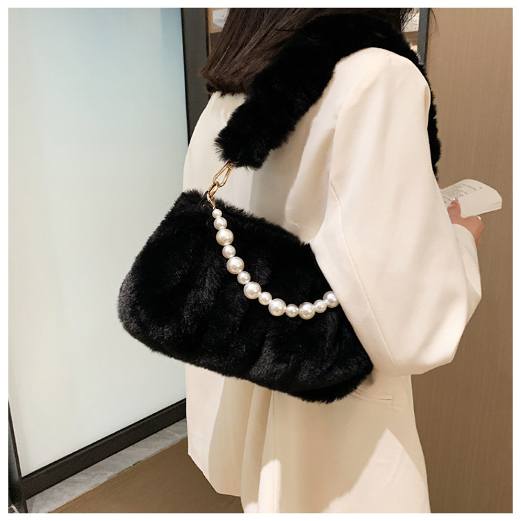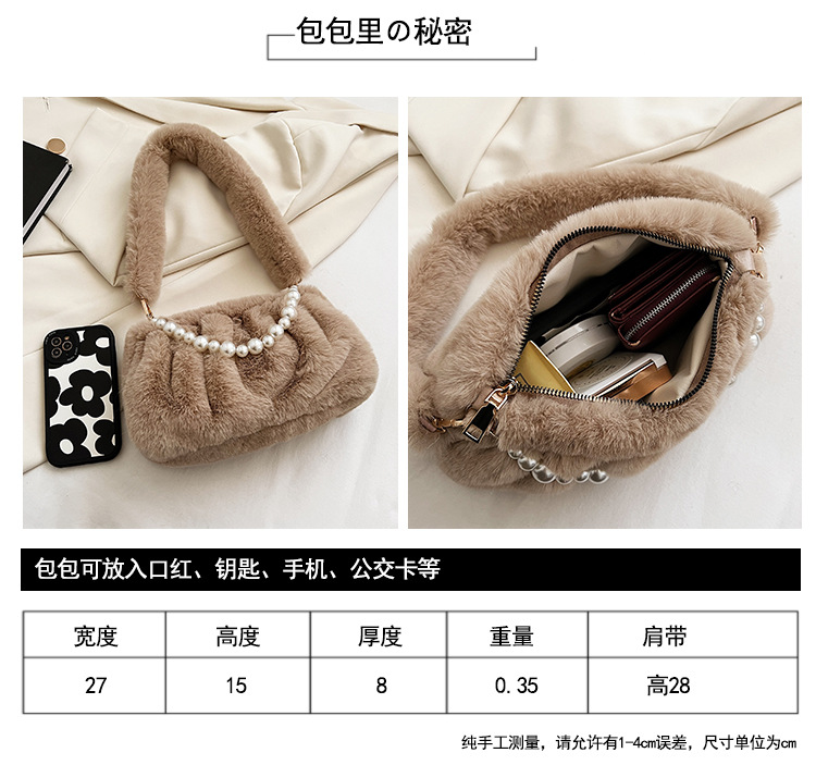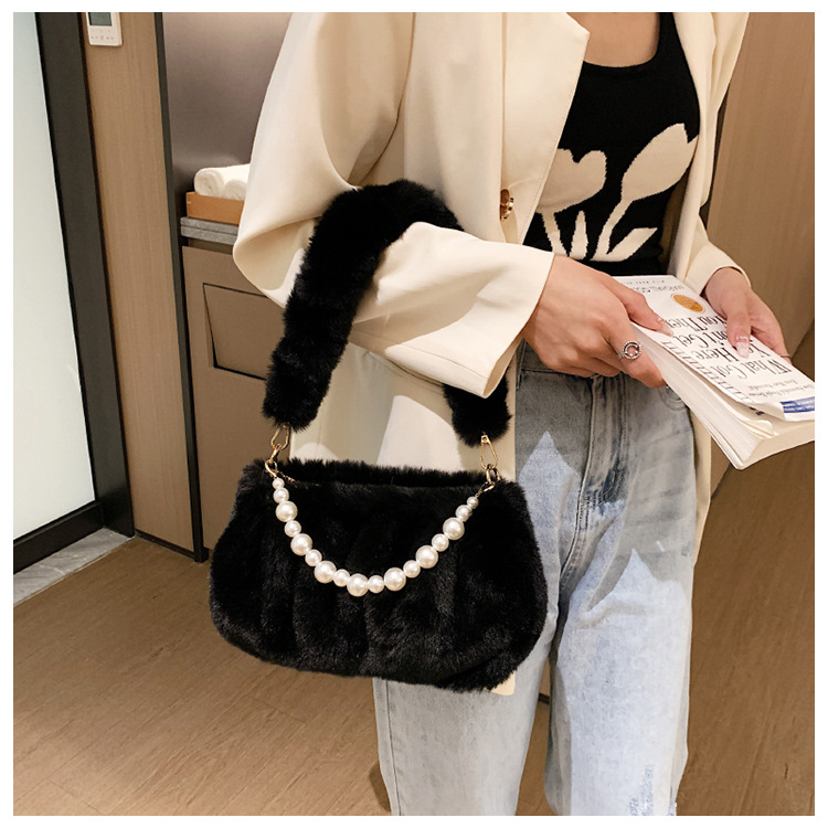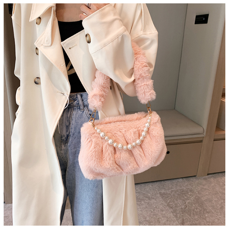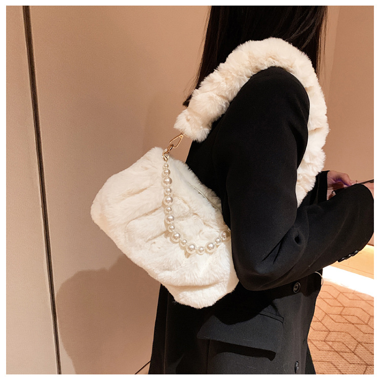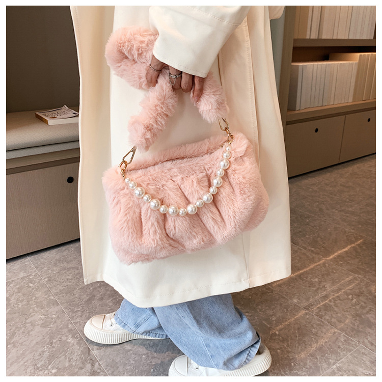 플러시 백 여성용 2023 새로운 주름 모든 매치 진주 체인 숄더백 유행 질감 겨드랑이 가방스토어 가기