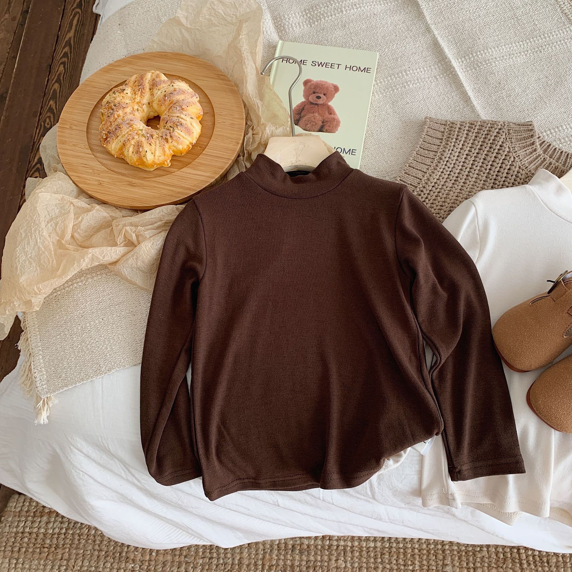 아동용 베이스 레이어 2025 Bangcheng 가을 스타일 소년 소녀 한국어 버전 솔리드 컬러 하프 터틀넥 다용도 슬림 피트 베이스 레이어 F0420스토어 가기