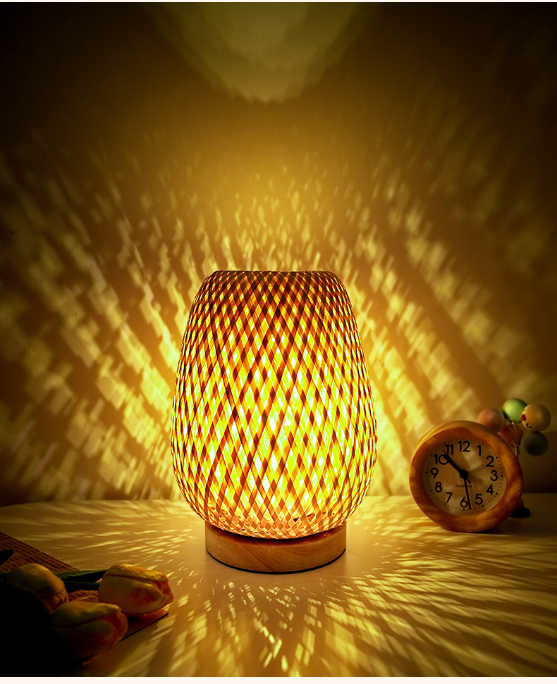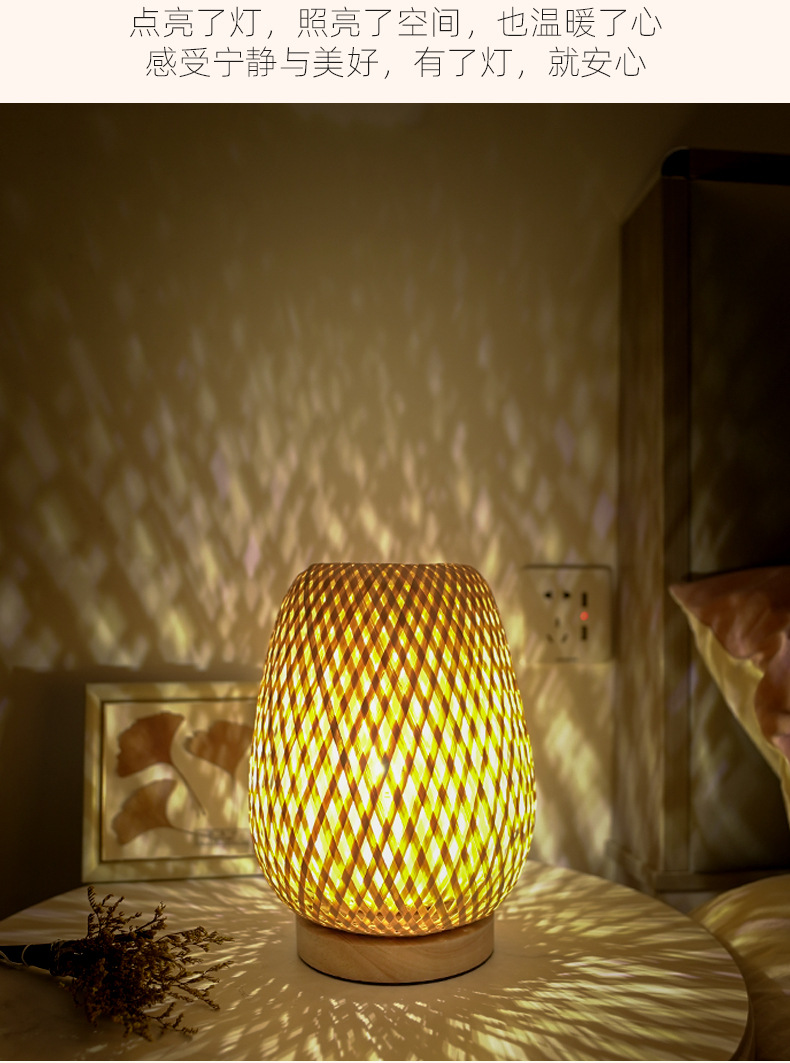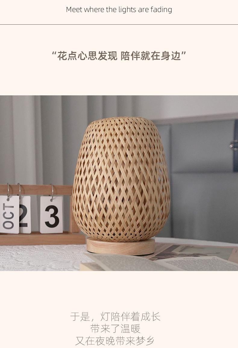 조용한 대나무 테이블 램프 침대 옆 램프 침실 노르딕 인치 대나무 나이트 라이트 홈스테이 빈티지 작은 테이블 램프 일본 스타일스토어 가기