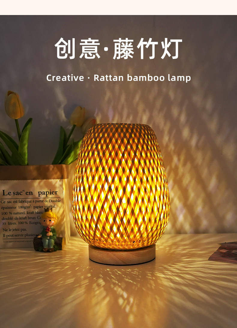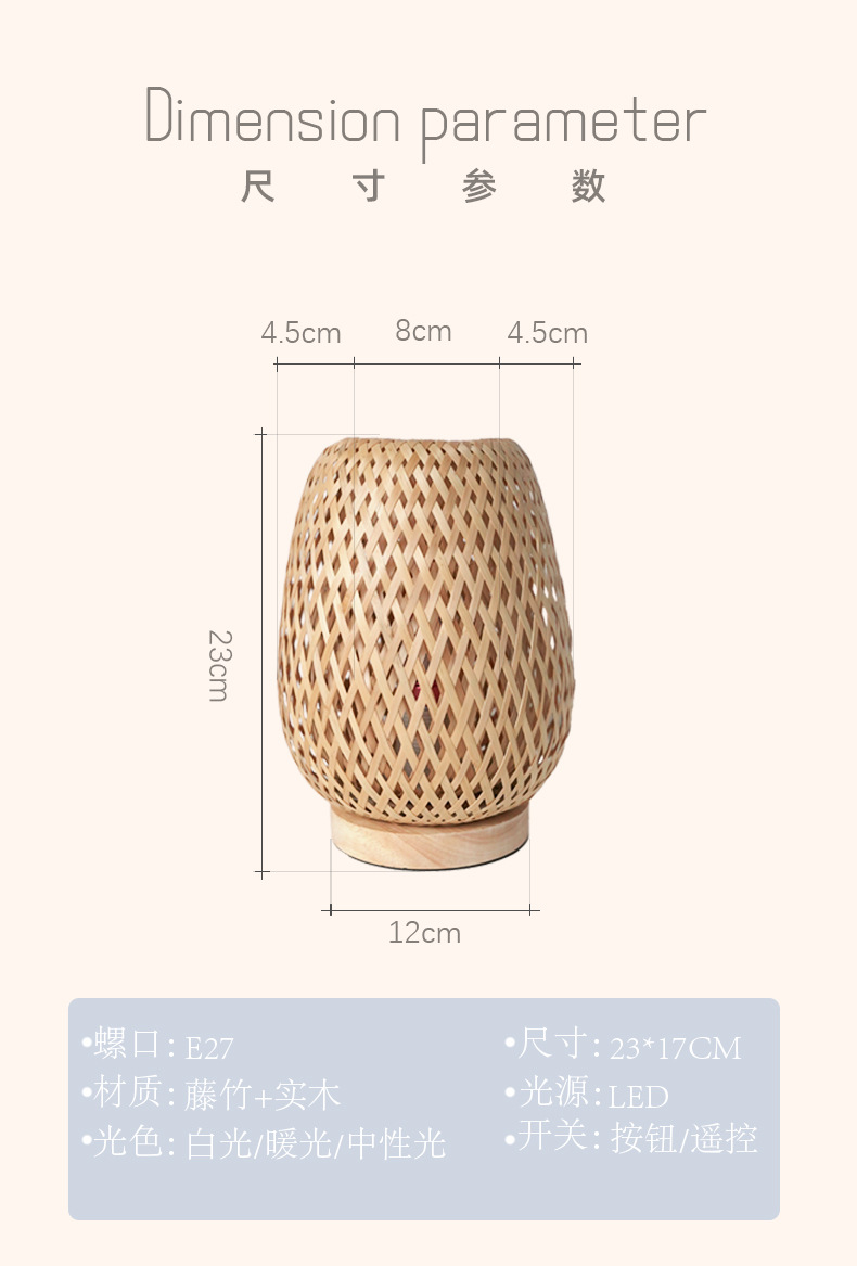 조용한 대나무 테이블 램프 침대 옆 램프 침실 노르딕 인치 대나무 나이트 라이트 홈스테이 빈티지 작은 테이블 램프 일본 스타일