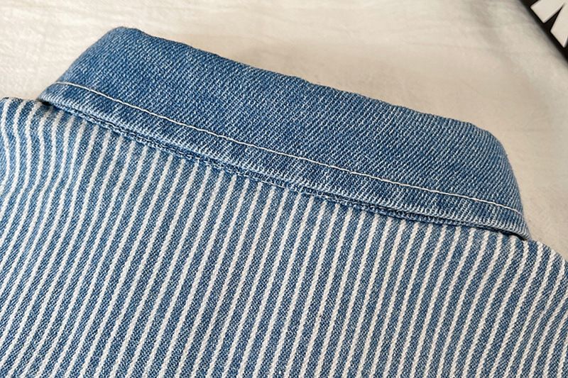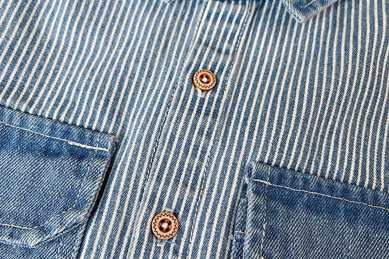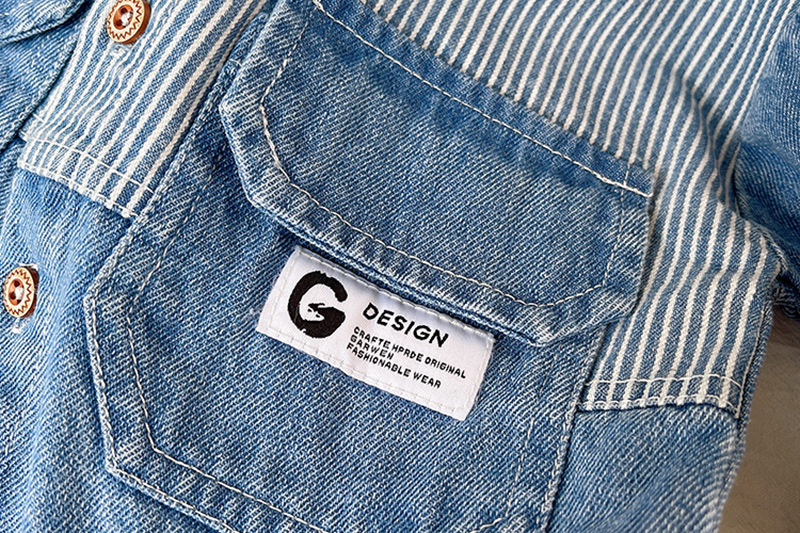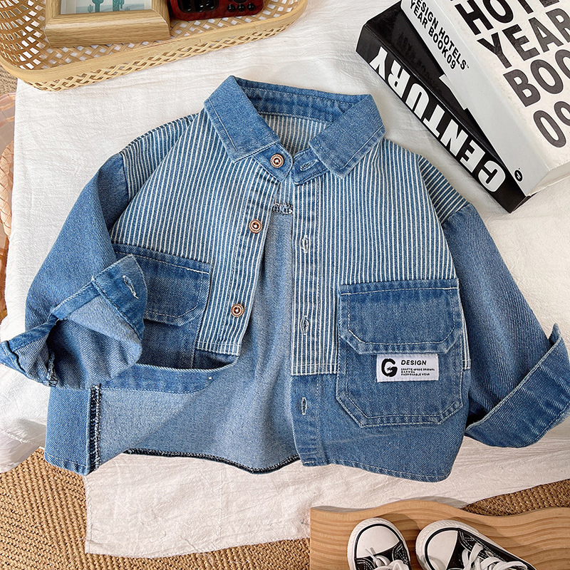 아동 가을 코트 2025 새로운 스타일 라펠 스트라이프 셔츠 데님 소년 소녀 봄 유행 멋진 스플 라이스 카디건 겉옷스토어 가기