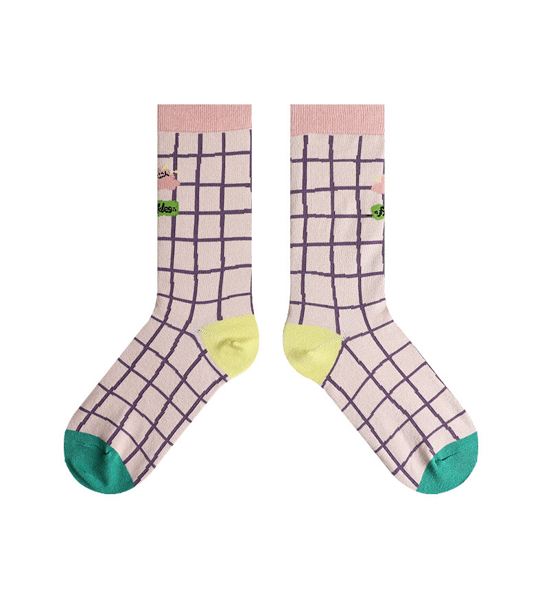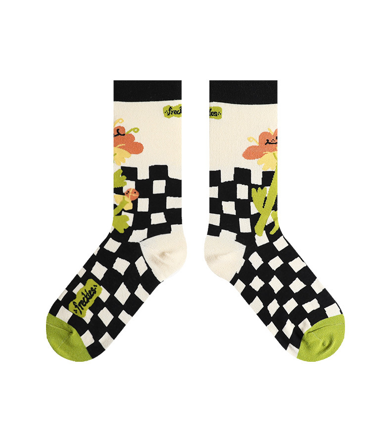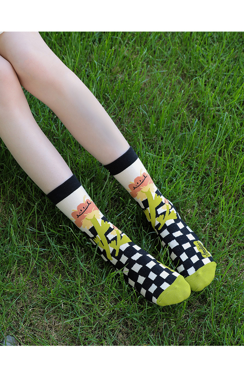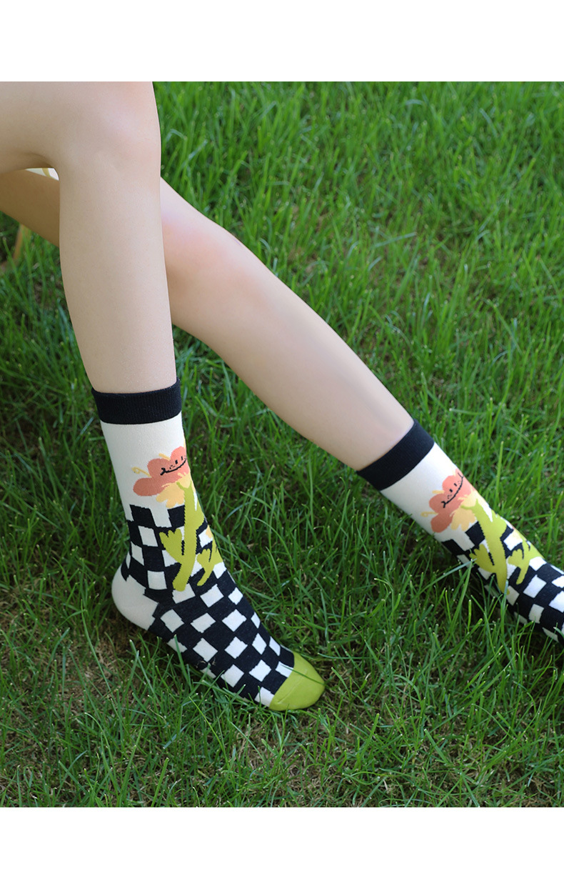 DAMAHOOV 도파민 유행 양말 블랙 격자 무늬 중간 길이 양말 예술적 모리 스타일 신선한 대비 색상 양말 여성의면스토어 가기