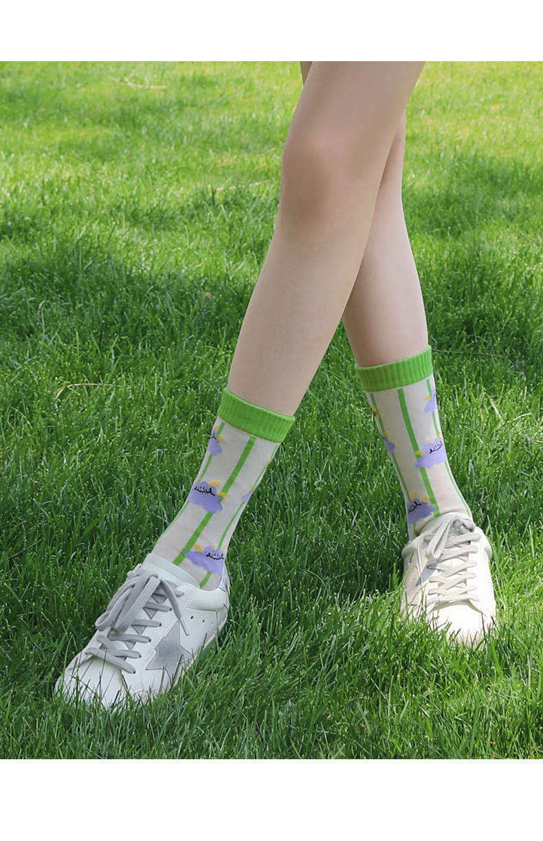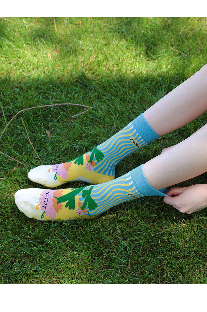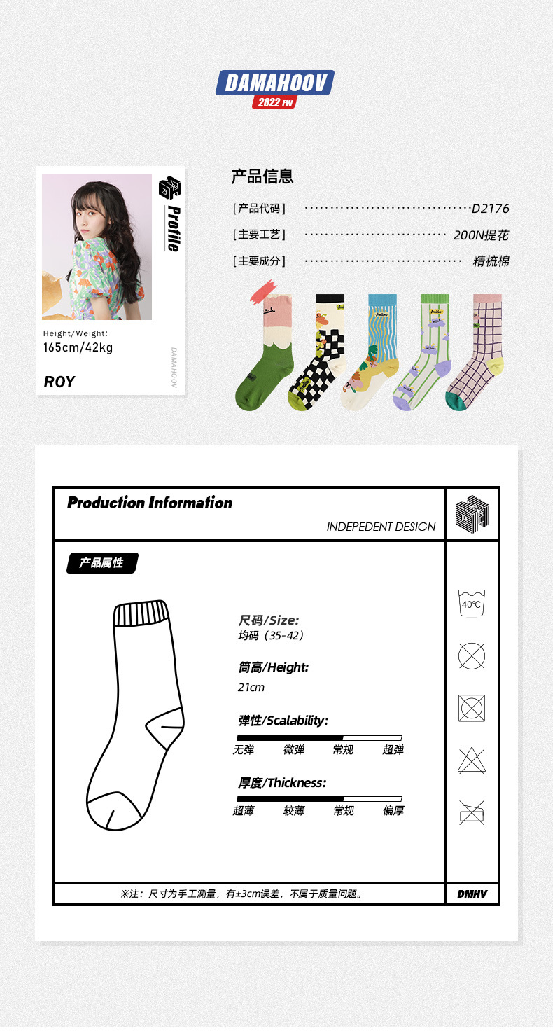 DAMAHOOV 도파민 유행 양말 블랙 격자 무늬 중간 길이 양말 예술적 모리 스타일 신선한 대비 색상 양말 여성의면스토어 가기