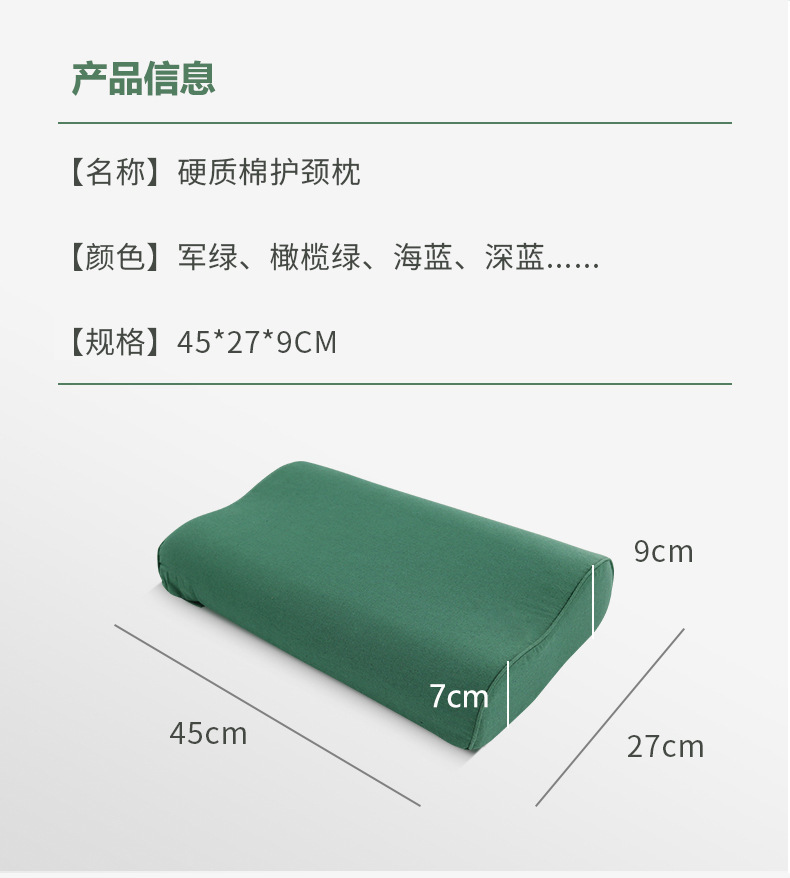 군사 베개 단단한 면화 모양의 높고 낮은 베개 04 베개 육상 공군 녹색 훈련 기숙사 단일 노동 보호 베개 도매