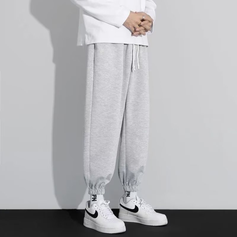 바지 남자의 봄과 가을 한국 스타일 트렌디 다리 넥타이 스포츠 바지 남성용 루즈한 스웨트 팬츠 가을 얇은 캐주얼 바지 모든 매치