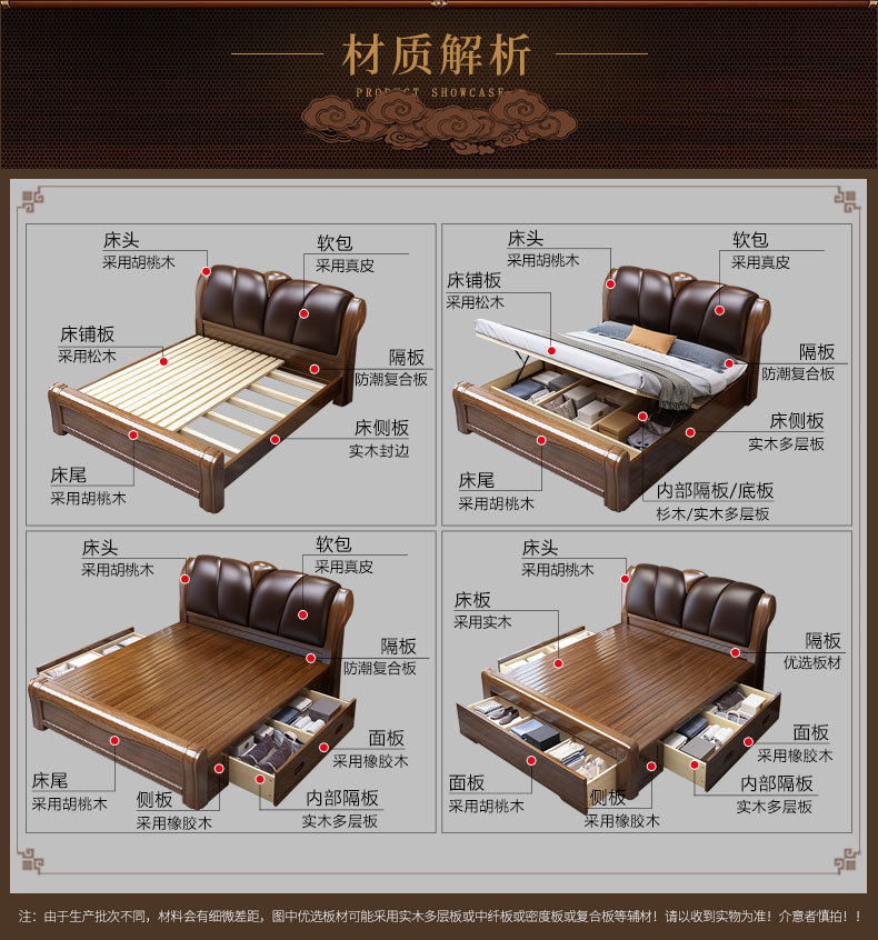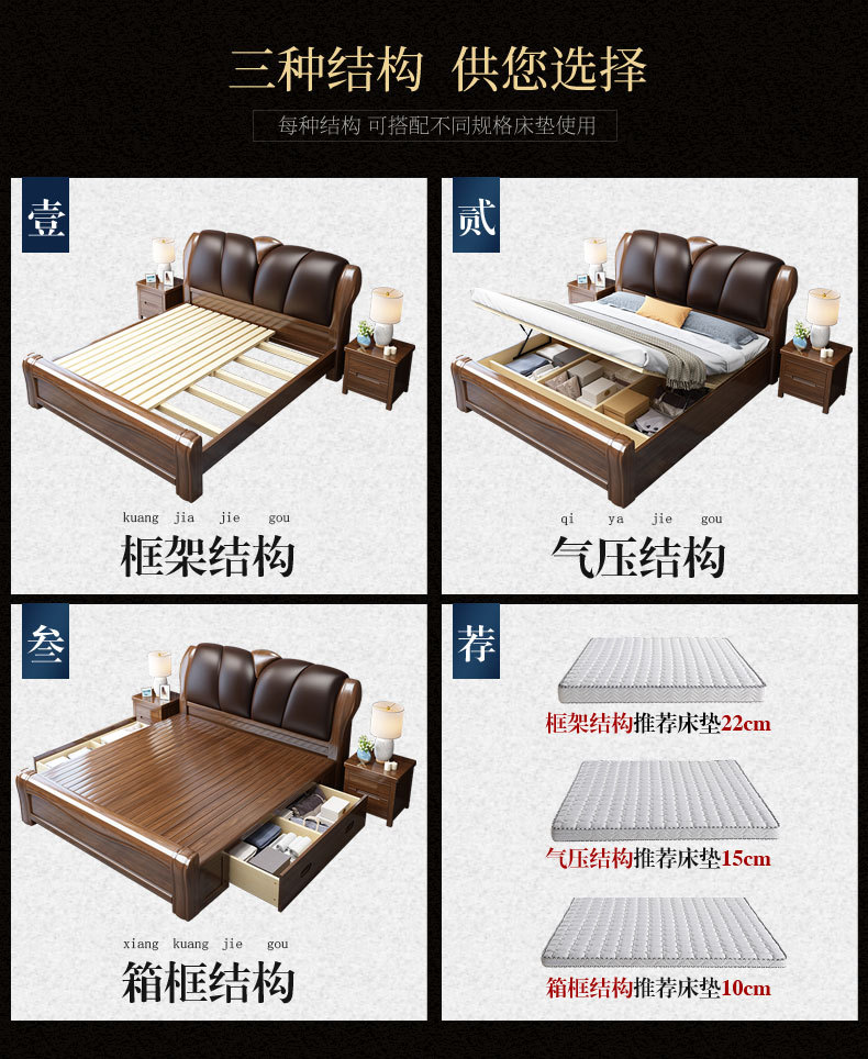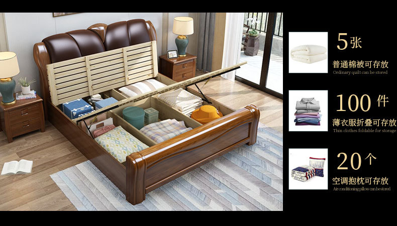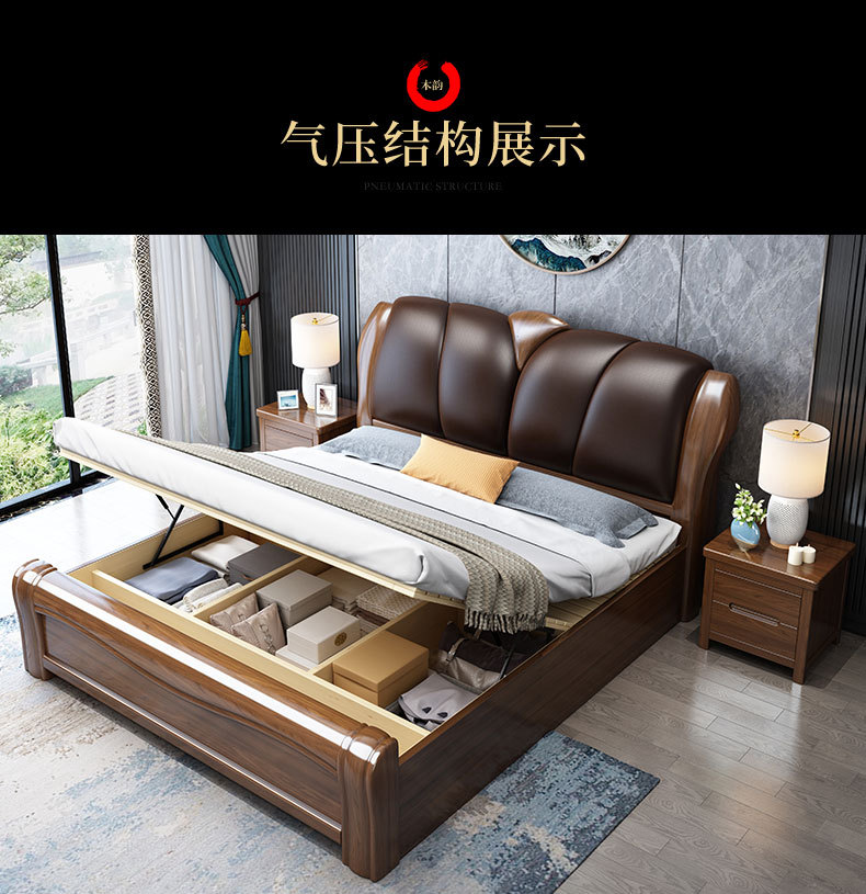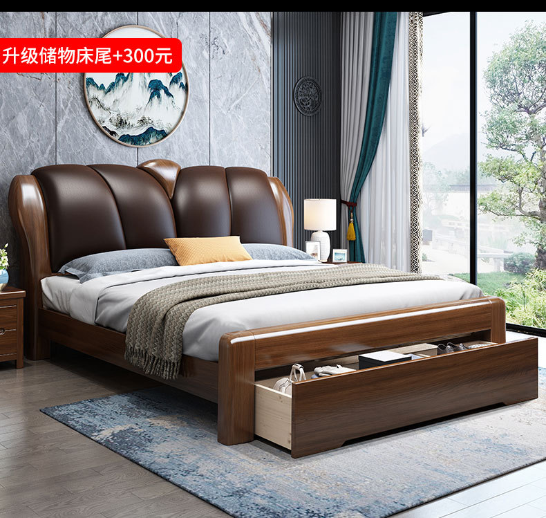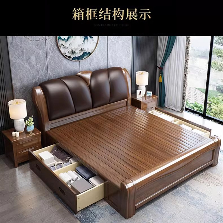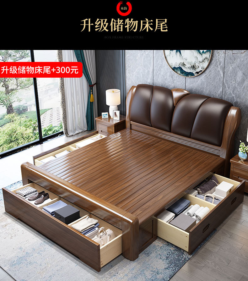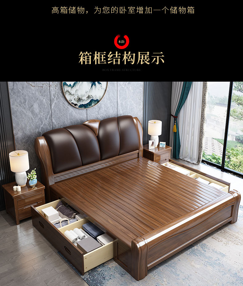골드 실크 호두 단단한 나무 침대 마스터 침실 1.8 m 큰 침대 현대 간단한 중국 결혼식 침대 빛 고급 보관 부드러운 가방 침대스토어 가기