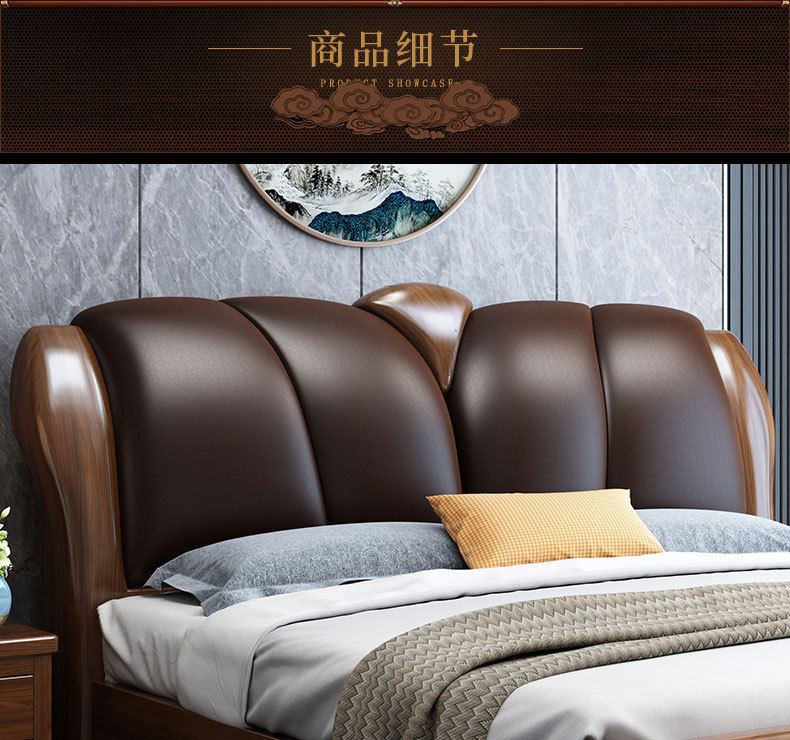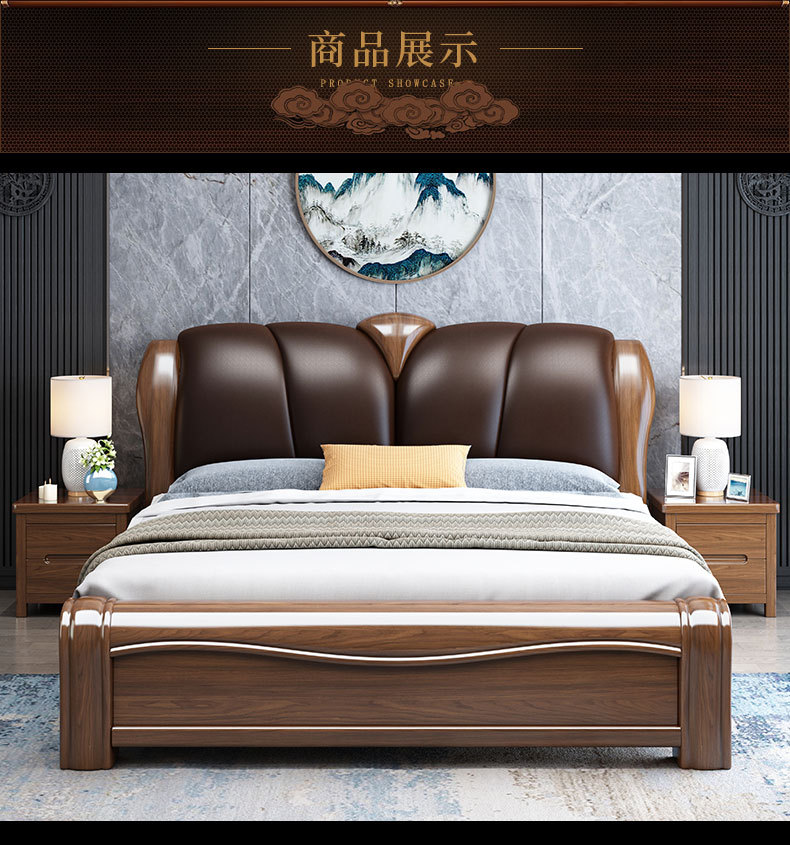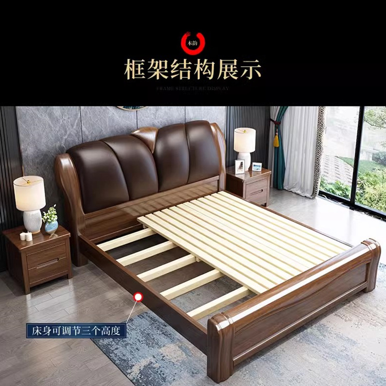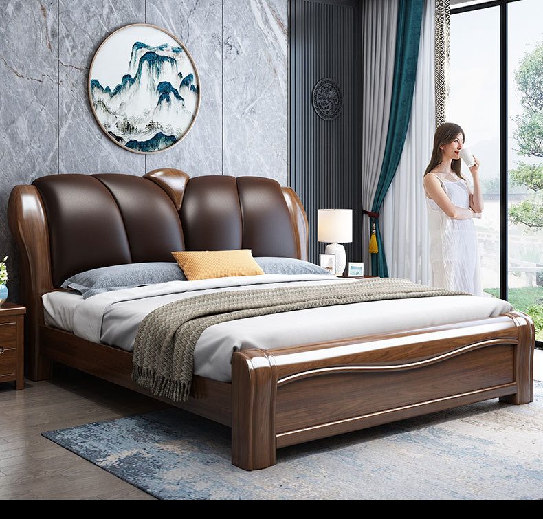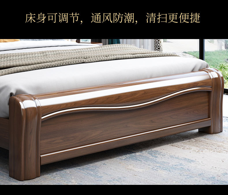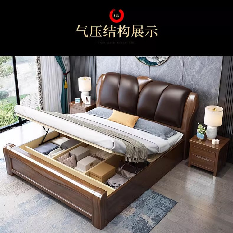 골드 실크 호두 단단한 나무 침대 마스터 침실 1.8 m 큰 침대 현대 간단한 중국 결혼식 침대 빛 고급 보관 부드러운 가방 침대