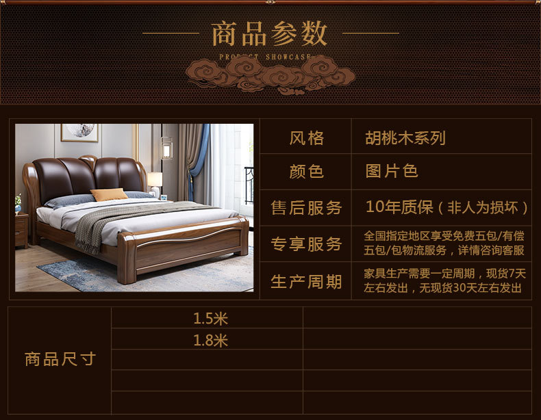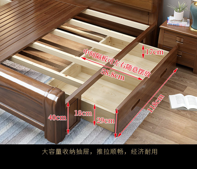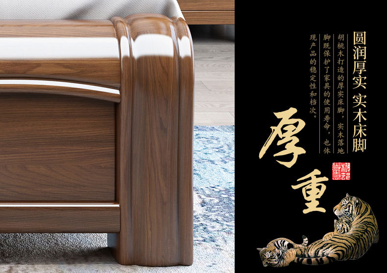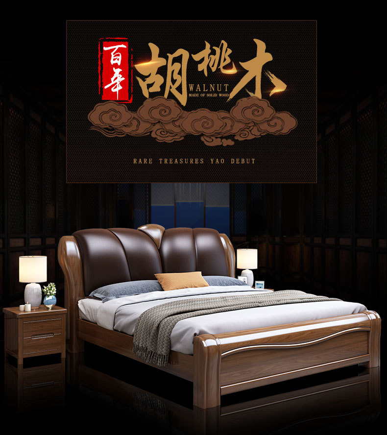 • 1.8*2 m 호두 침대 + 1 침대 옆 탁자
