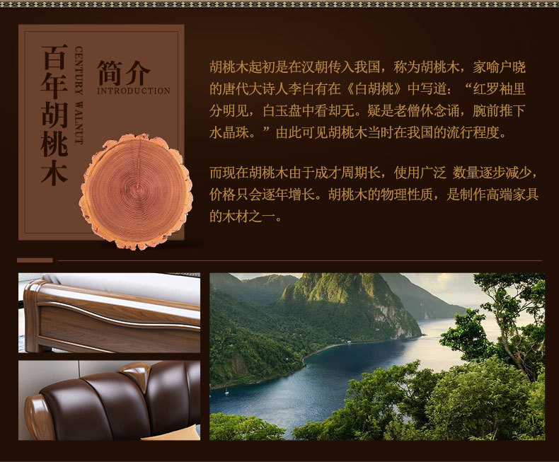 • 1.8*2 m 호두 침대 + 환경 보호 코코넛 팜 매트리스 + 침대 옆 탁자 2 개