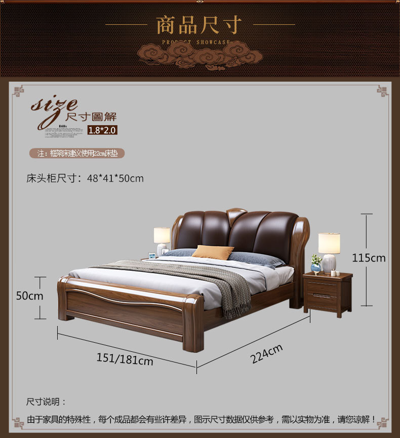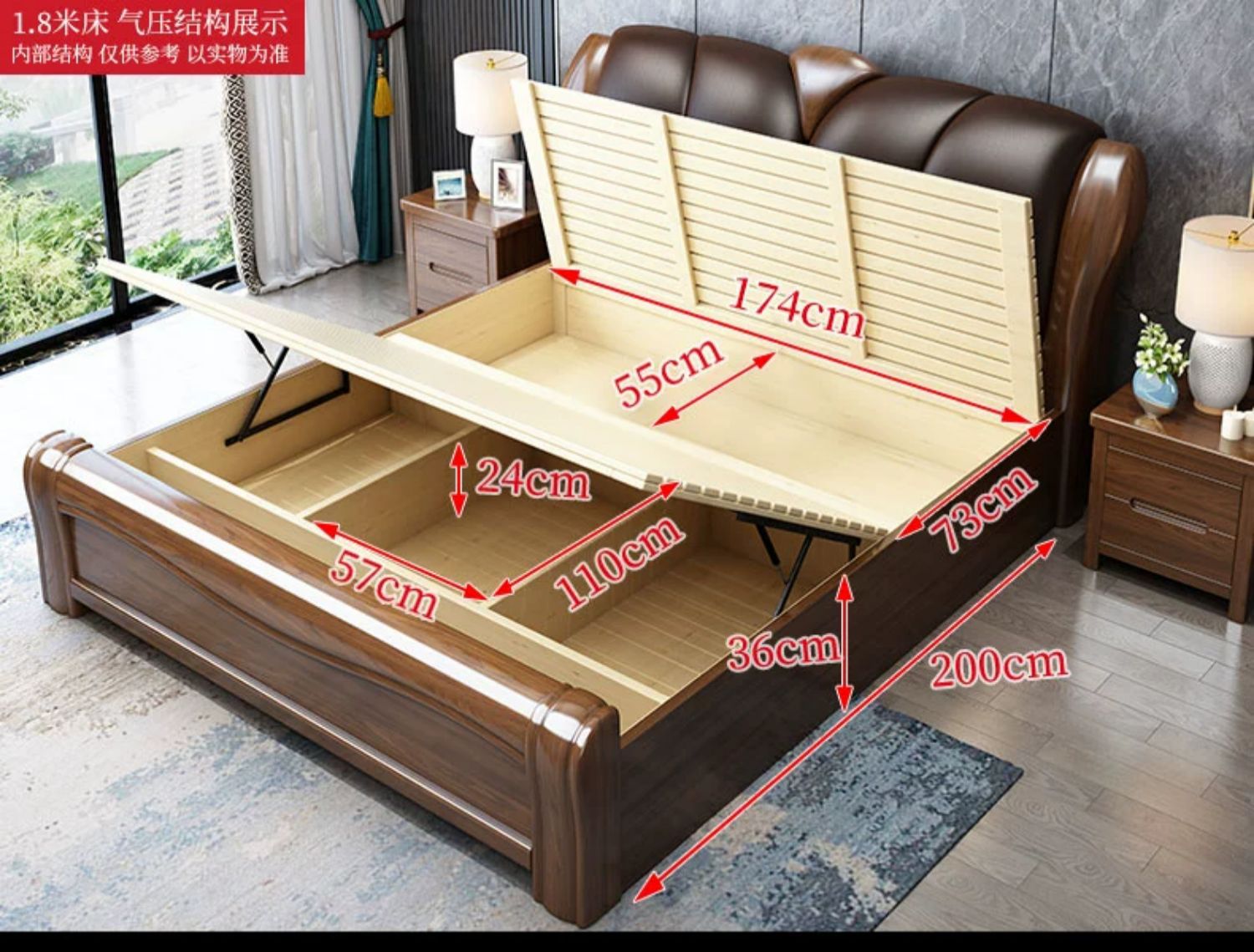 • 1.8*2 m 호두 침대 + 2 침대 옆 탁자