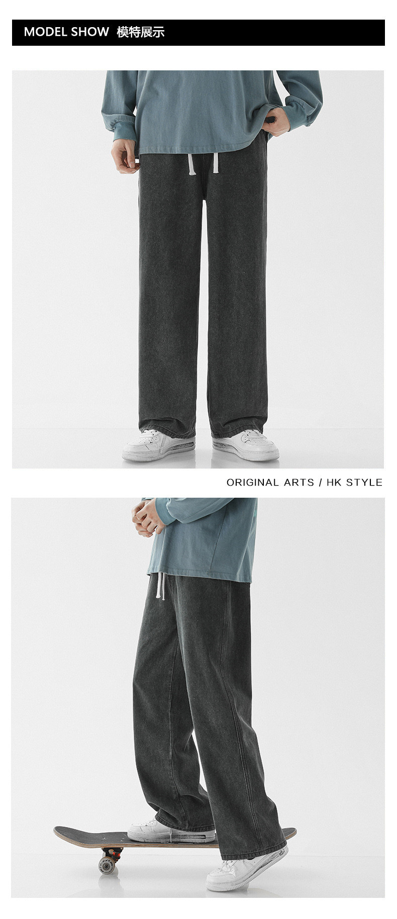 스트레이트 레그 루즈한 청바지 남성용 봄과 가을 새로운 패션 브랜드 고무 탄성 허리 캐주얼 와이드 레그 하이 스트리트 바지스토어 가기
