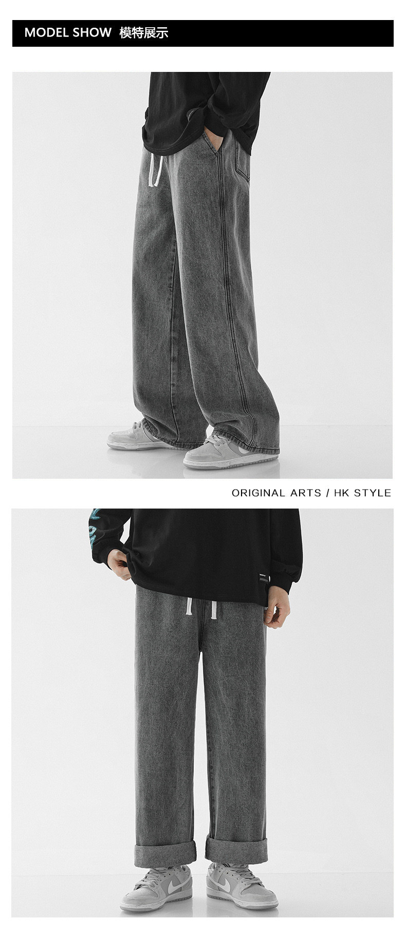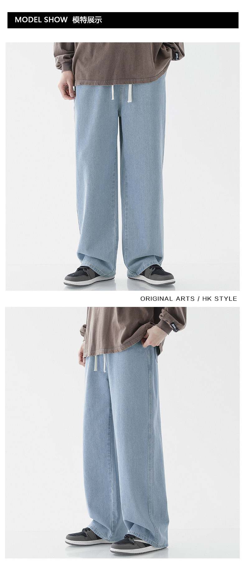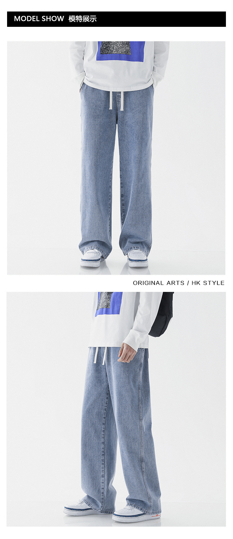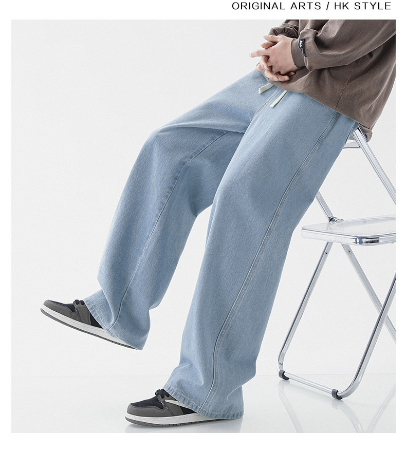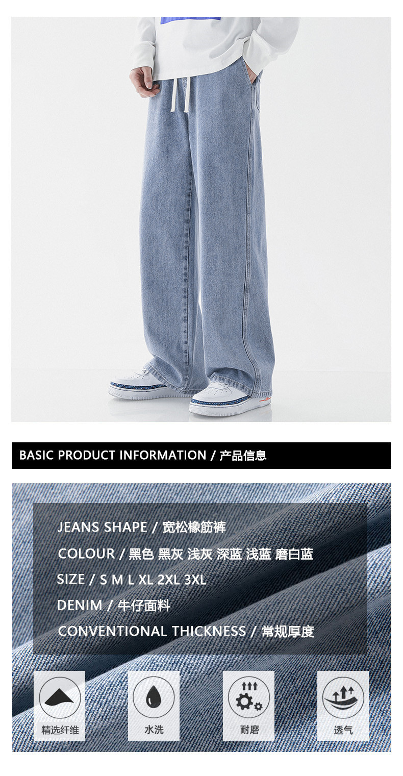 스트레이트 레그 루즈한 청바지 남성용 봄과 가을 새로운 패션 브랜드 고무 탄성 허리 캐주얼 와이드 레그 하이 스트리트 바지