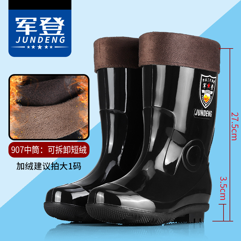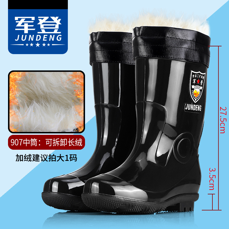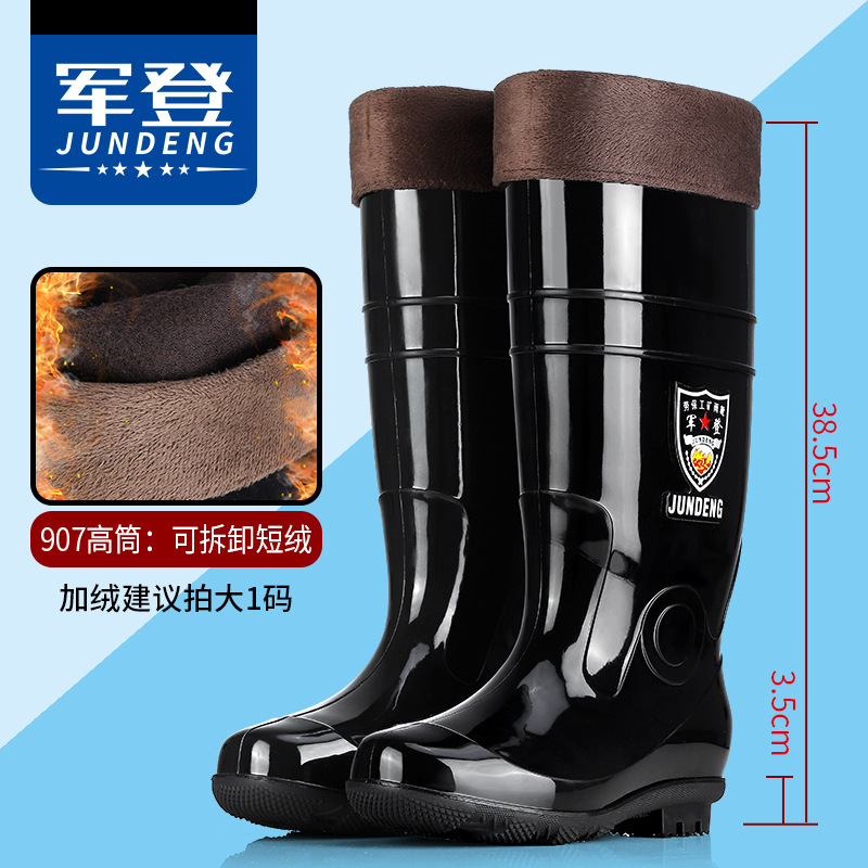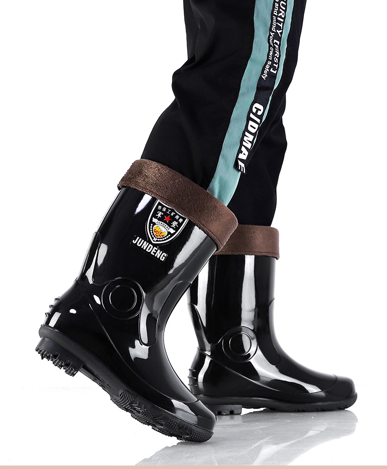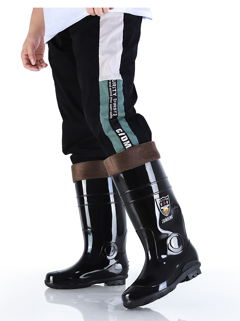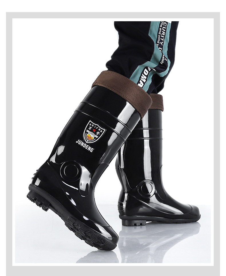 Jundeng 블랙 바닥 물 신발 물 부츠 비 신발 남성 방수 미끄럼 방지 레인 슈즈 기모 따뜻한 레인 부츠 도매
