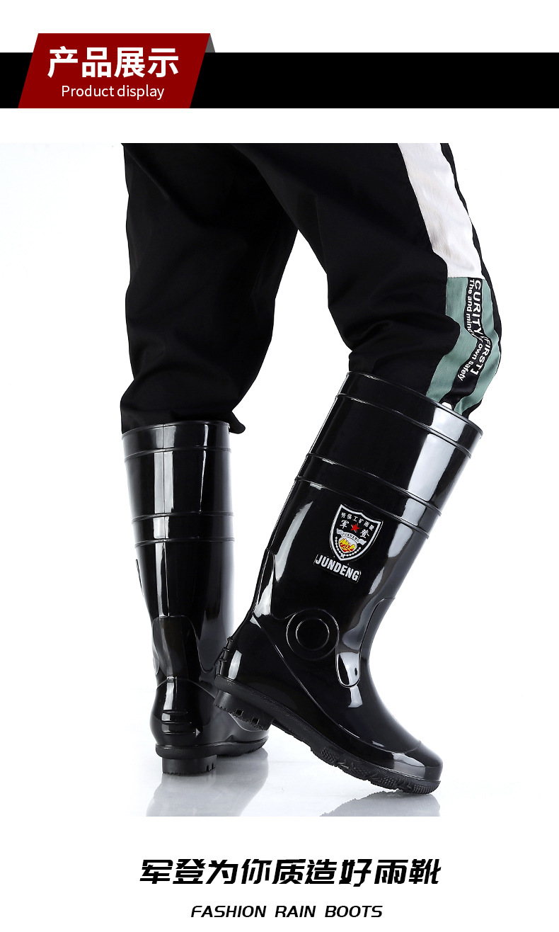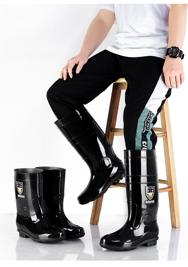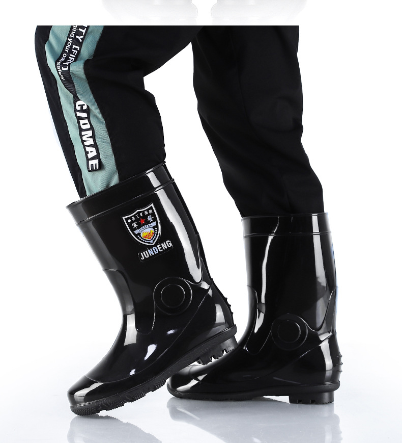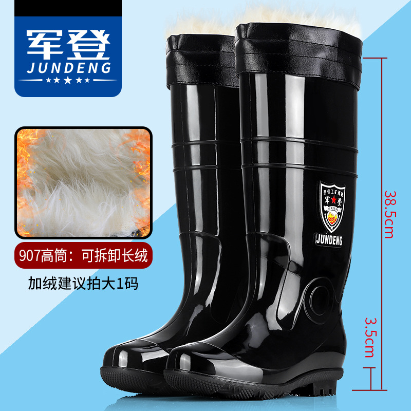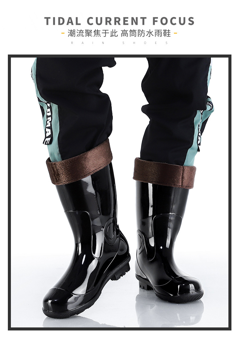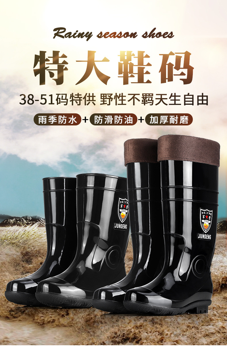 Jundeng 블랙 바닥 물 신발 물 부츠 비 신발 남성 방수 미끄럼 방지 레인 슈즈 기모 따뜻한 레인 부츠 도매