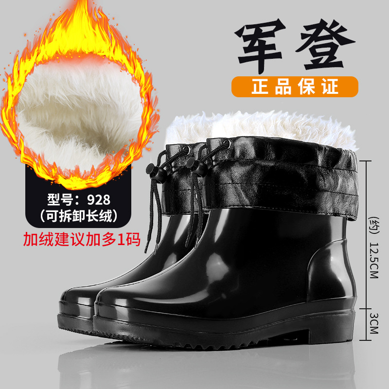 Jundeng 블랙 바닥 물 신발 물 부츠 비 신발 남성 방수 미끄럼 방지 레인 슈즈 기모 따뜻한 레인 부츠 도매스토어 가기