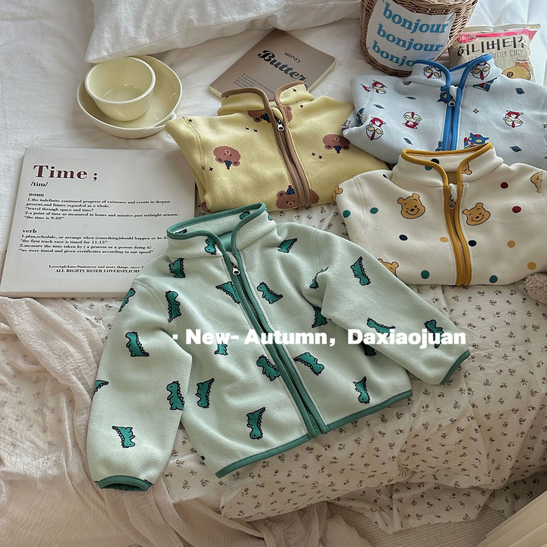 재고 크기 롤 23 가을과 겨울 어린이 전체 인쇄 만화 오스트리아 곡물 양털 한국 스타일 지퍼 칼라 소년과 소녀를위한 유행 재킷스토어 가기