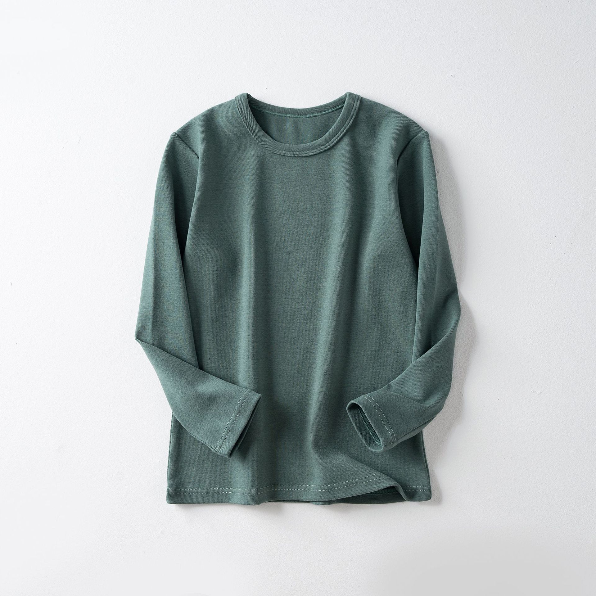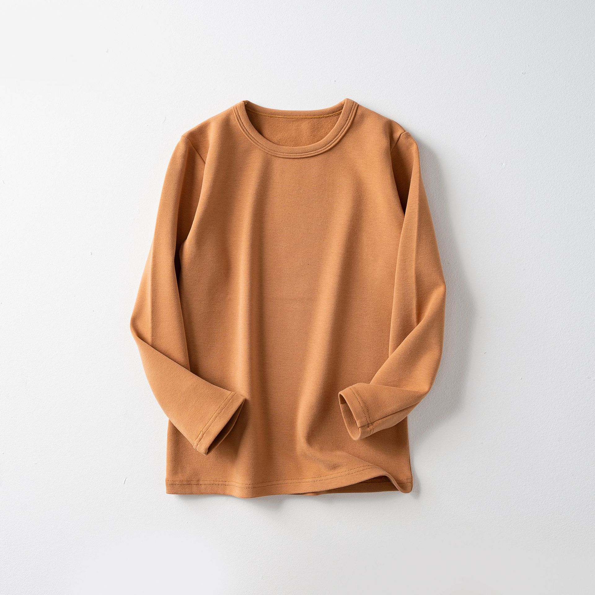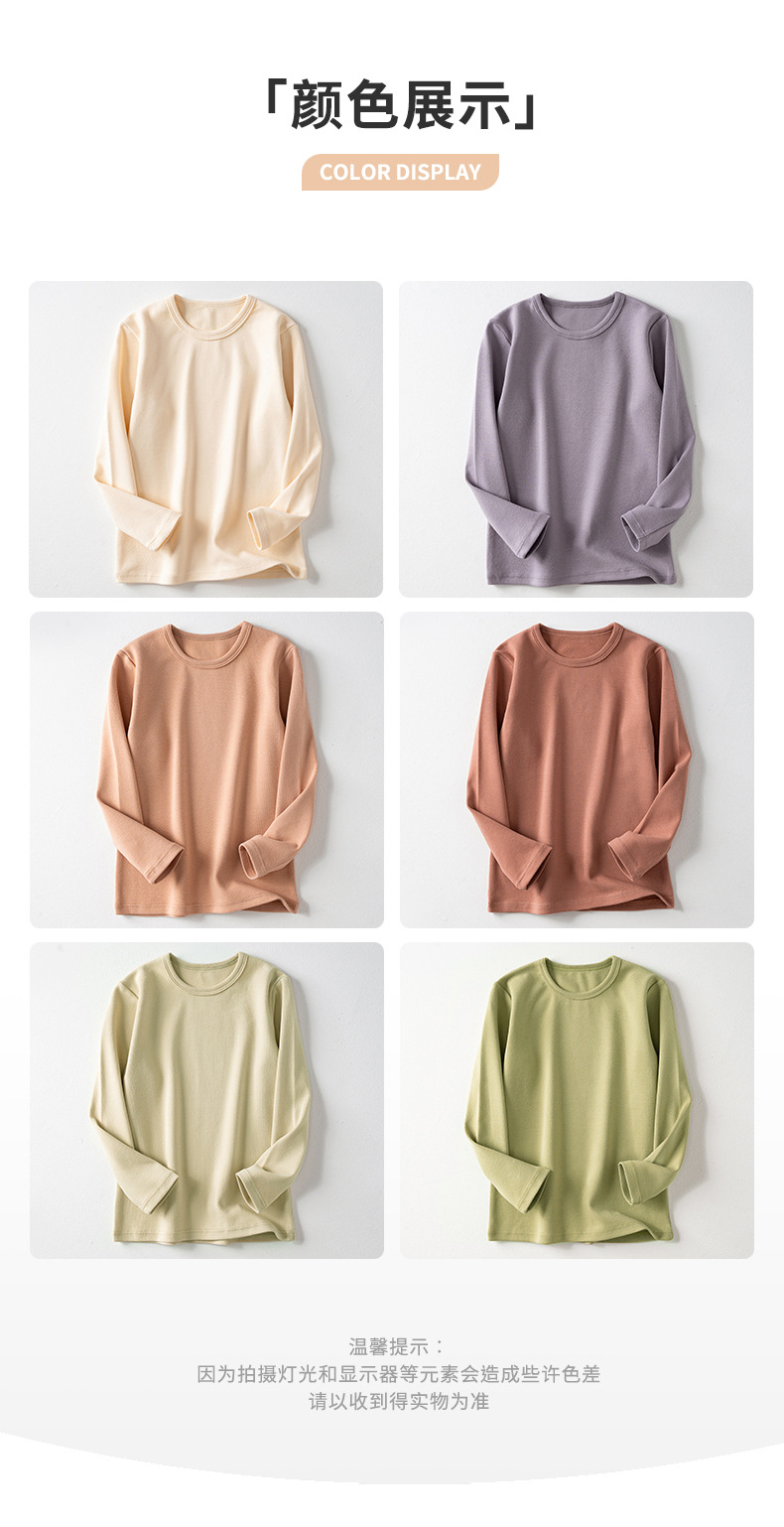 가을과 겨울 아동베이스 셔츠 두꺼운 따뜻한 샌딩 가을 옷 한국 단색 라운드 넥 여아 남성용 아기 긴 소매 탑