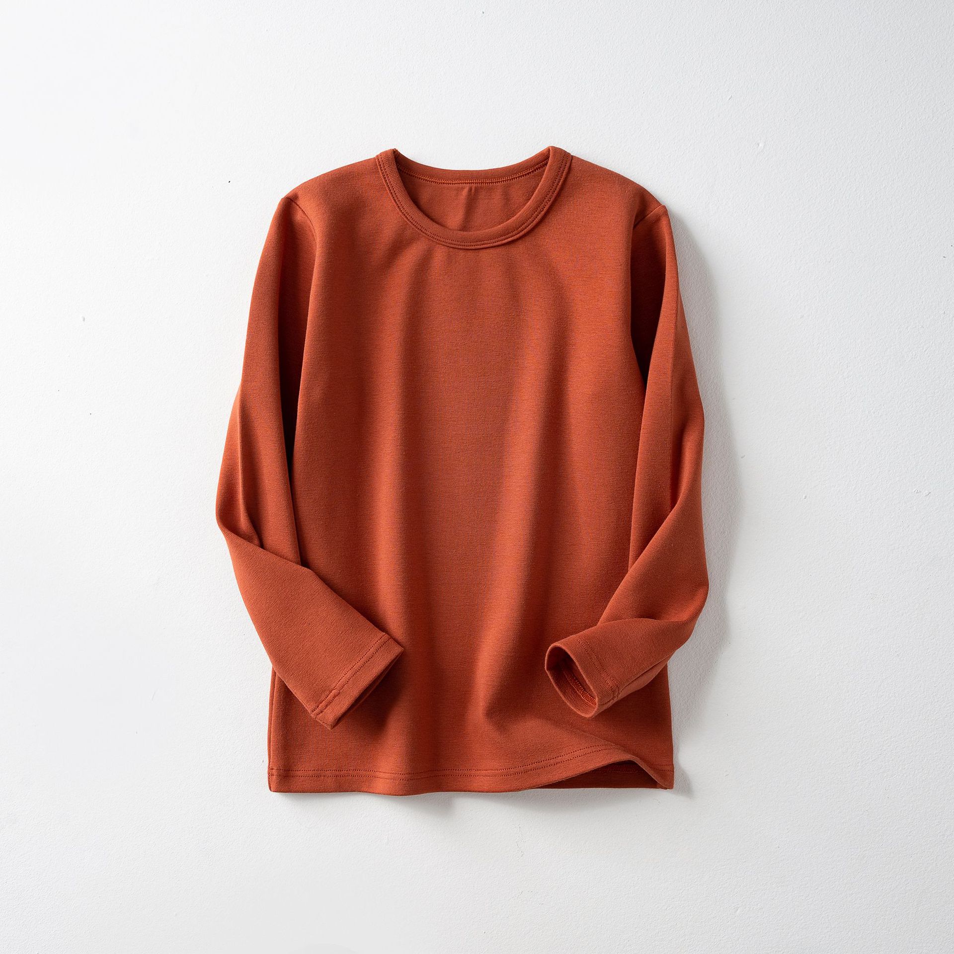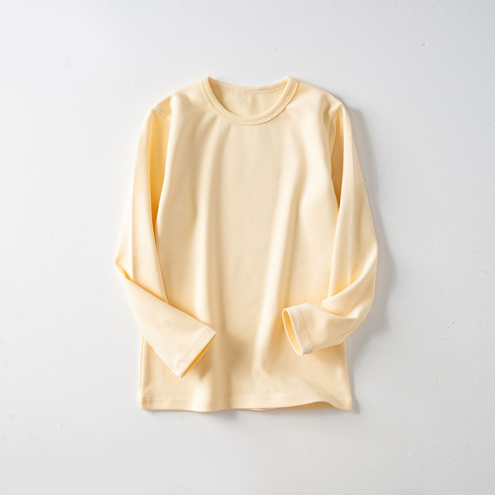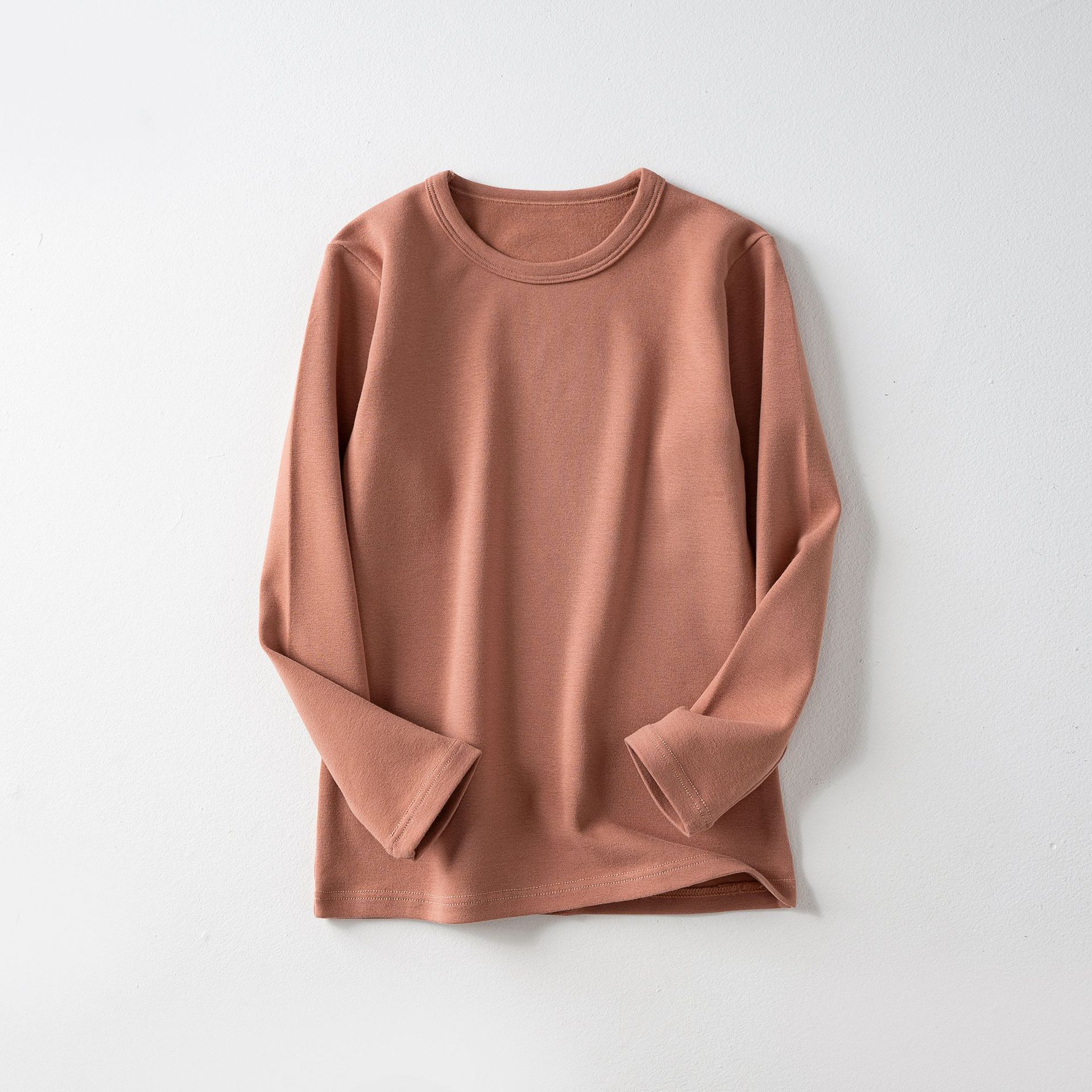가을과 겨울 아동베이스 셔츠 두꺼운 따뜻한 샌딩 가을 옷 한국 단색 라운드 넥 여아 남성용 아기 긴 소매 탑