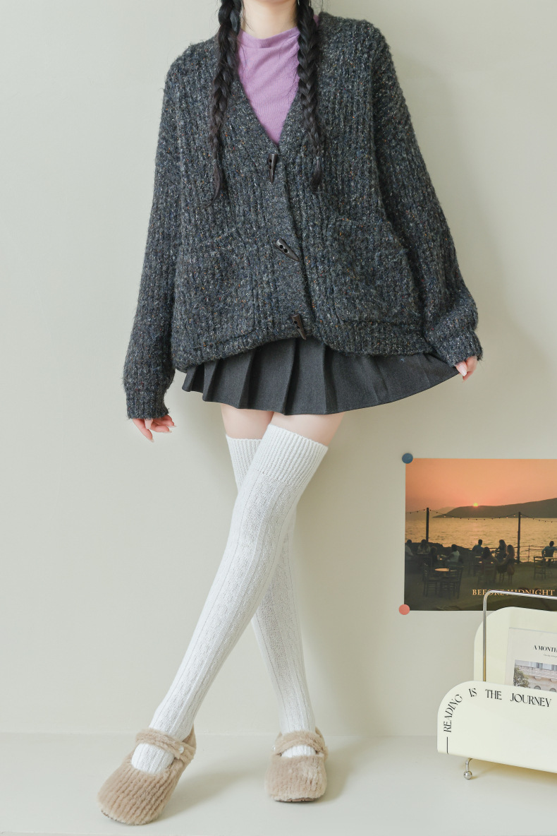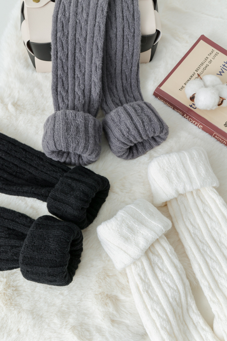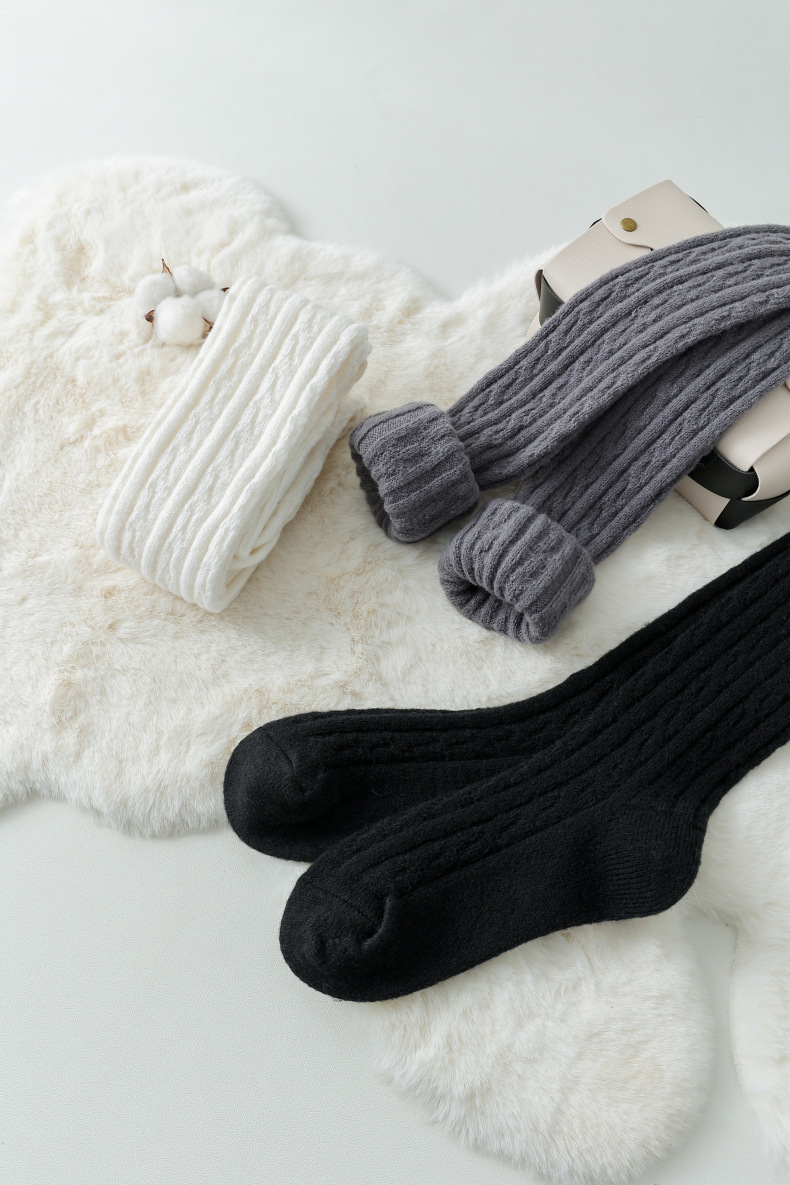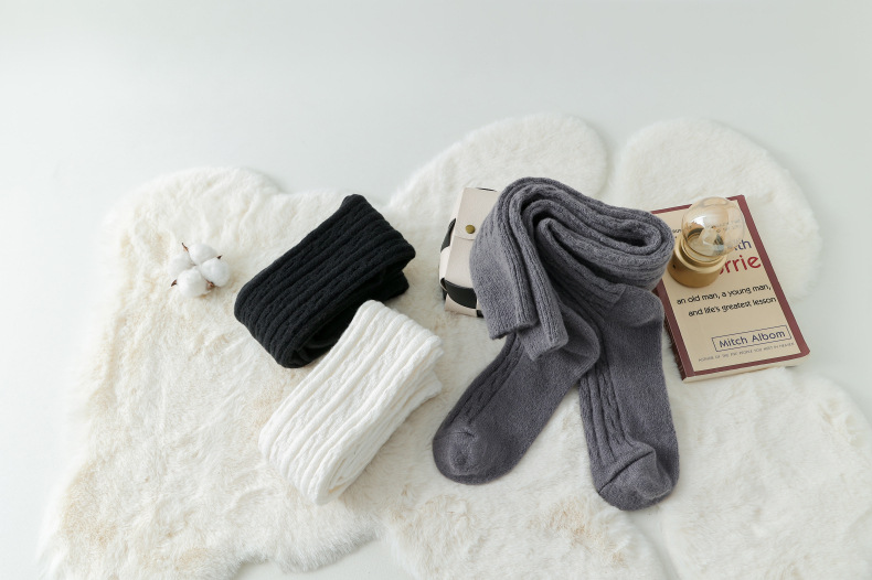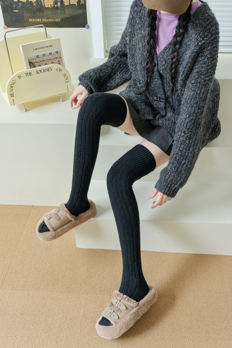 가을과 겨울 두꺼운 허벅지 양말 무릎 위에 면 양말 스타킹 여자의 일본 단색 학술 스타일 높은 스타킹 JK 양말
