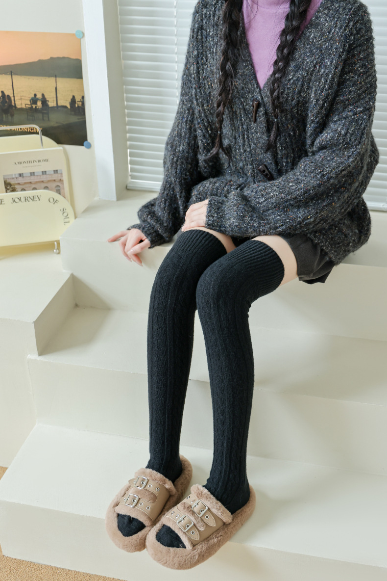 가을과 겨울 두꺼운 허벅지 양말 무릎 위에 면 양말 스타킹 여자의 일본 단색 학술 스타일 높은 스타킹 JK 양말스토어 가기