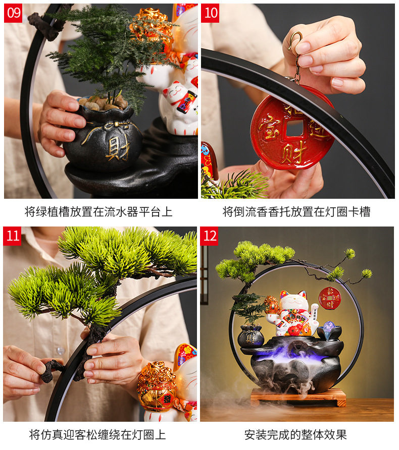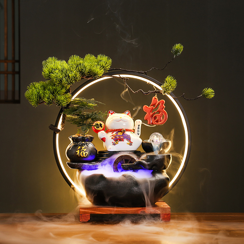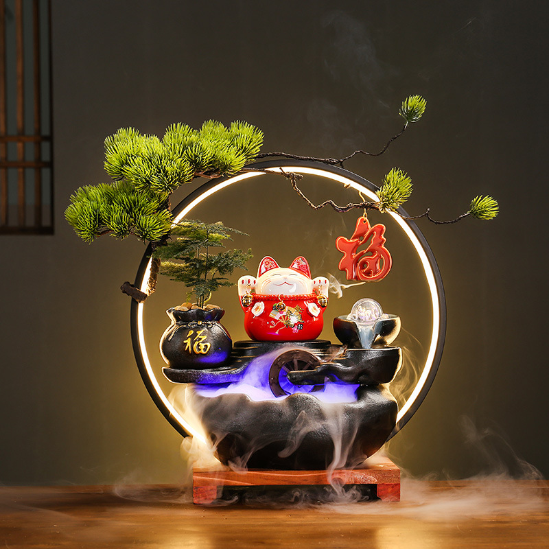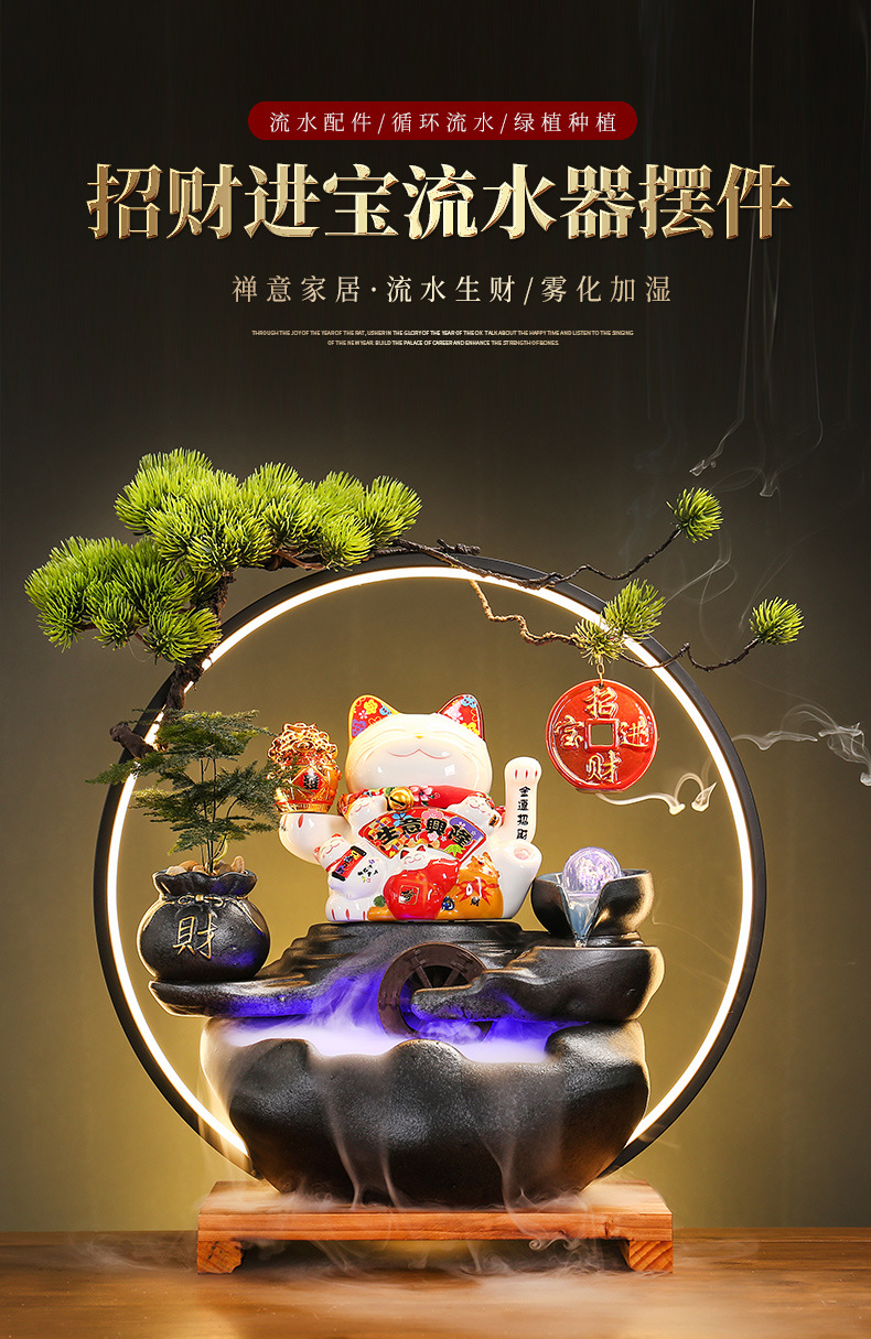 개업 선물 홈 유수 장식품 행운의 고양이 개업 선물 집들이 작은 어항 베란다 TV 캐비닛 장식스토어 가기