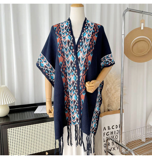 에스닉 스타일 숄 케이프 여성의 윈난 리장 여행 사진 니트 따뜻한 술 스카프 케이프