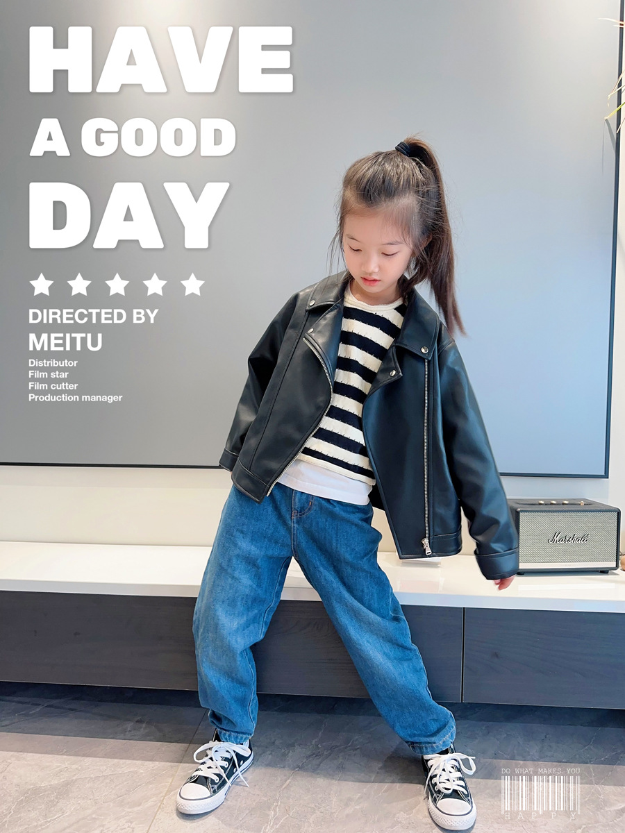 25 새로운 아동 의류 소년 가죽 자켓 잘 생긴 한국 스타일 어린이 오토바이 스타일 가죽 자켓 서양식 소녀 자켓 봄, 가을 의류스토어 가기