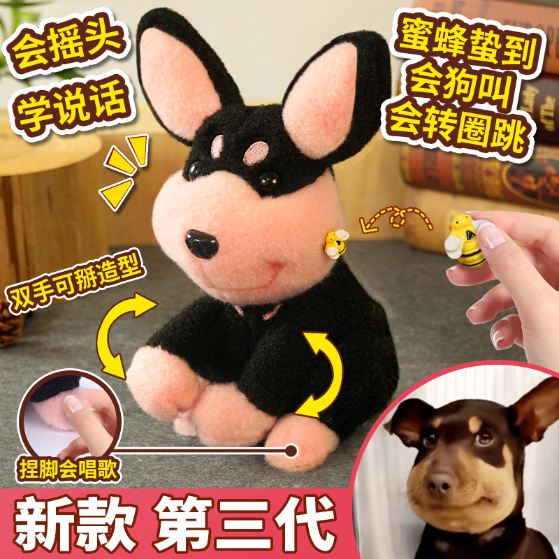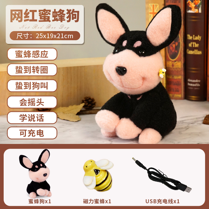 어린이 인터넷 유명인 전기 꿀벌 개는 말하고 노래하는 법을 배우고 회전하는 봉제 장난감 인형 소년과 소녀를 부를 수 있습니다스토어 가기