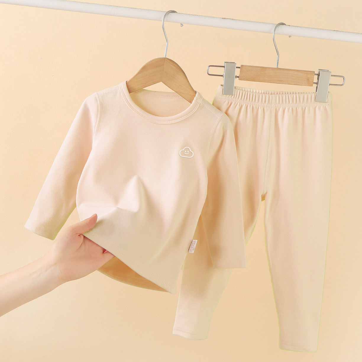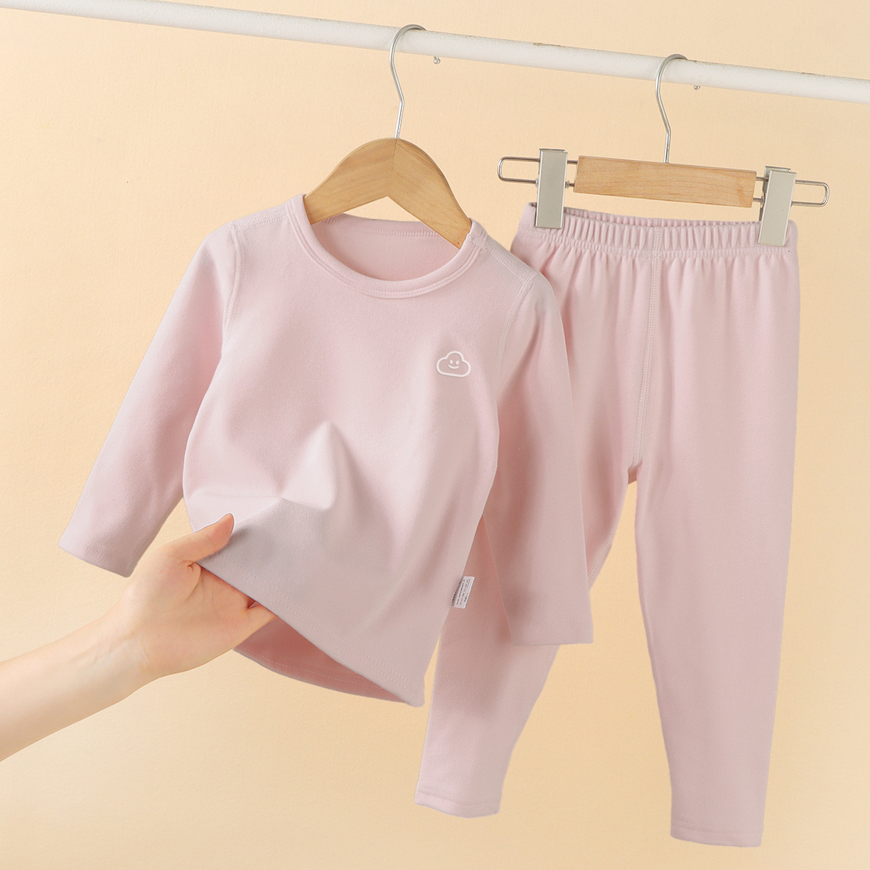 소년과 소녀를위한 어린이 벨벳 열 속옷 세트 중간 및 큰 어린이 아기 잠옷 가을과 겨울 뼈없는 가을 옷과 바지스토어 가기