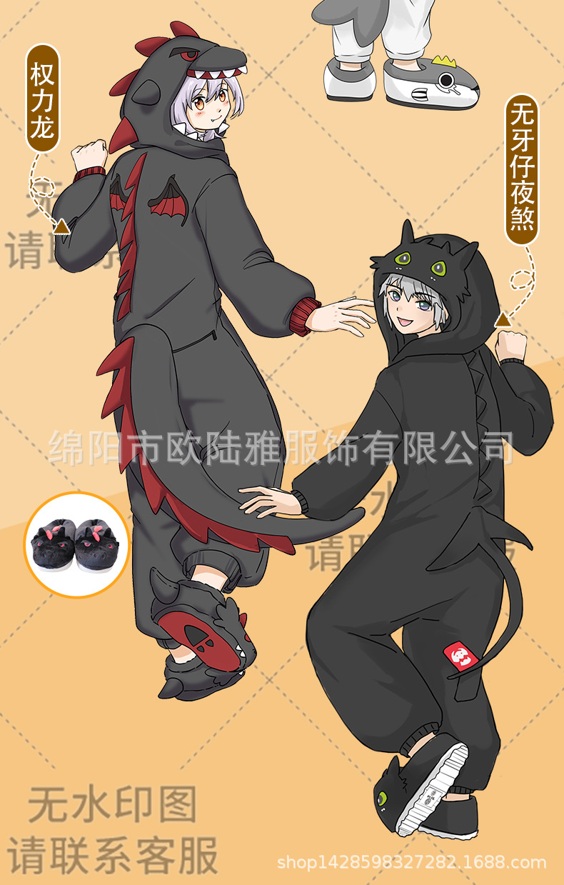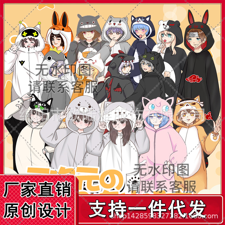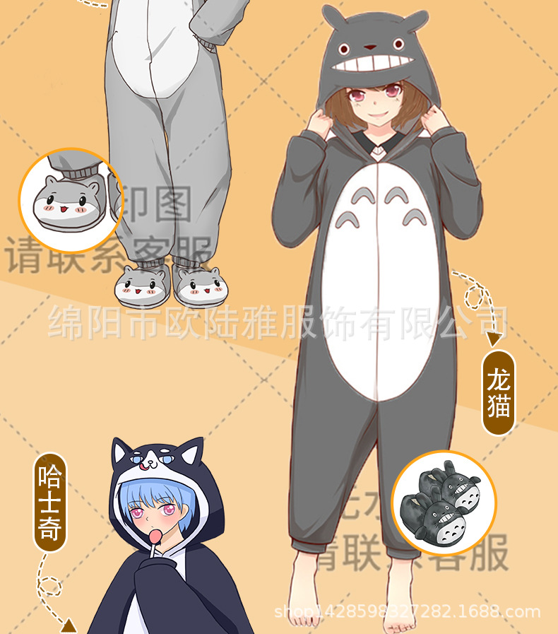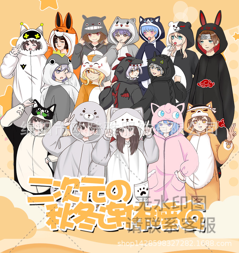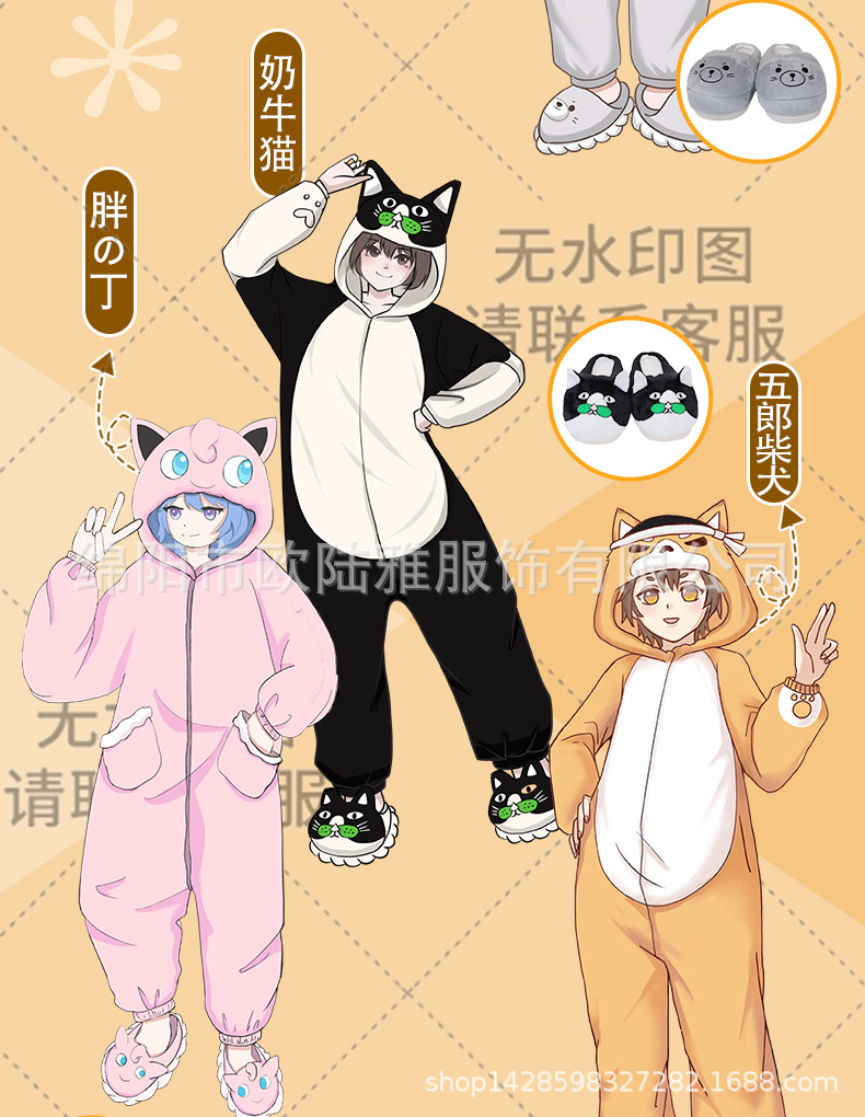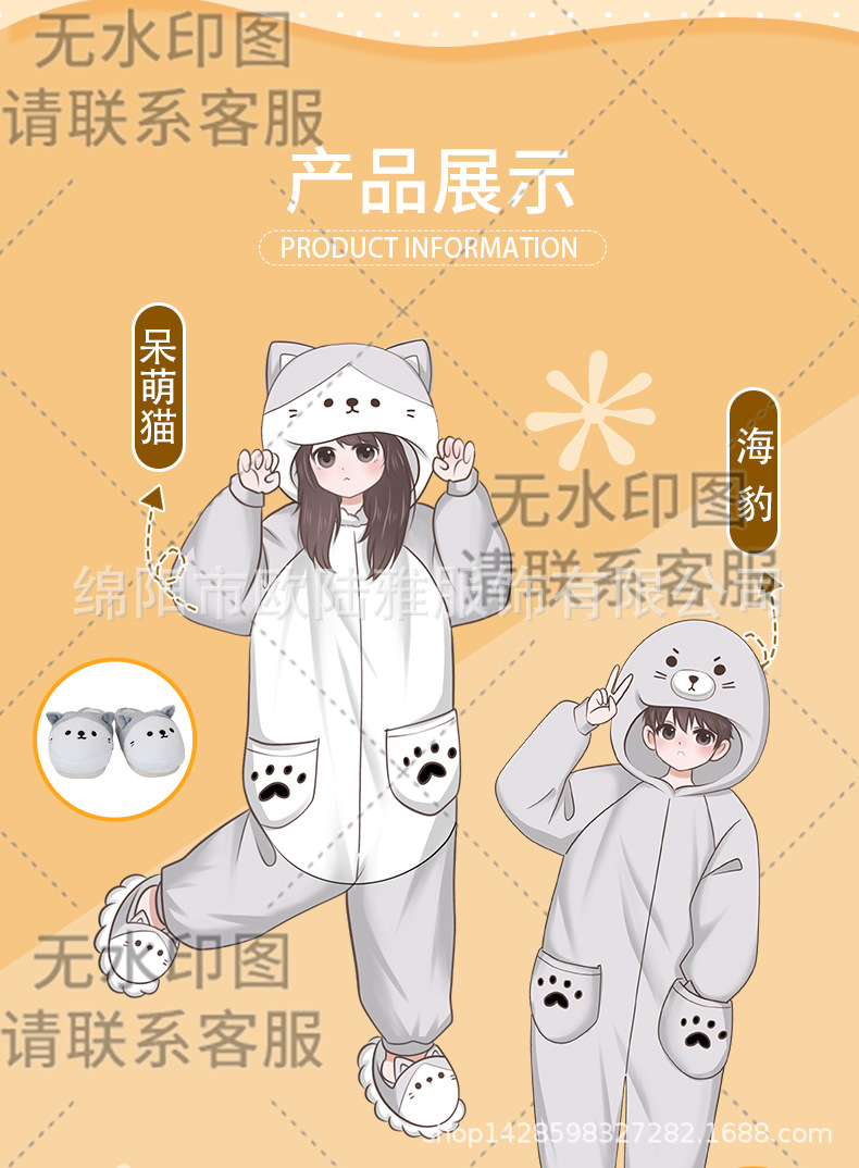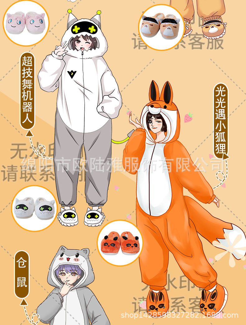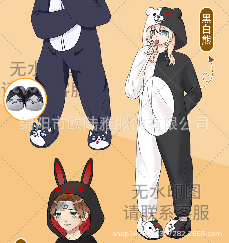박제 된 동물 주위에 자이언트 팬더 확산 만화 원피스 잠옷 남자와 여자의 세트 커플 가을과 겨울 플란넬스토어 가기